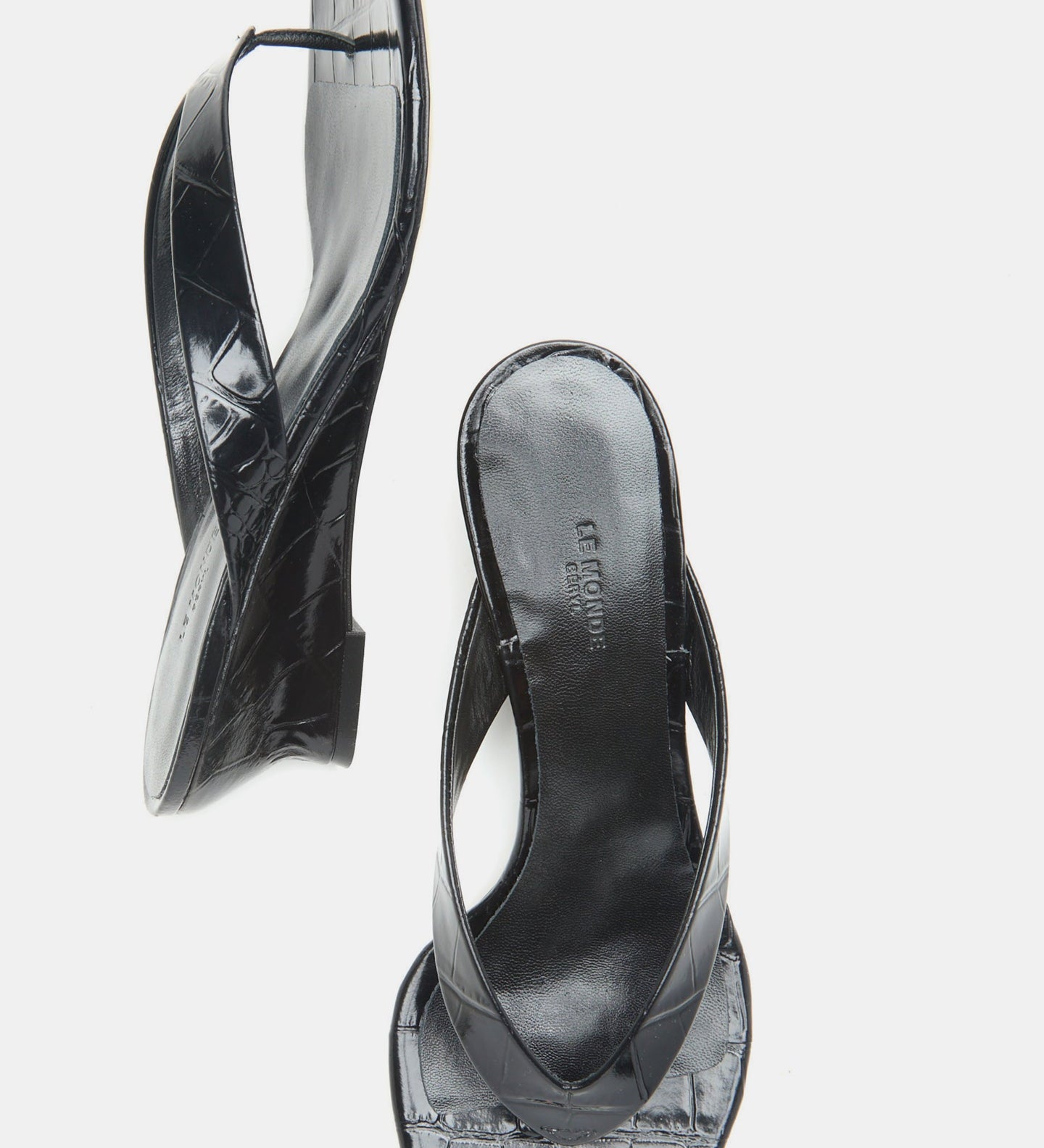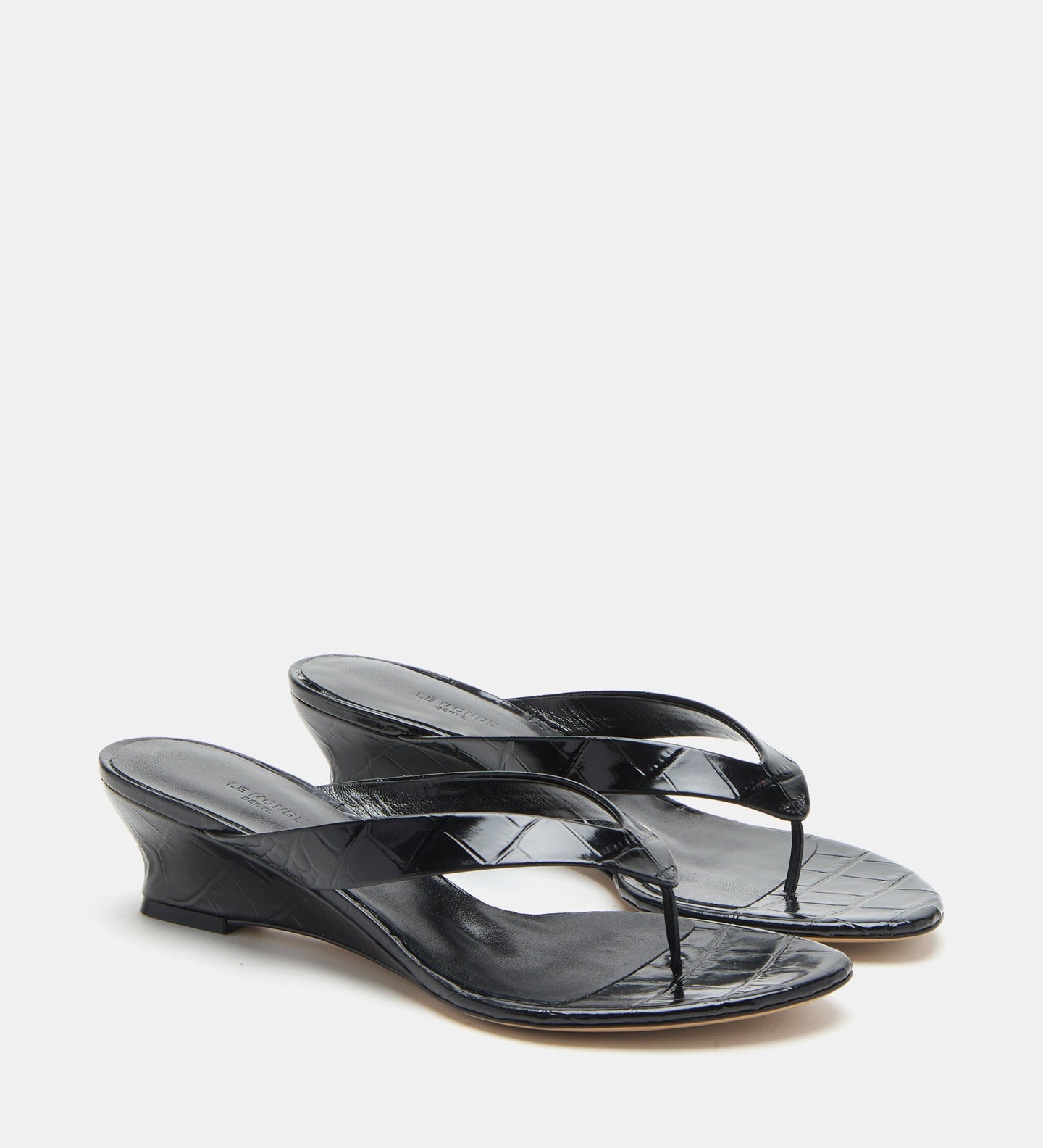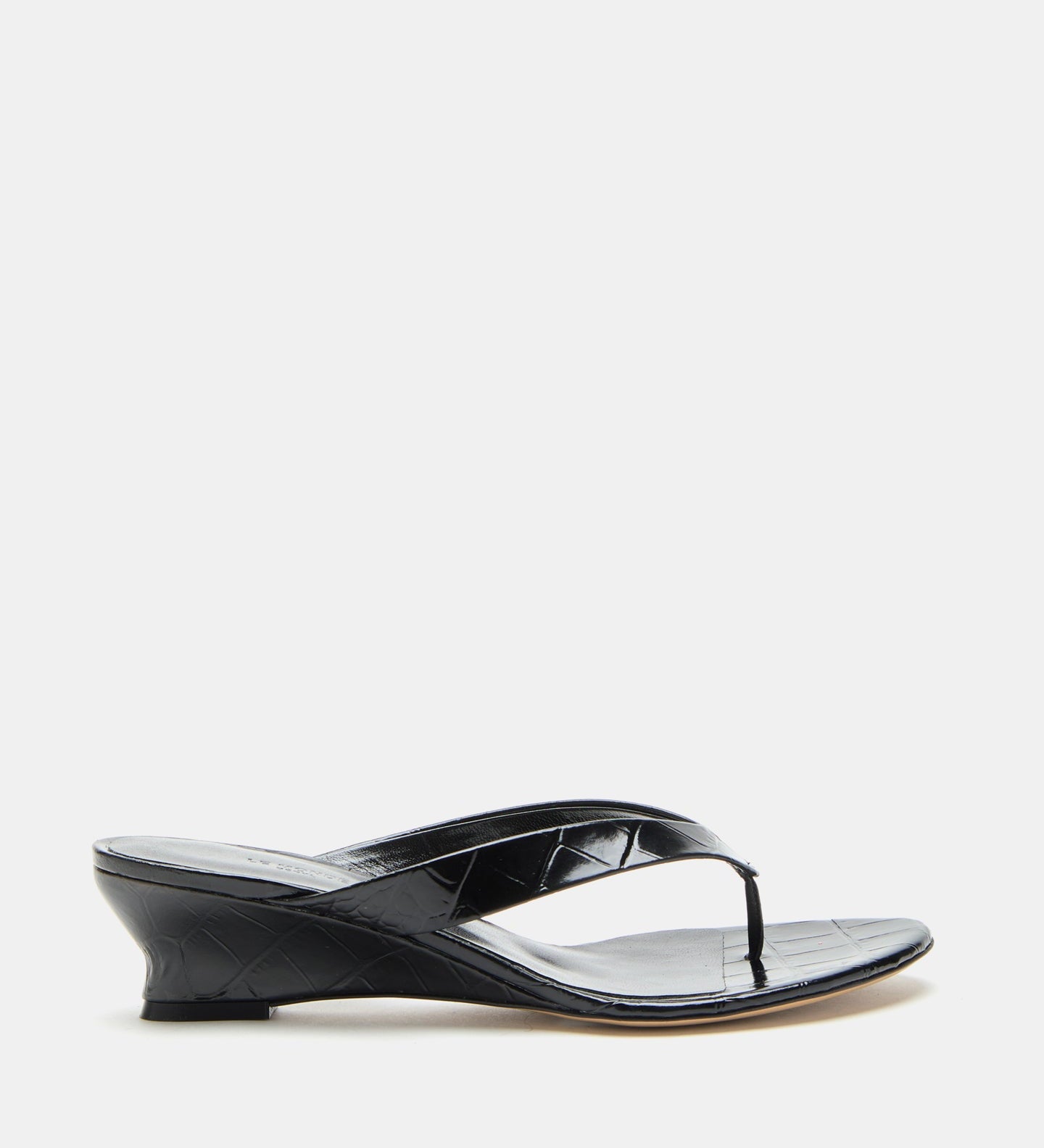 Le Monde Beryl - Micro Wedge Thong / Coco Black Leather Croc Effect