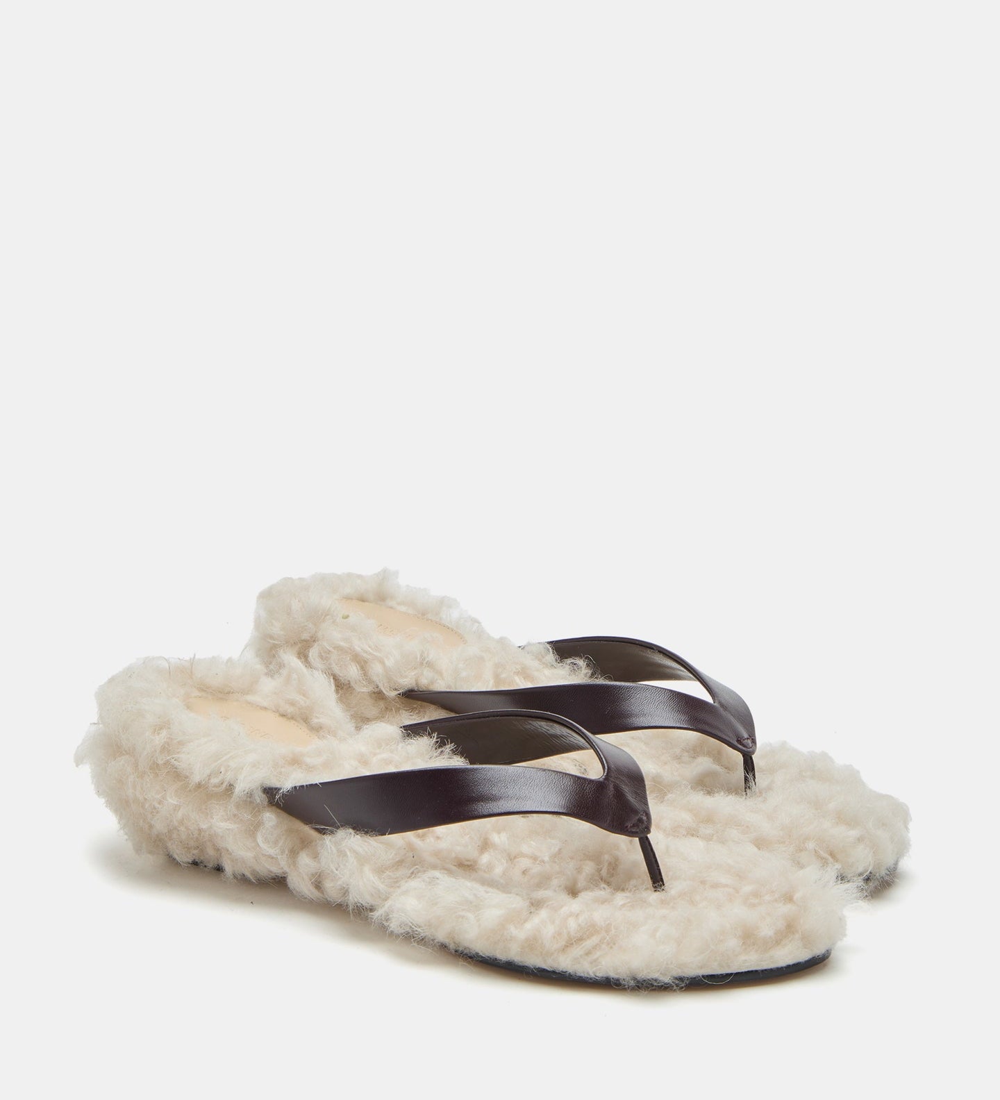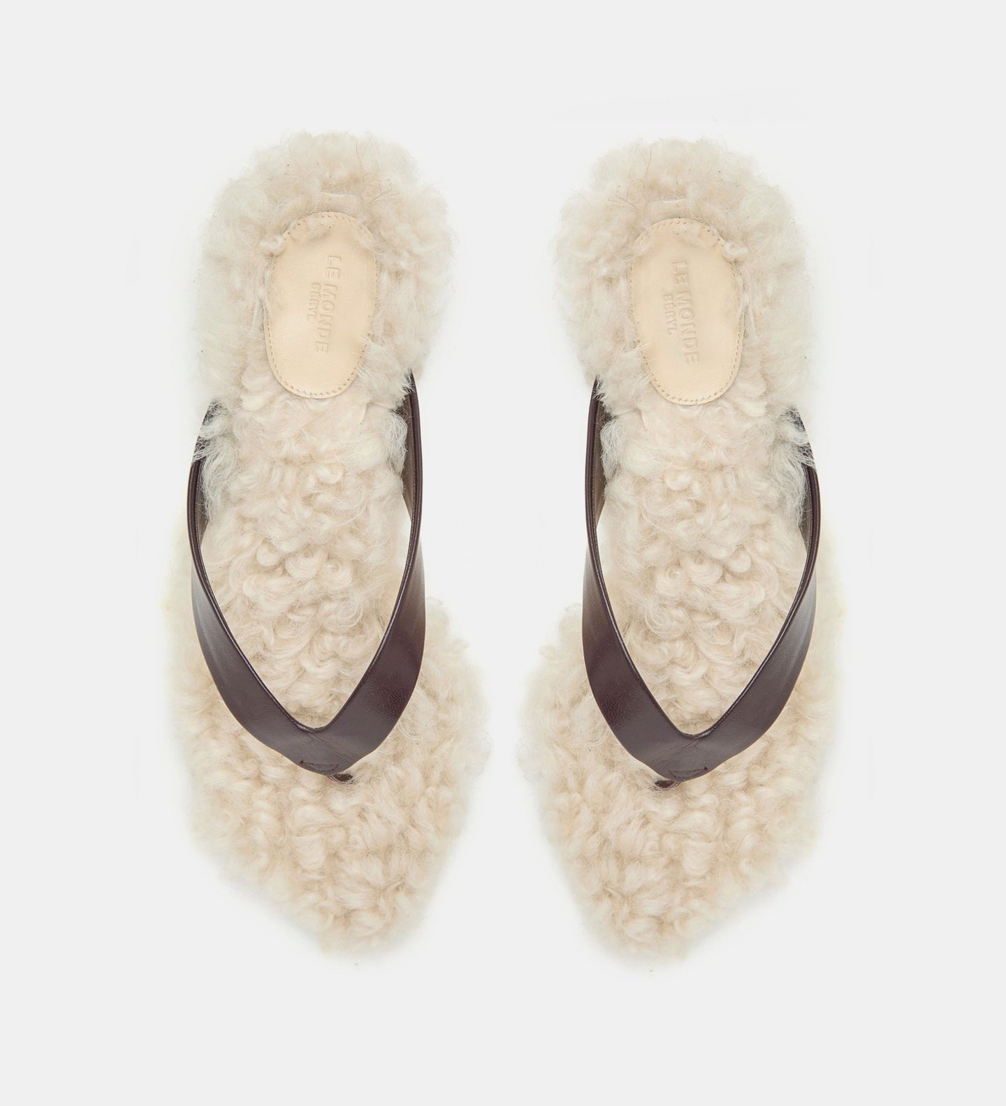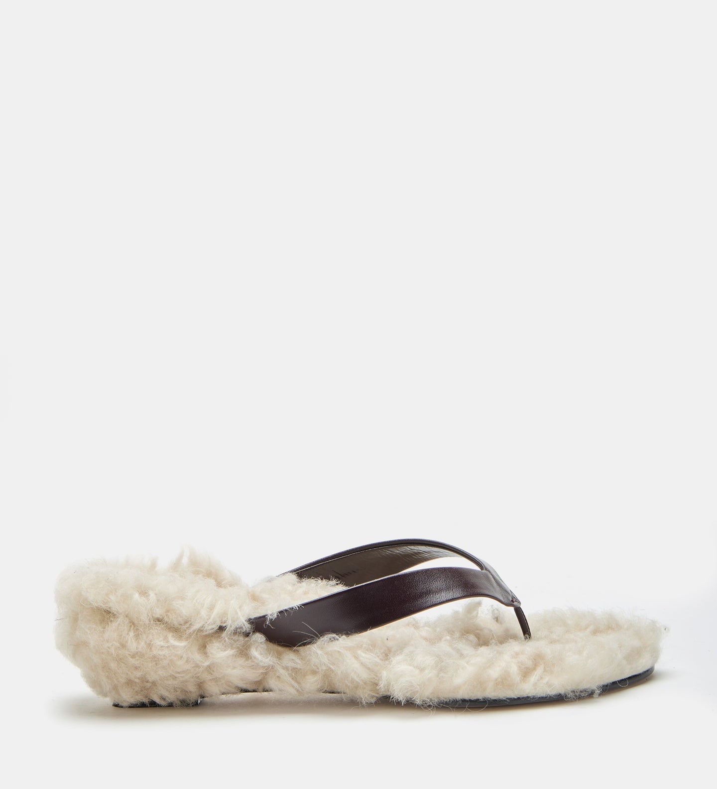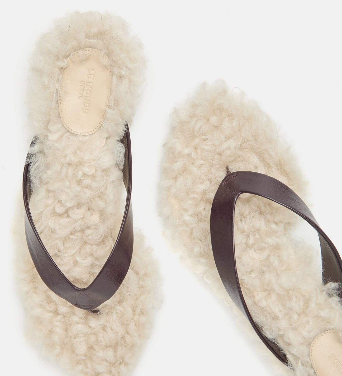 Le Monde Beryl - Micro Wedge Thong / Plum Leather with Latte Shearling
