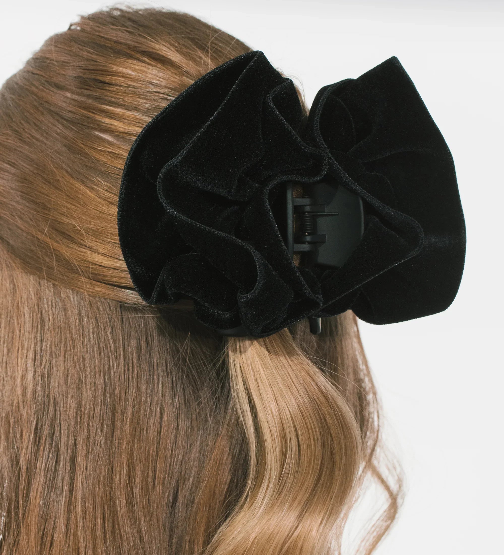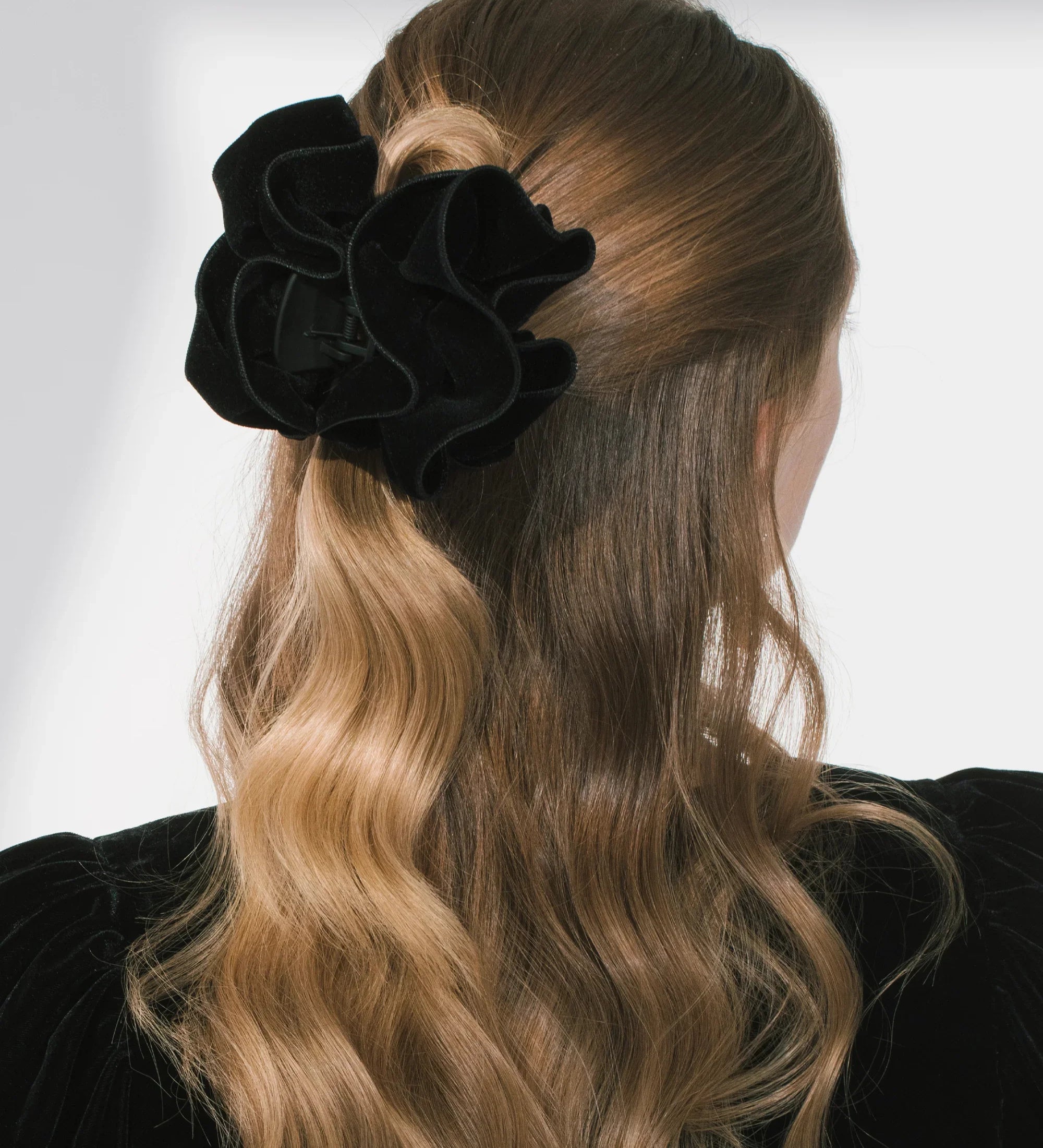 Jennifer Behr - Velvet Ruffle Jaw Clip -- Black