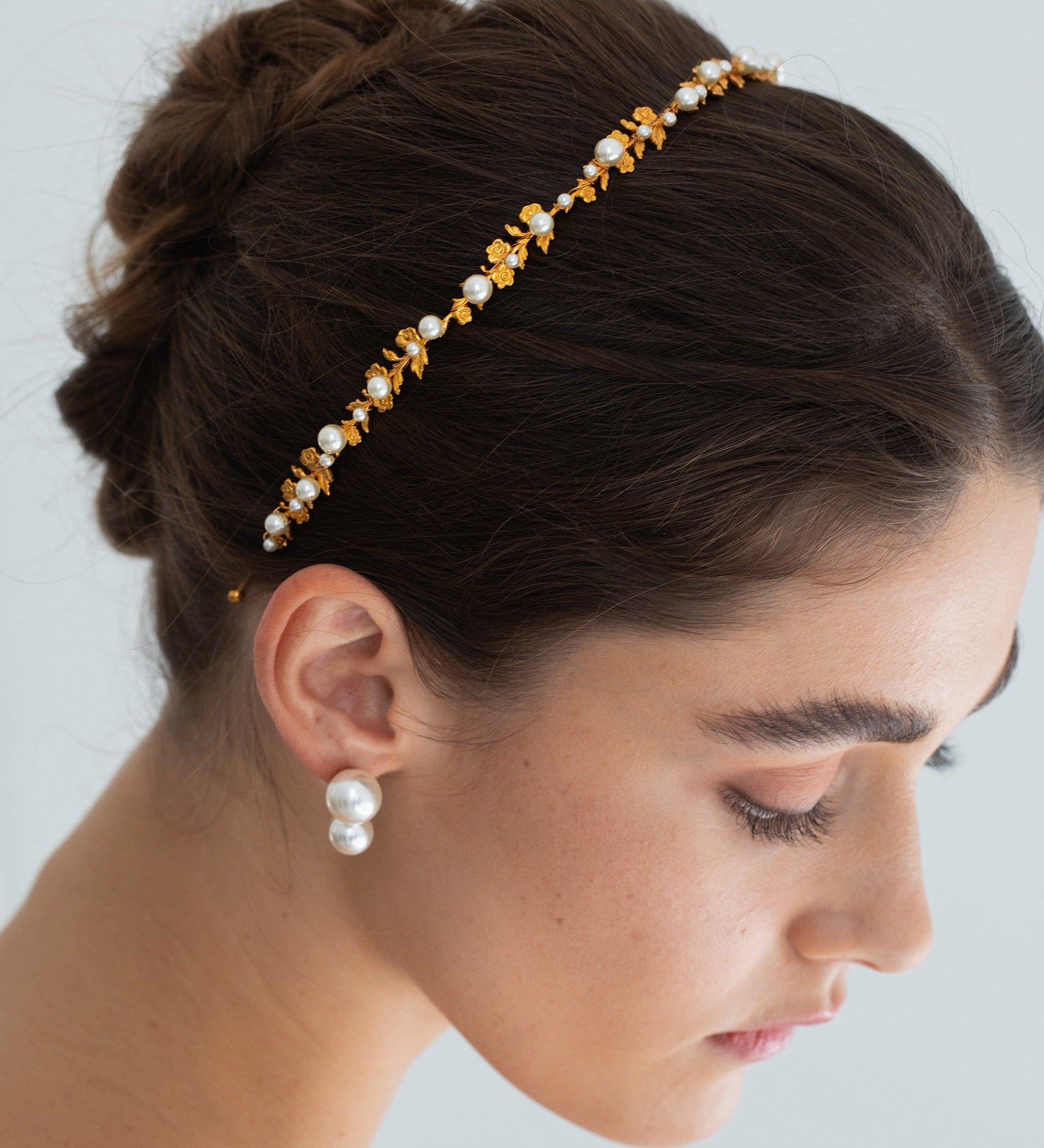 Jennifer Behr - Mae Headband -- Gold Pearl