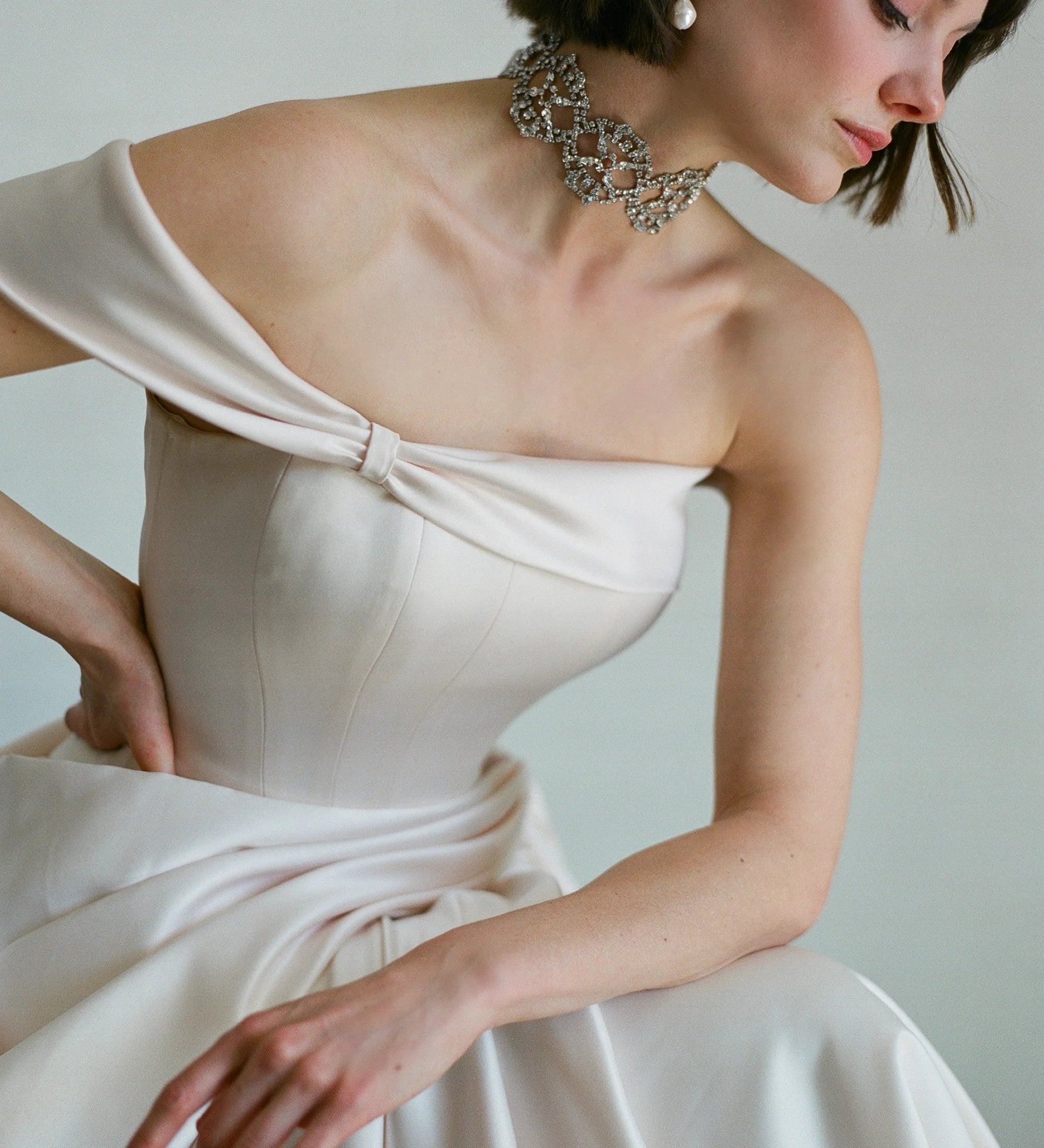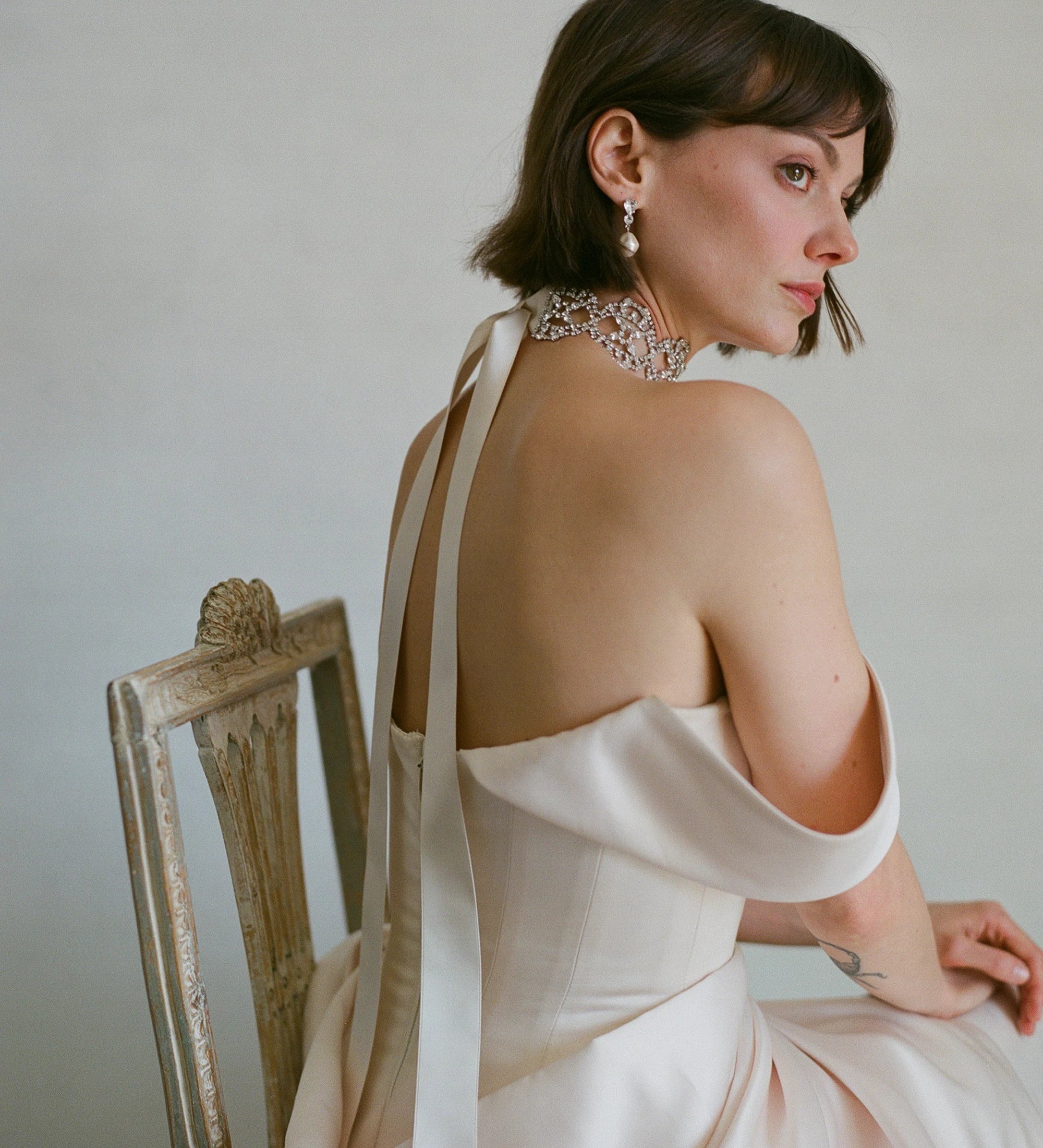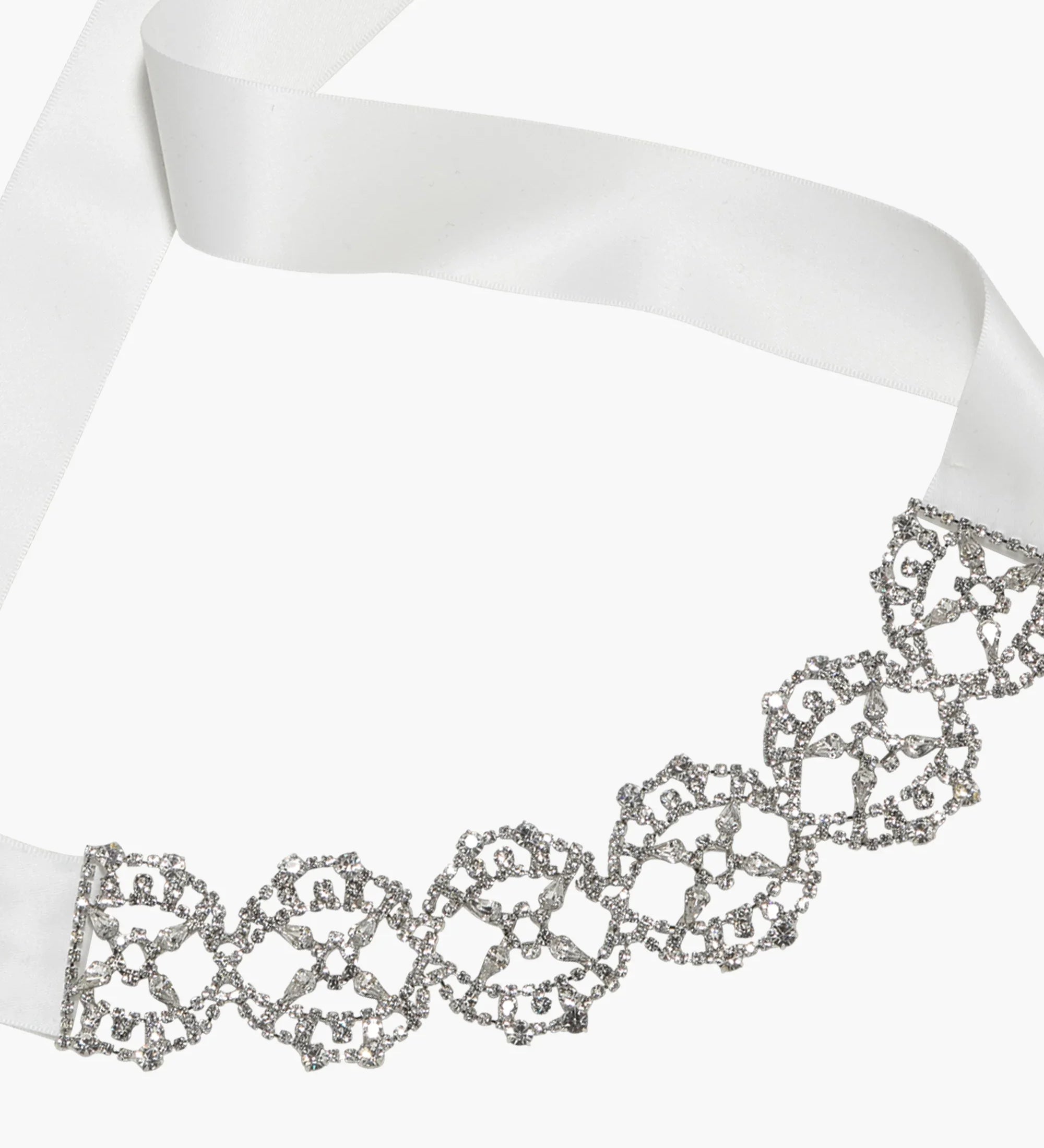 Jennifer Behr - Lavinia Ribbon Tie -- Crystal Cream