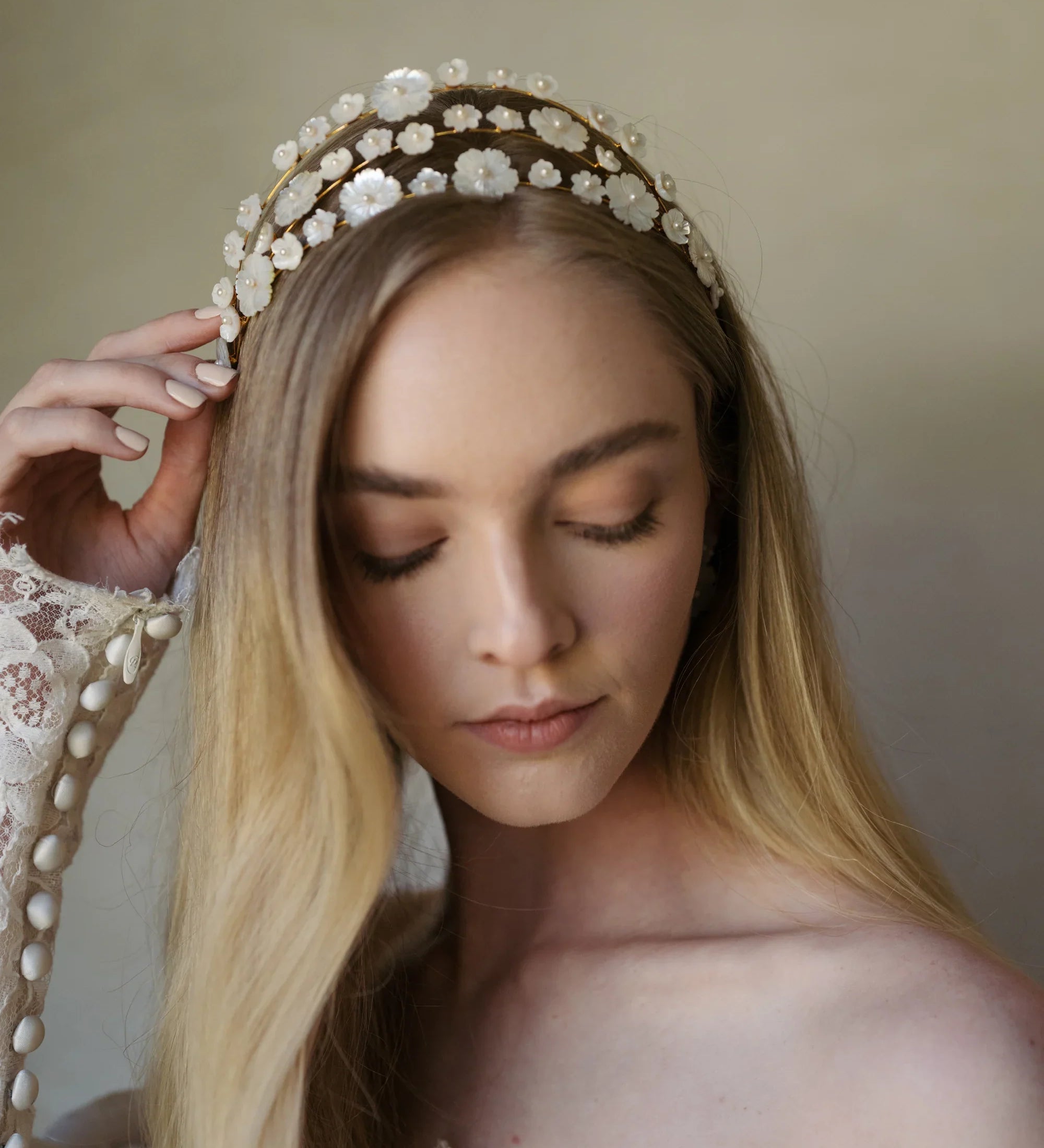 Jennifer Behr - Jenna Headband -- Mother of Pearl