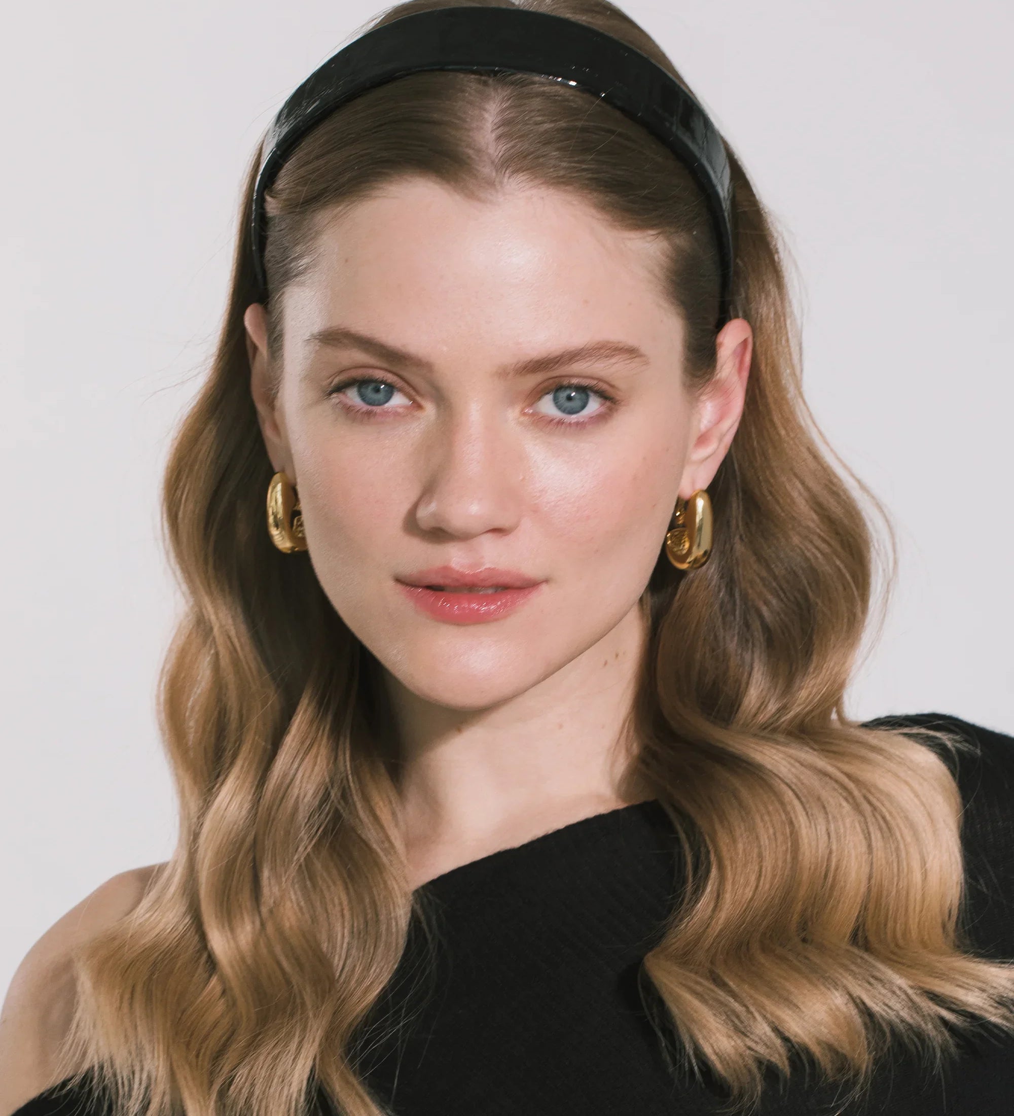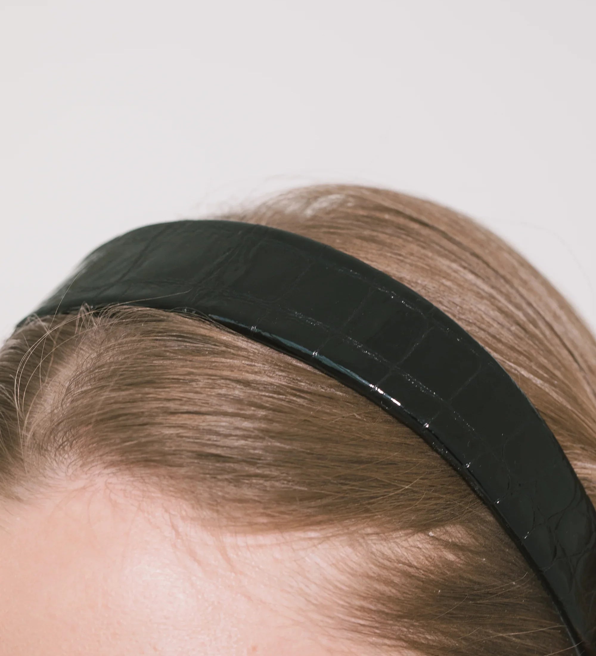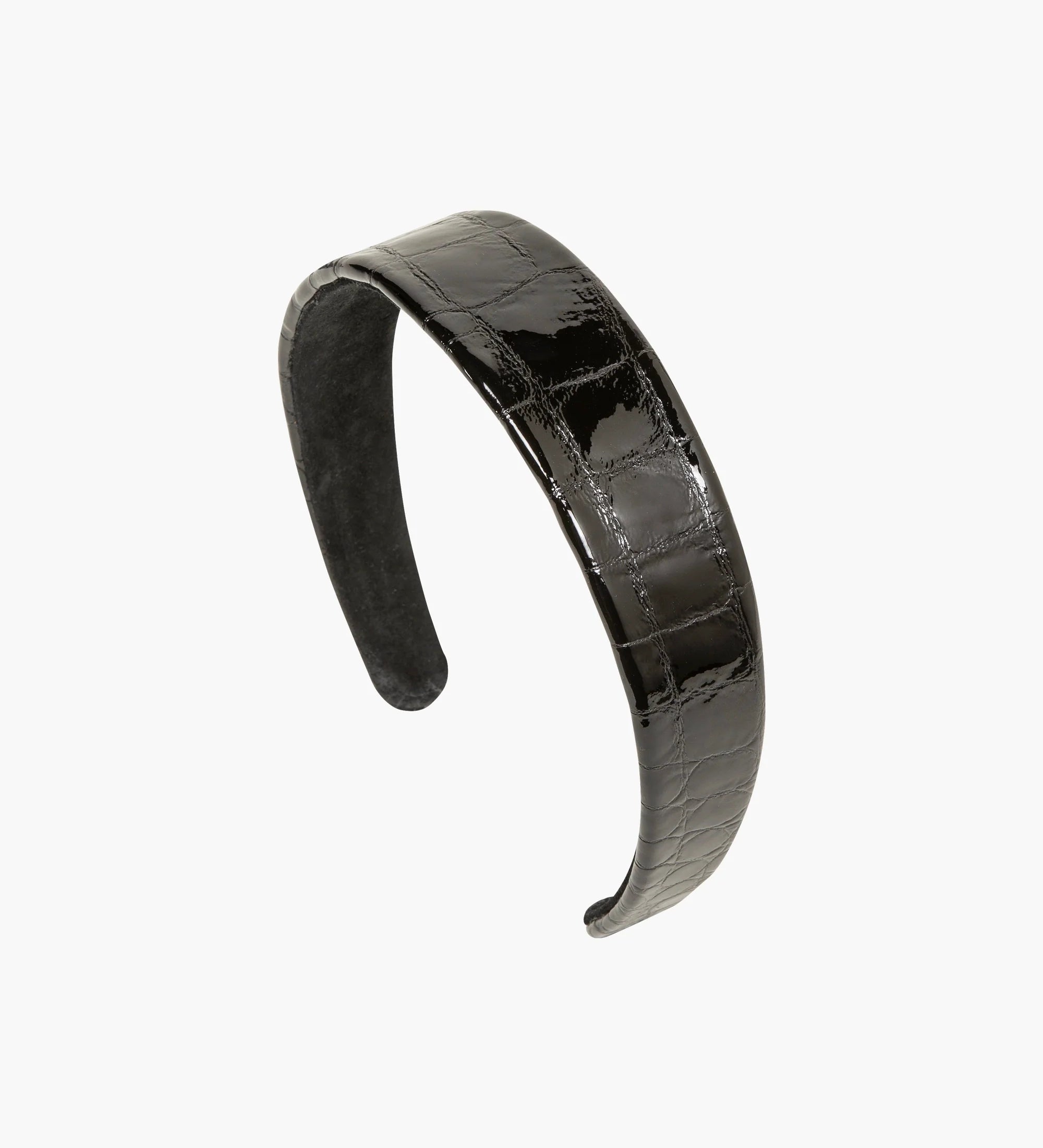 Jennifer Behr - Embossed Leather Cruz Headband -- Black Croc