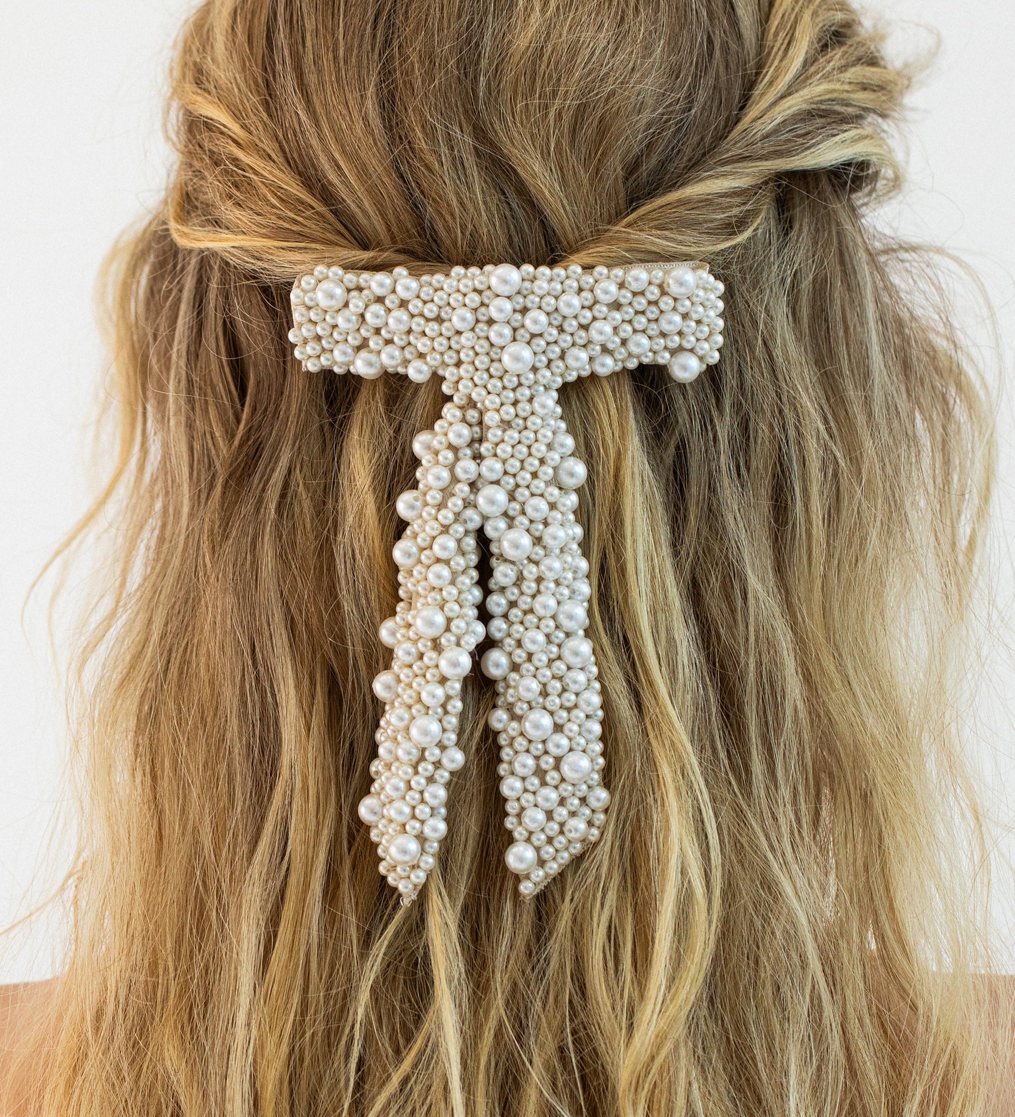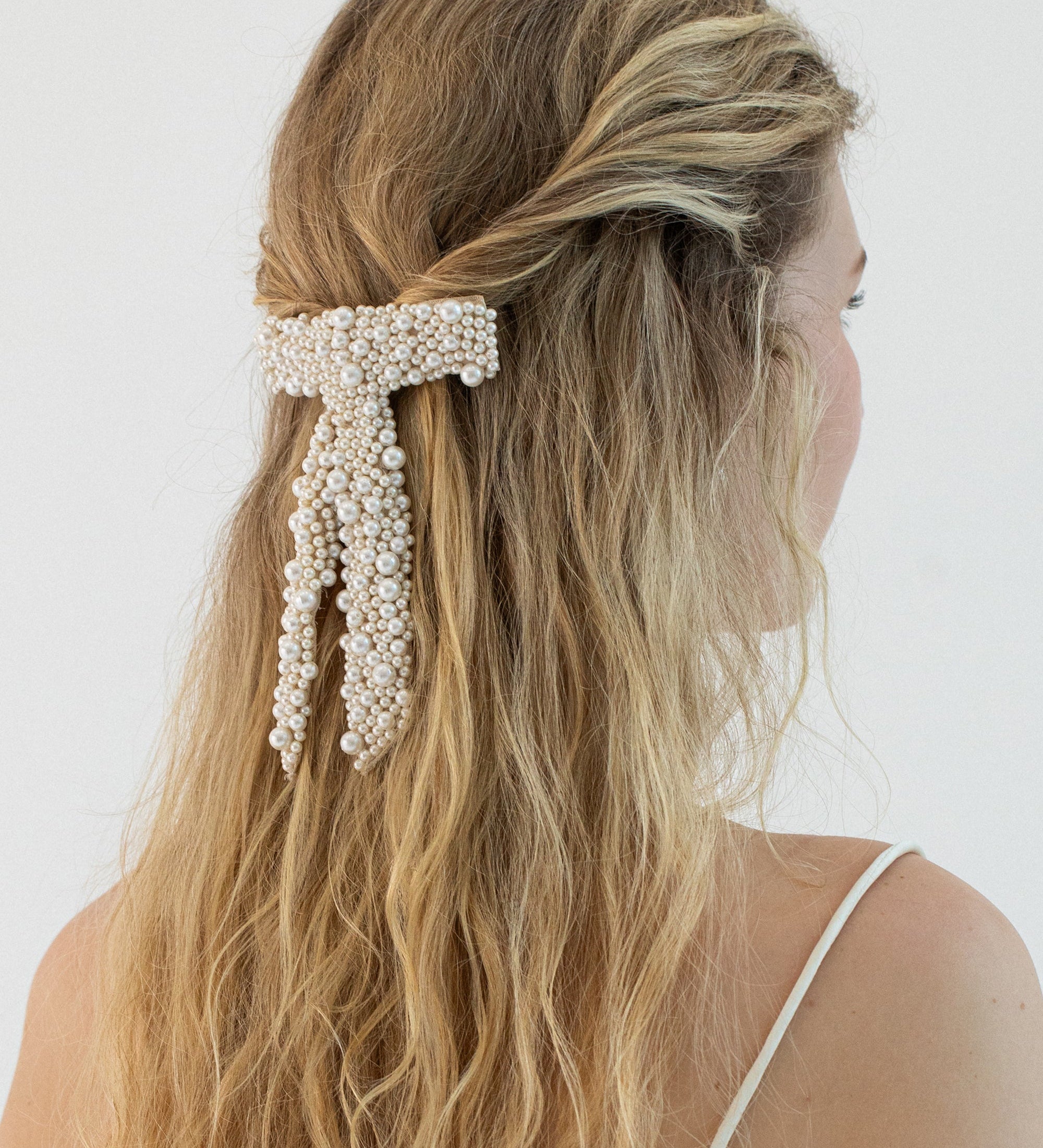 Jennifer Behr - Donna Pearl Bow Barrette -- Pearl