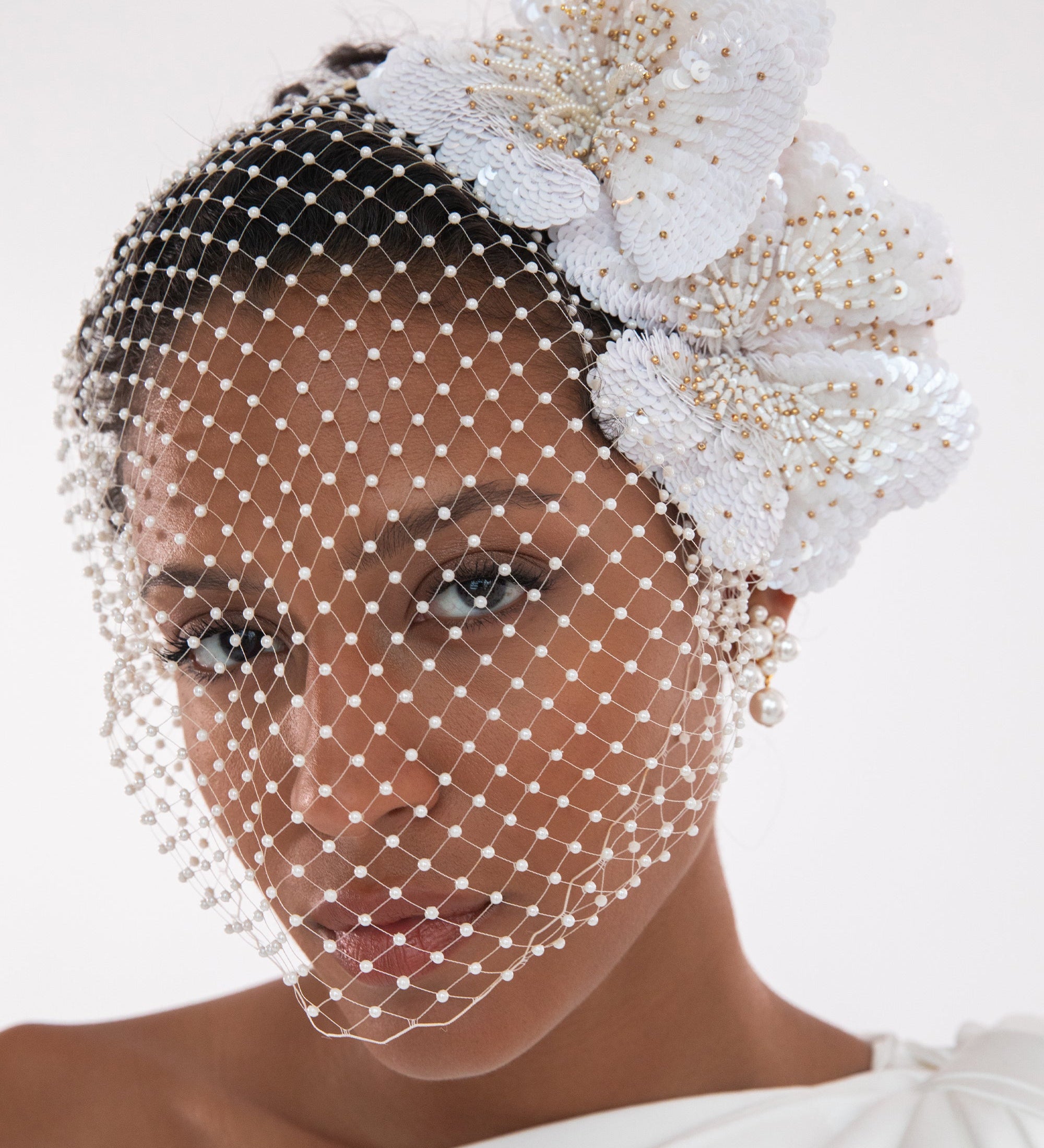Jennifer Behr - Crystal Beehive Voilette -- Cream