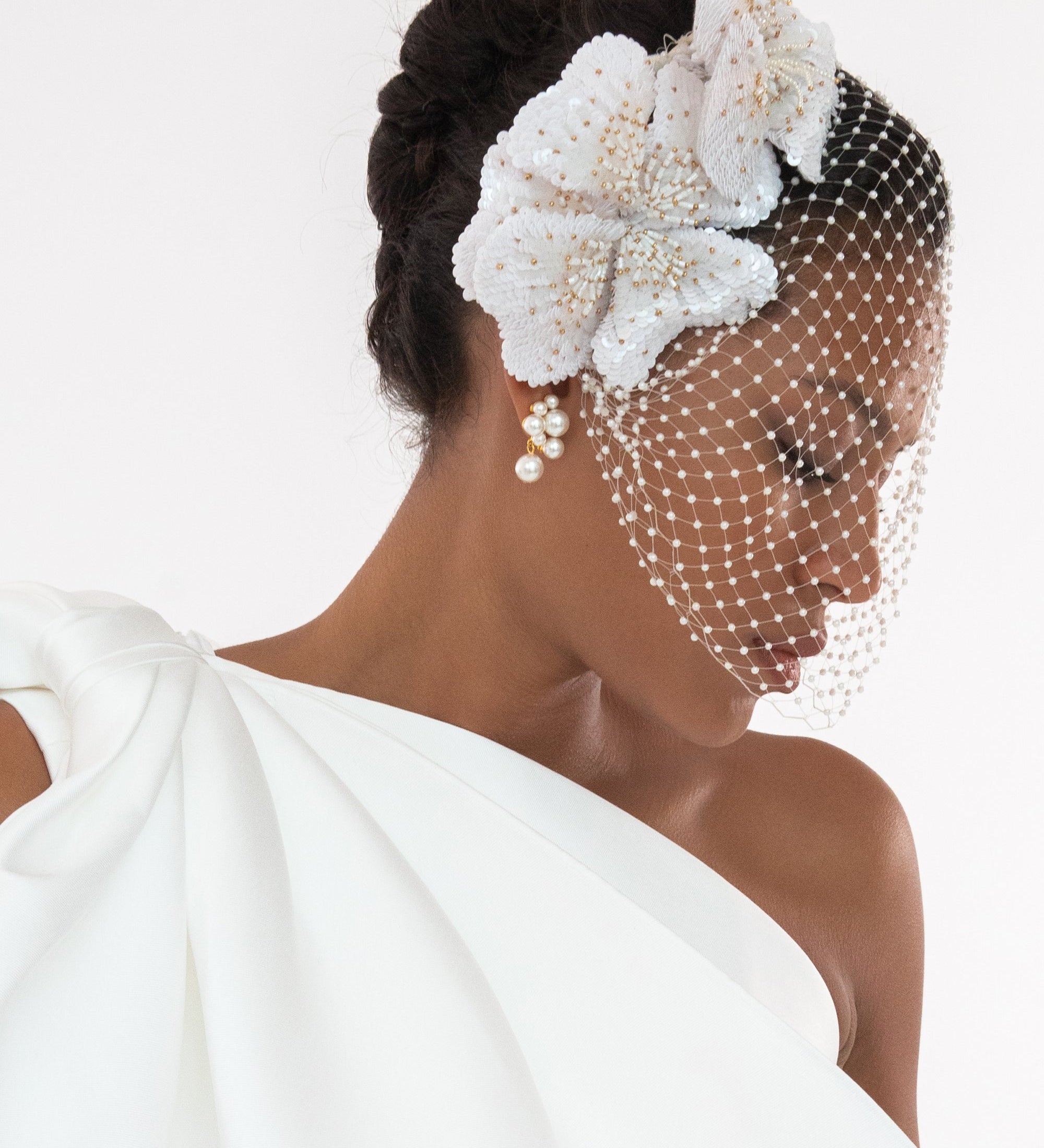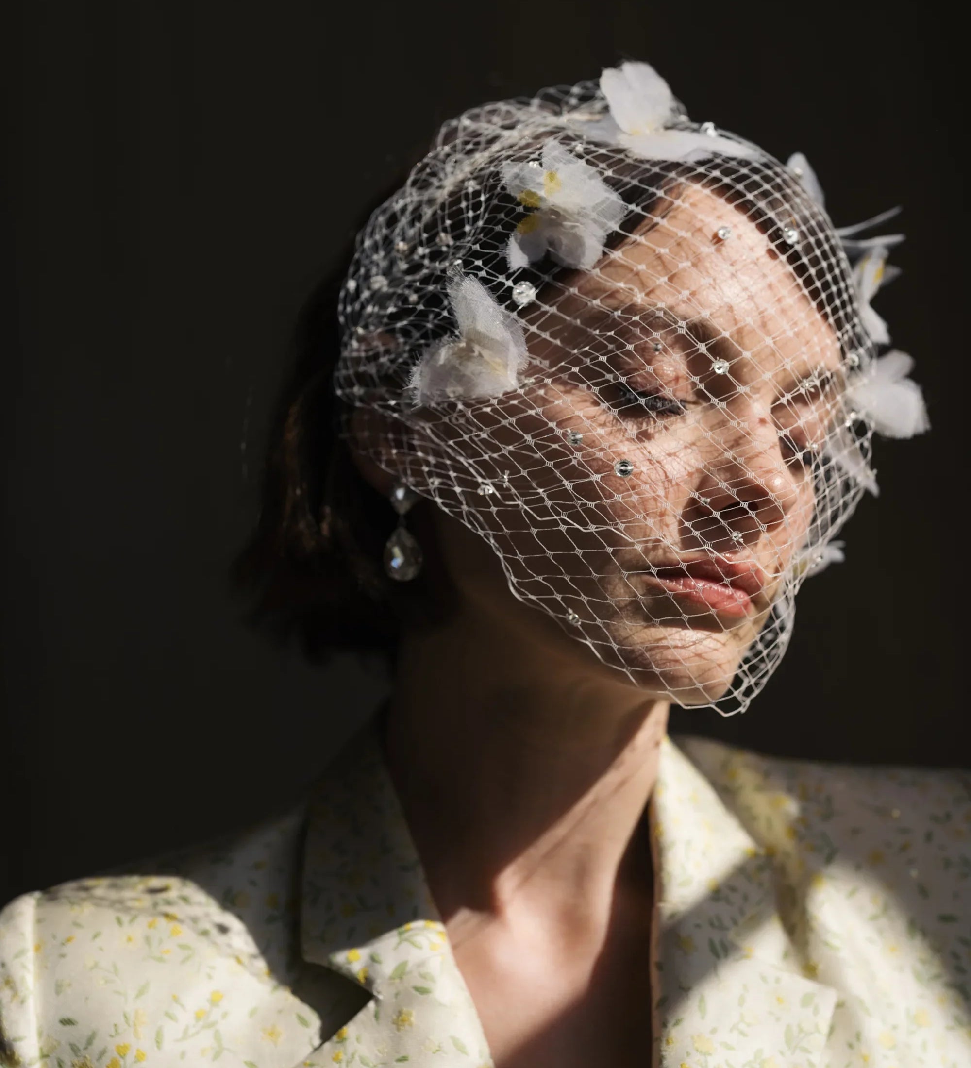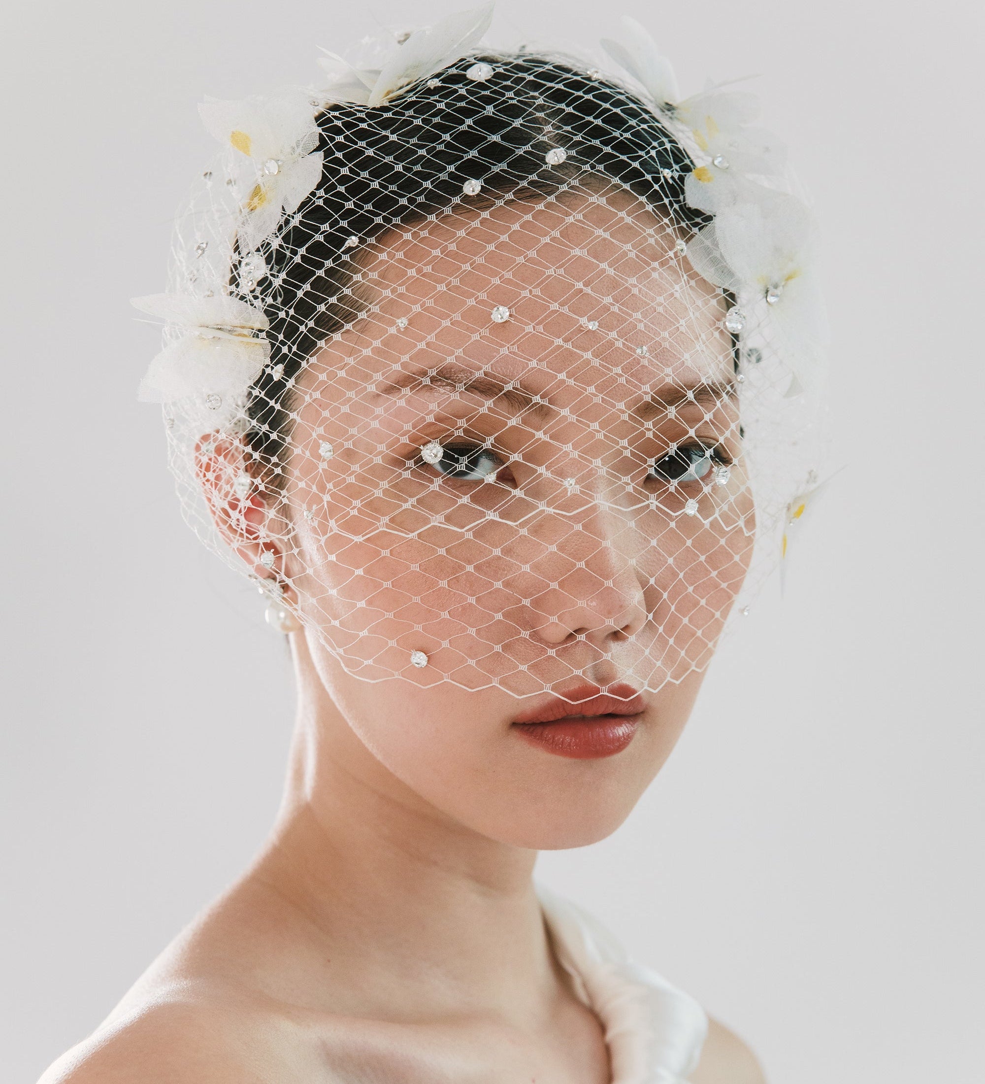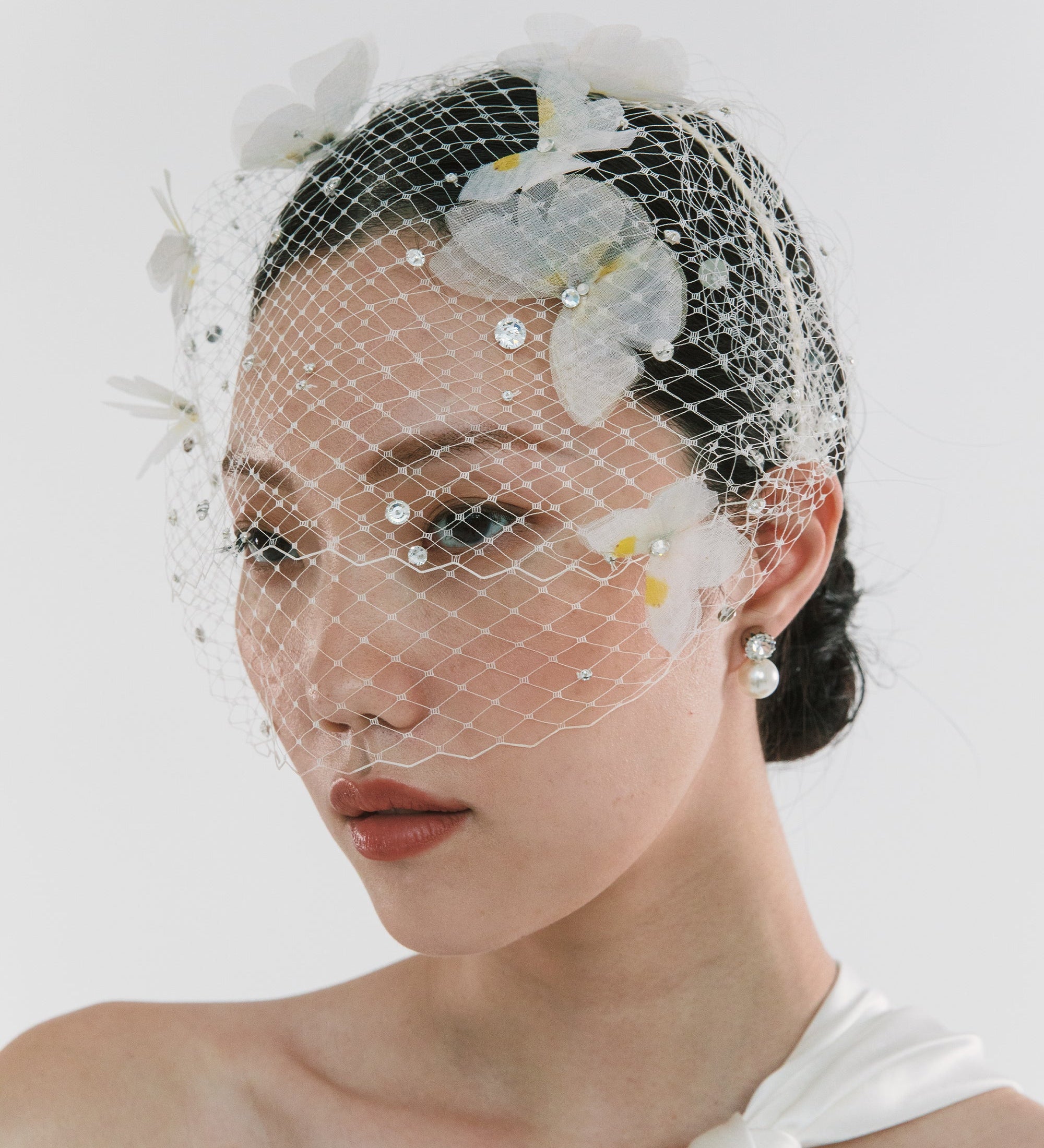 Jennifer Behr - Crystal Orchid Voilette -- Cream