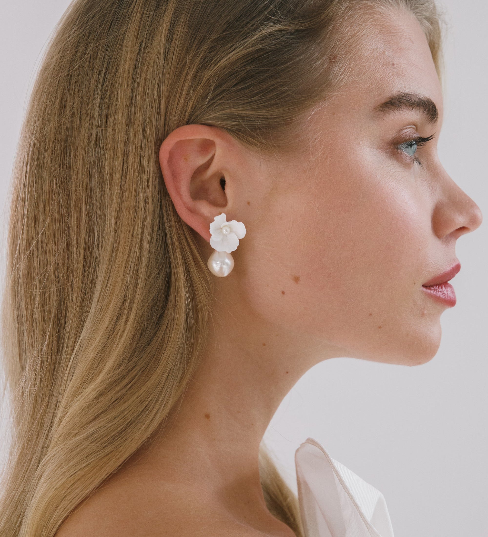 Jennifer Behr - Corisande Earrings -- Crystal Pearl