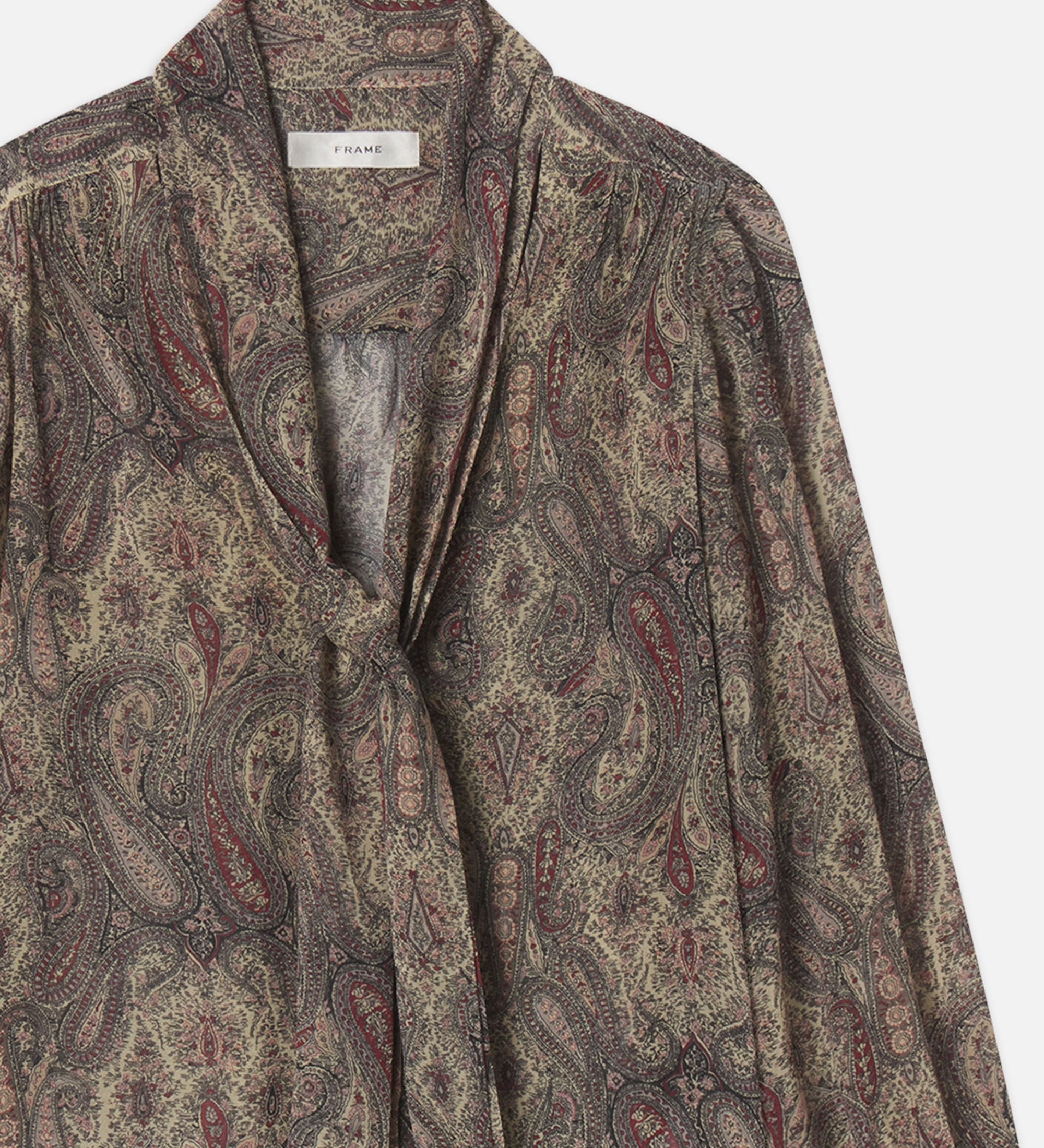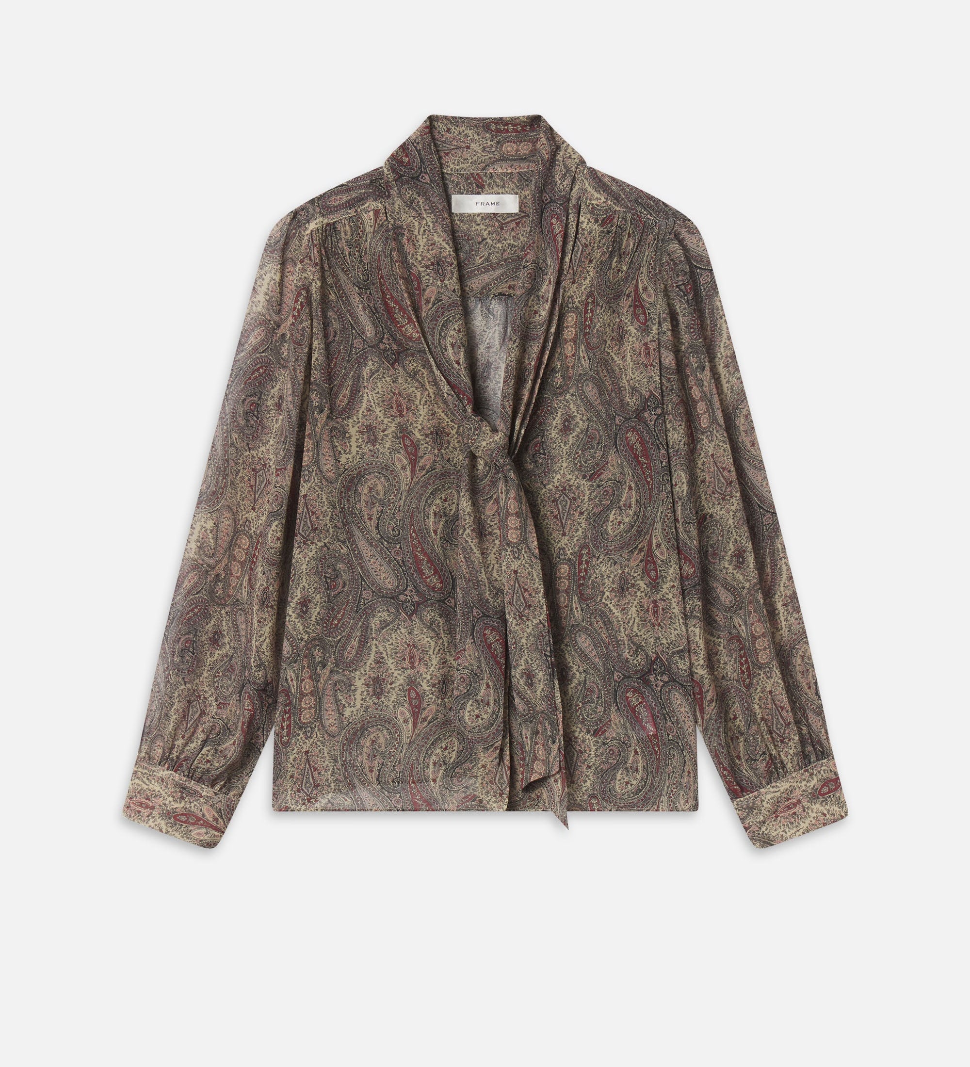 FRAME - The Paisley Silk Tie Blouse -- Ecru Multi