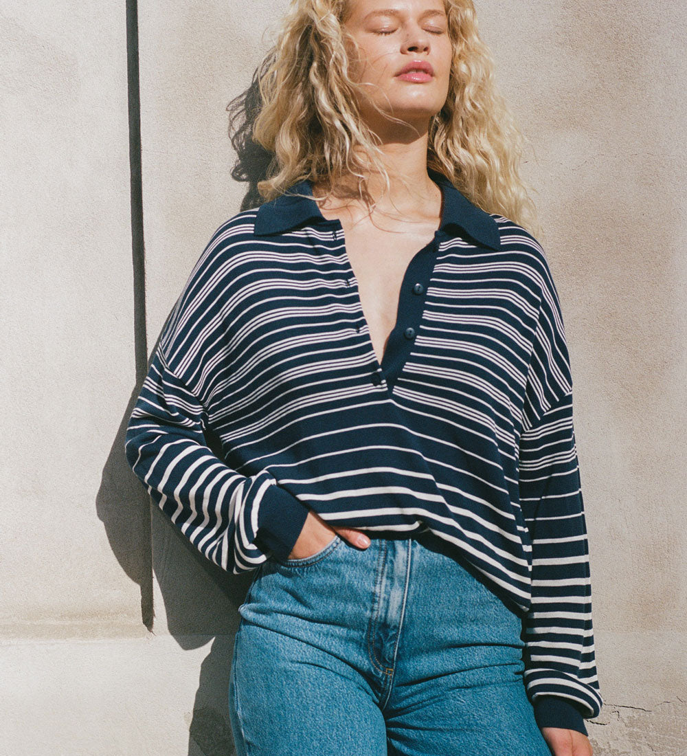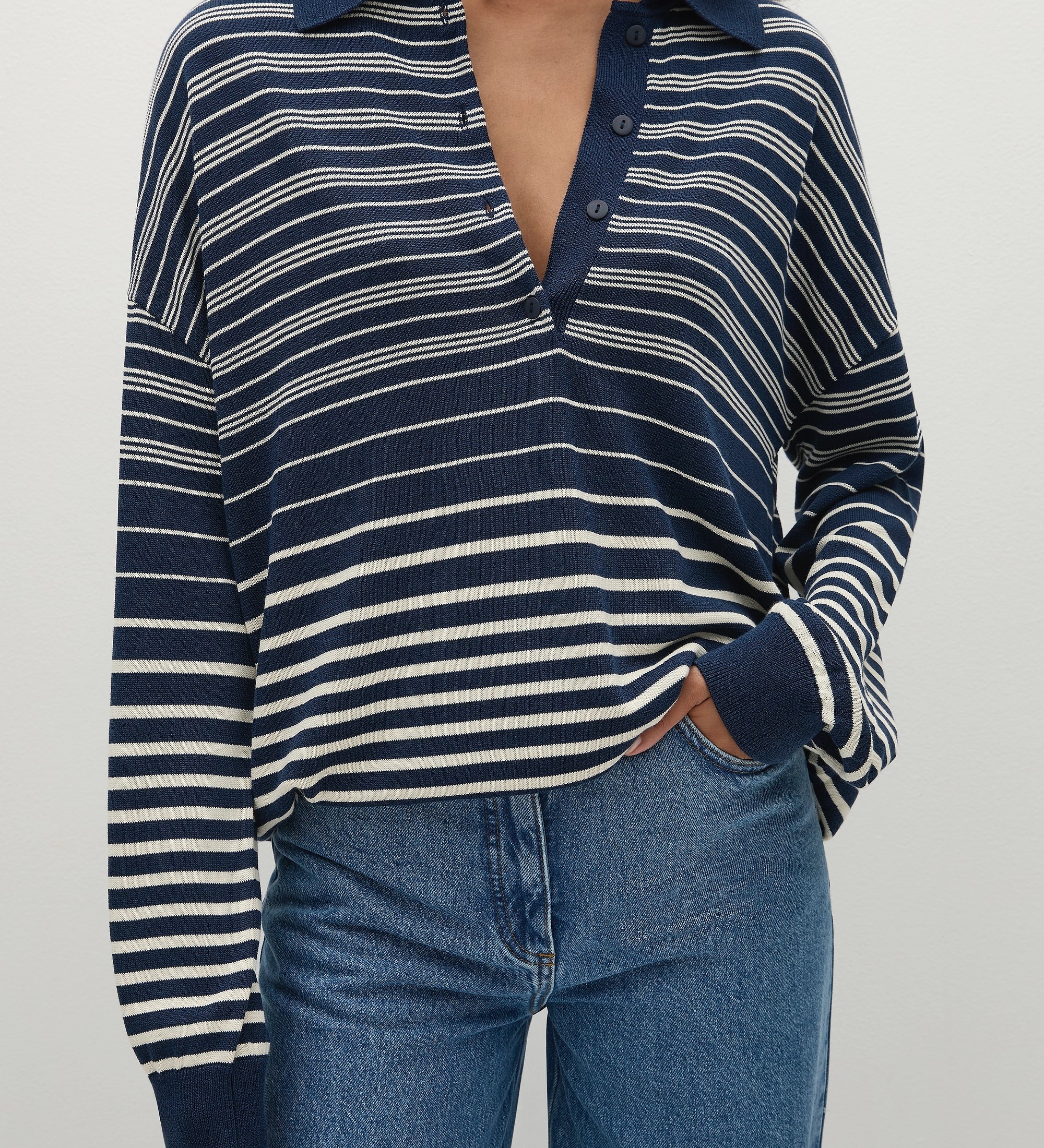 Faithfull - Harlow Polo Scandi Stripe Navy Cream