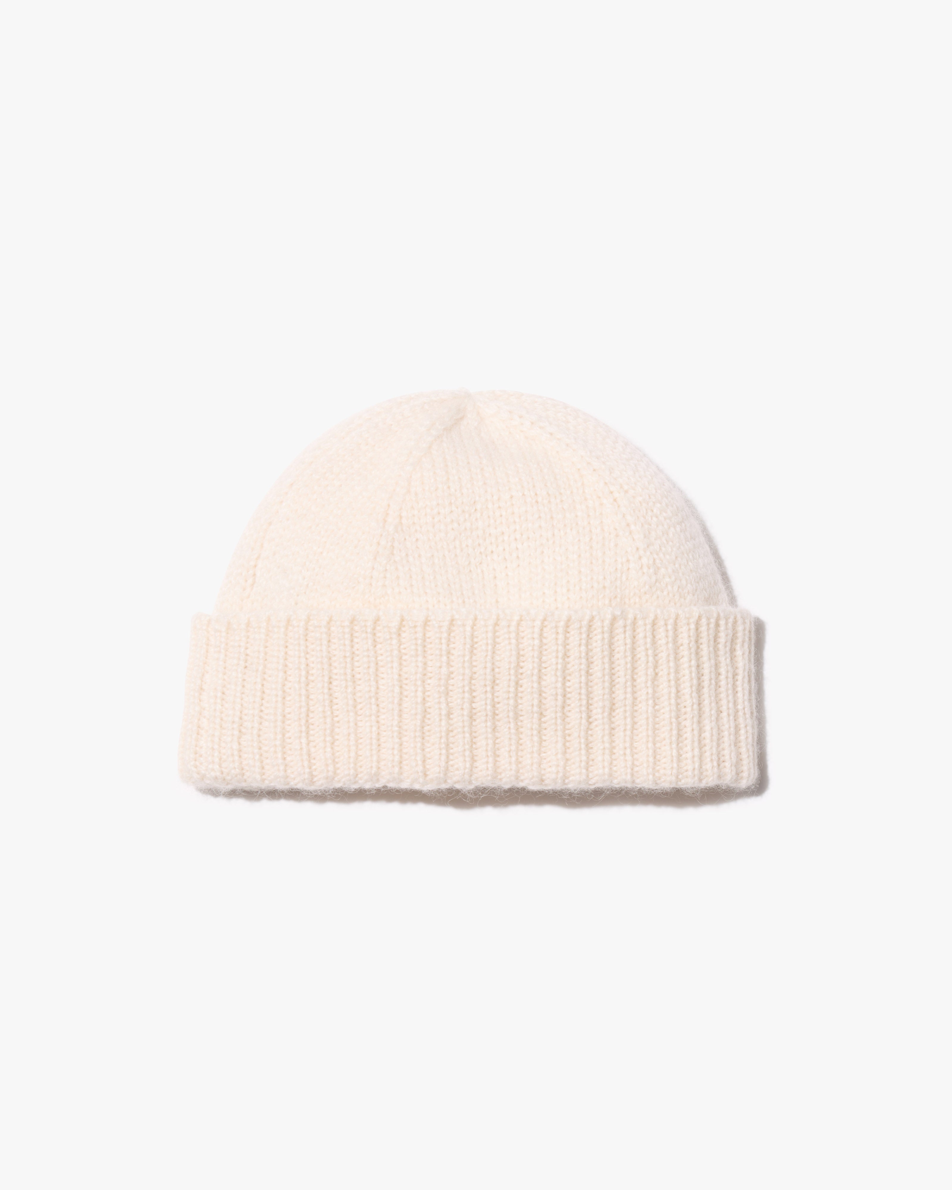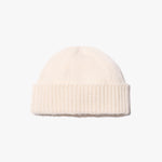 Chunky weight hat in Italian airspun cashmere. Foldover rib trim. Fashioning detail along crown.