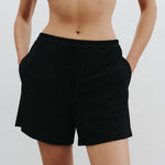 Relaxed fit pull-on drawstring short. Side seam pockets. Clean back.