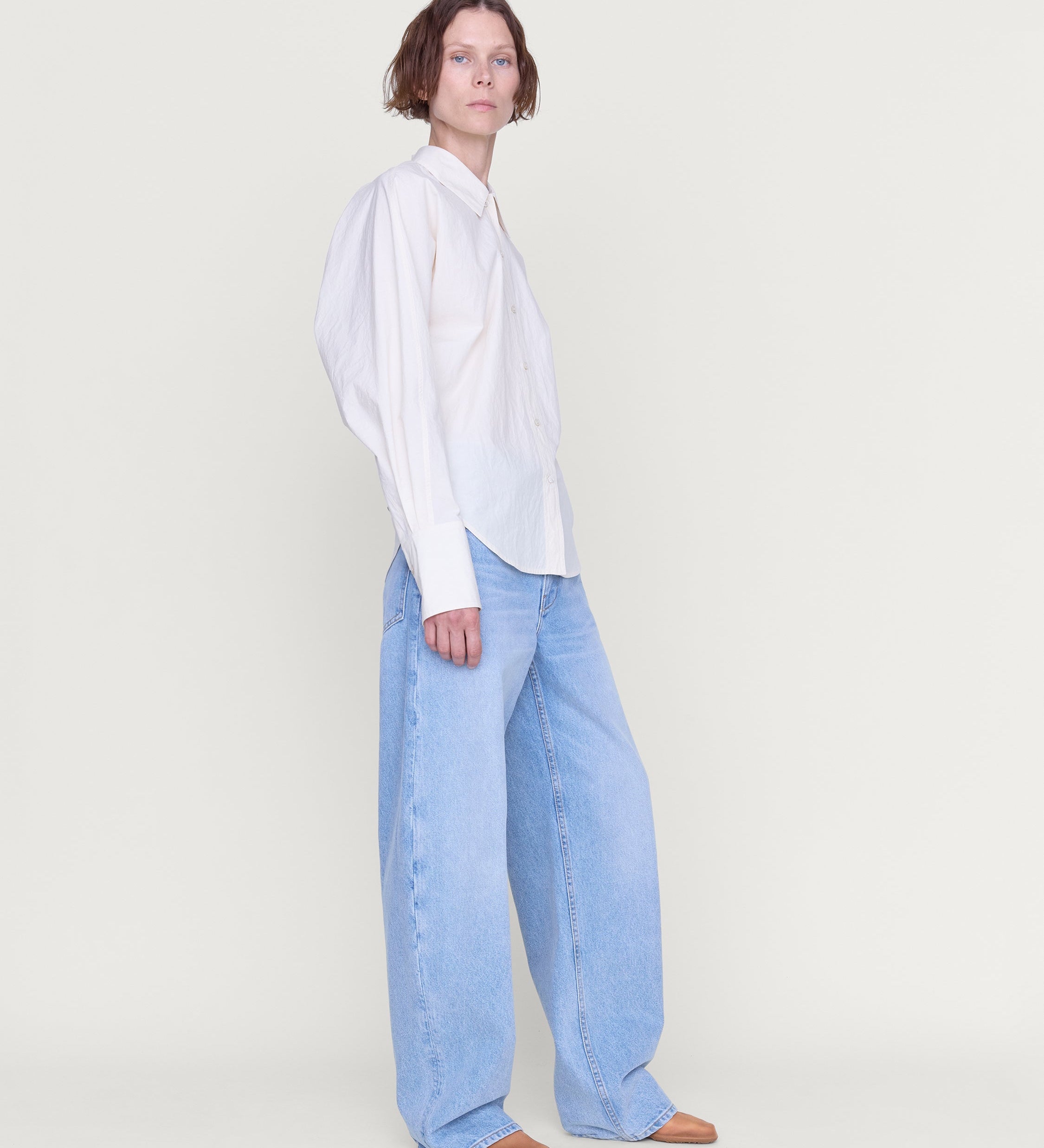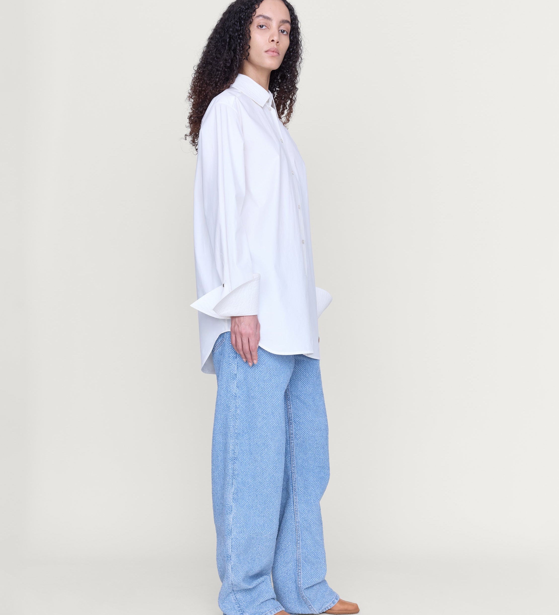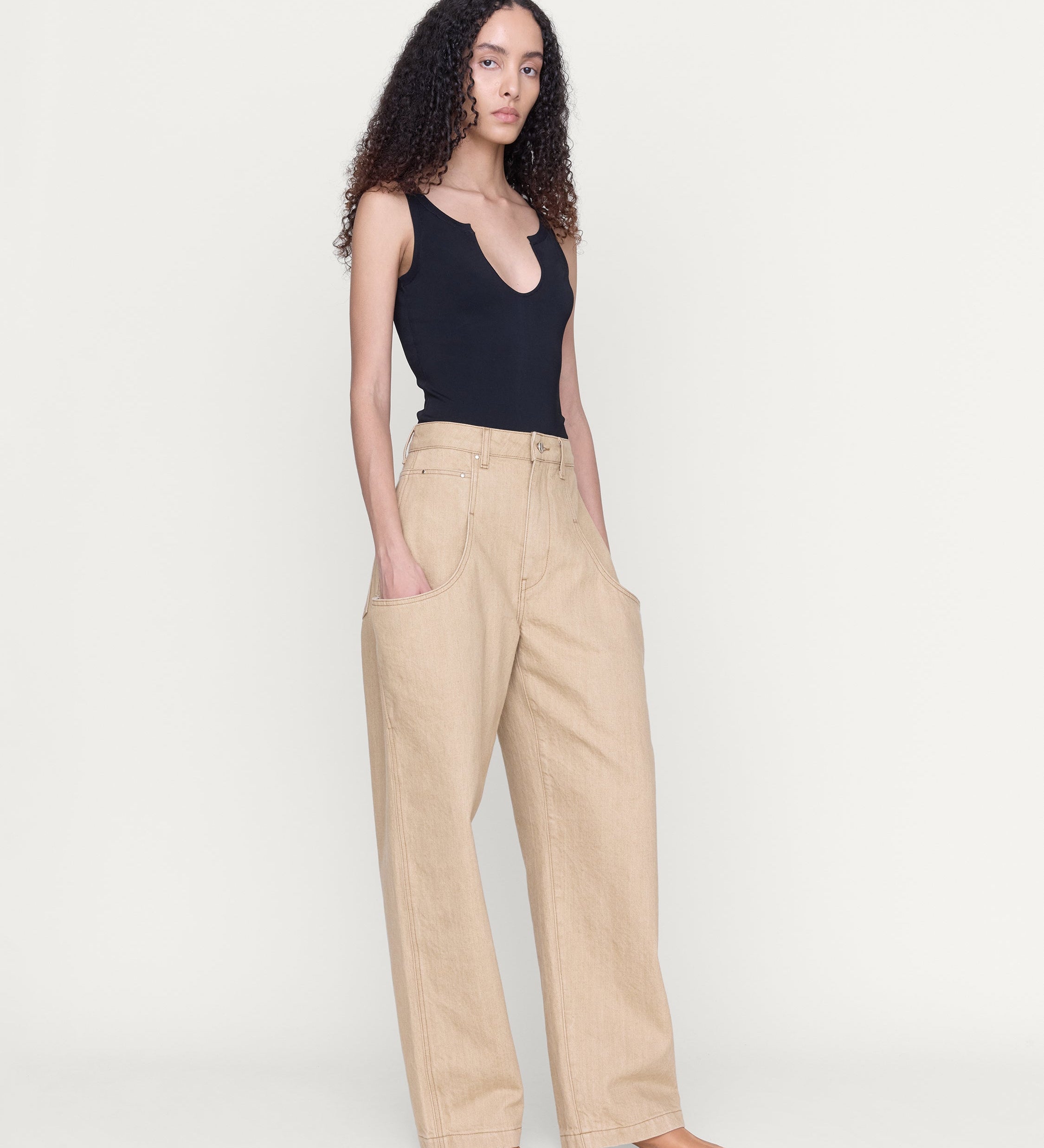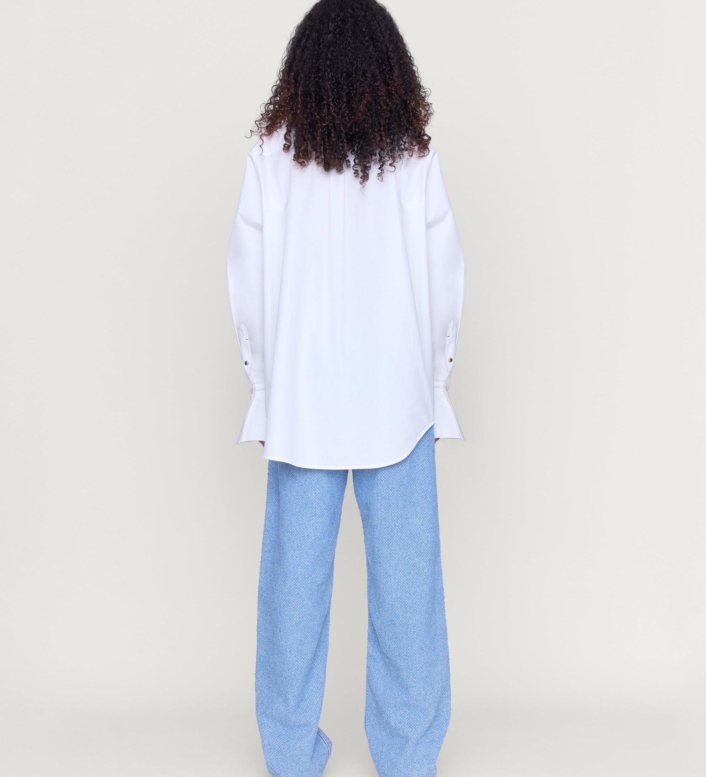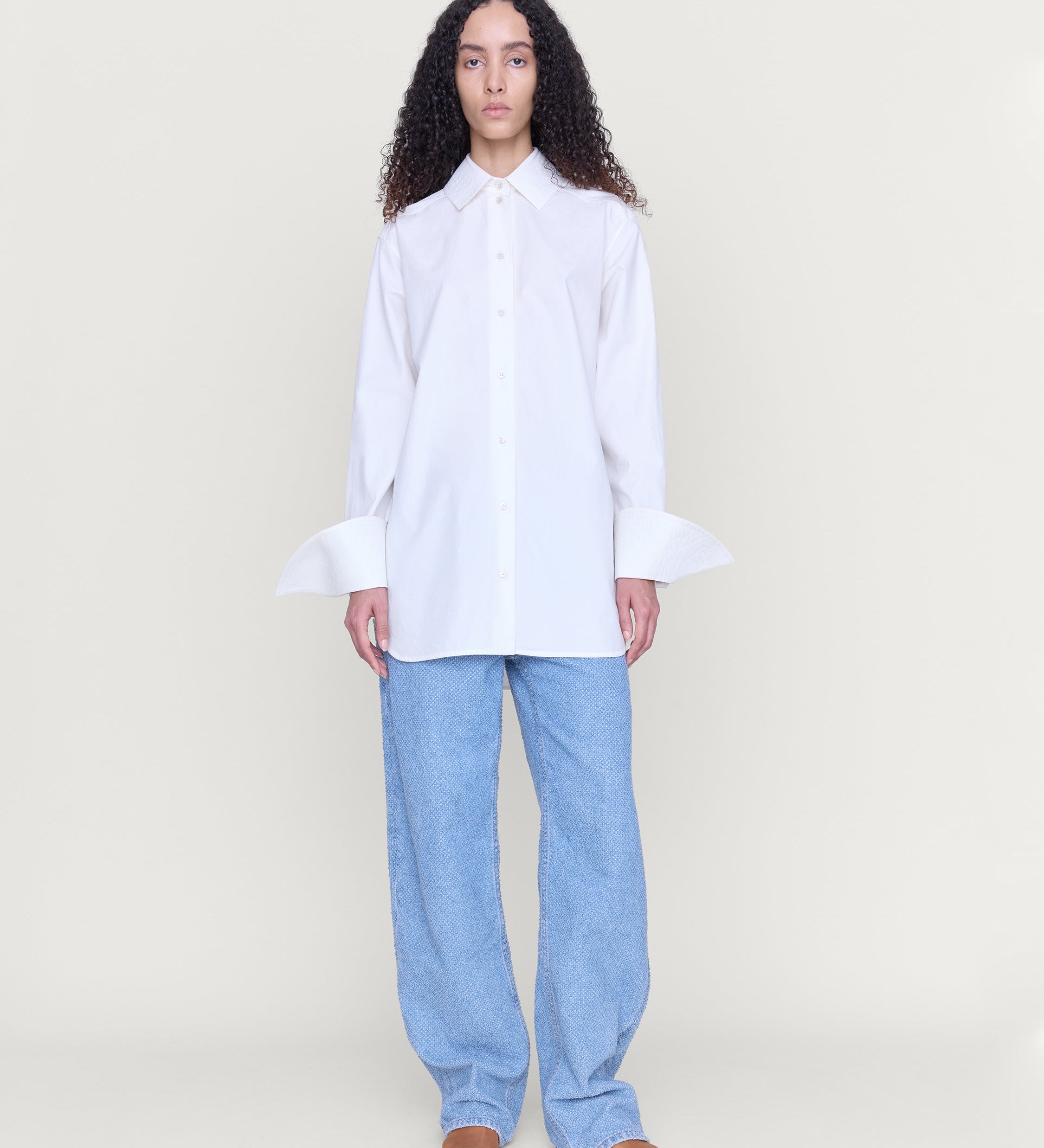 The brand’s whole point is foundational: the bones of the wardrobe. Even the name is a tell: OSSOU is derived from the Latin word for bone, the structure underneath everything. That’s exactly how the pieces wear: denim and ready-to-wear that gives you shape and posture without looking stiff or precious.