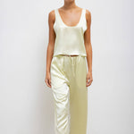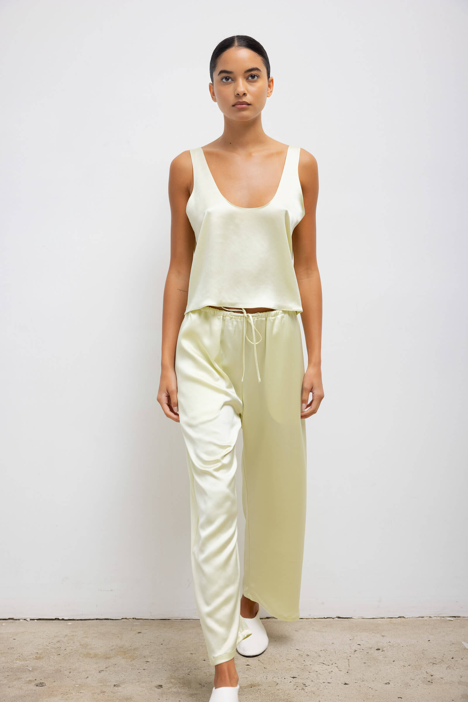 Cut in our Japanese-crafted Barb Satin, the Barb Crop Drawstring Pant features an adjustable drawstring waistband, side and back pockets, and a relaxed, cropped length.