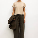 Cut in our garment dyed Kyoto Cotton, The Kyoto Carpenter Pant is a classic utility inspired trouser. This pull-on style pant features a baggy leg silhouette that hits at the ankle, with topstitched utility panels at front, an adjustable waistband, and patch pockets at back. Transition these through the seasons with the matching Kyoto Pocket Button Down.