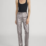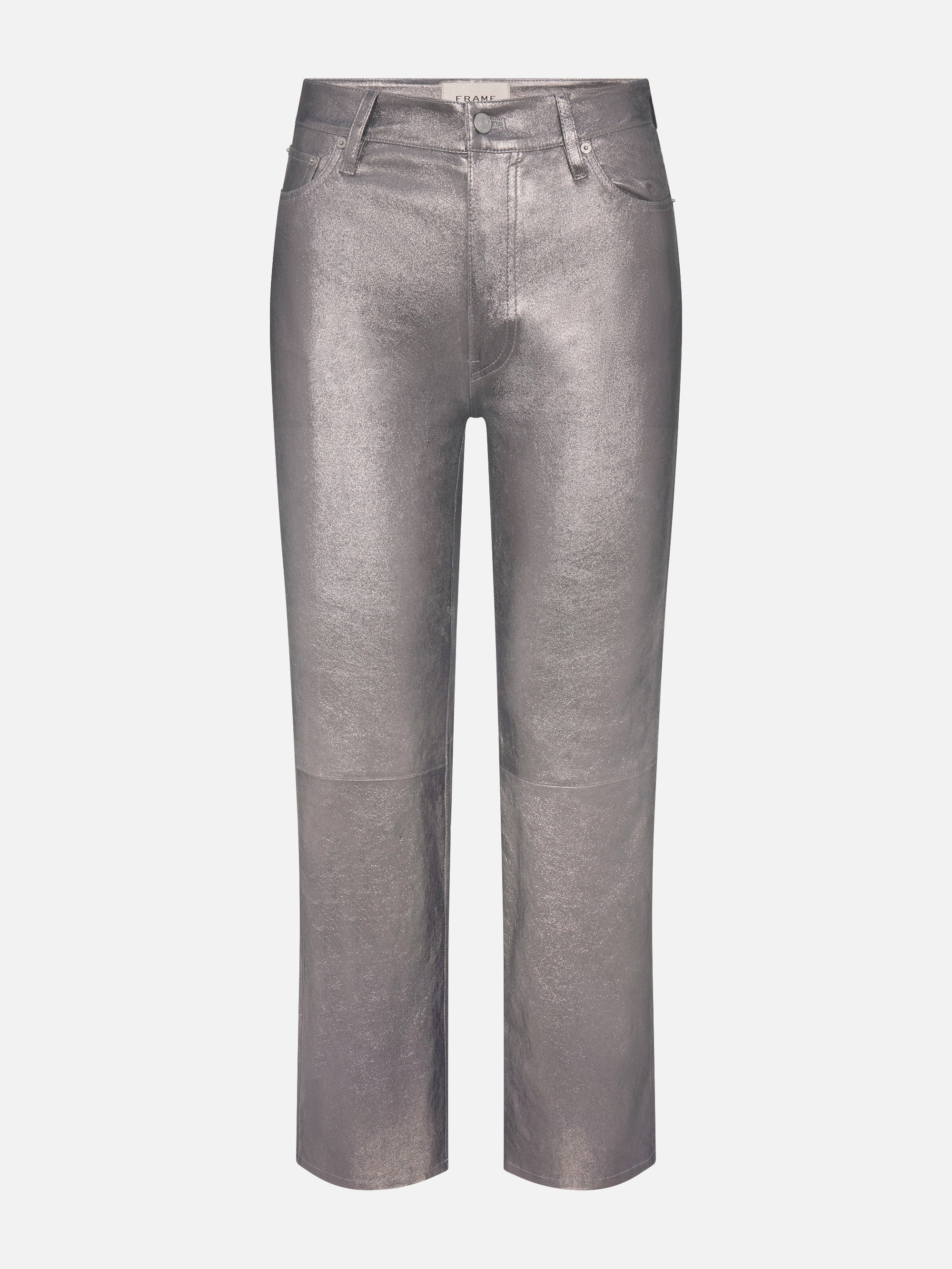 Our popular Le Sleek Straight silhouette, now in pure lamb leather with a fresh metallic colorway. This pant features a high-rise waist and relaxed straight leg that hits at the ankle.