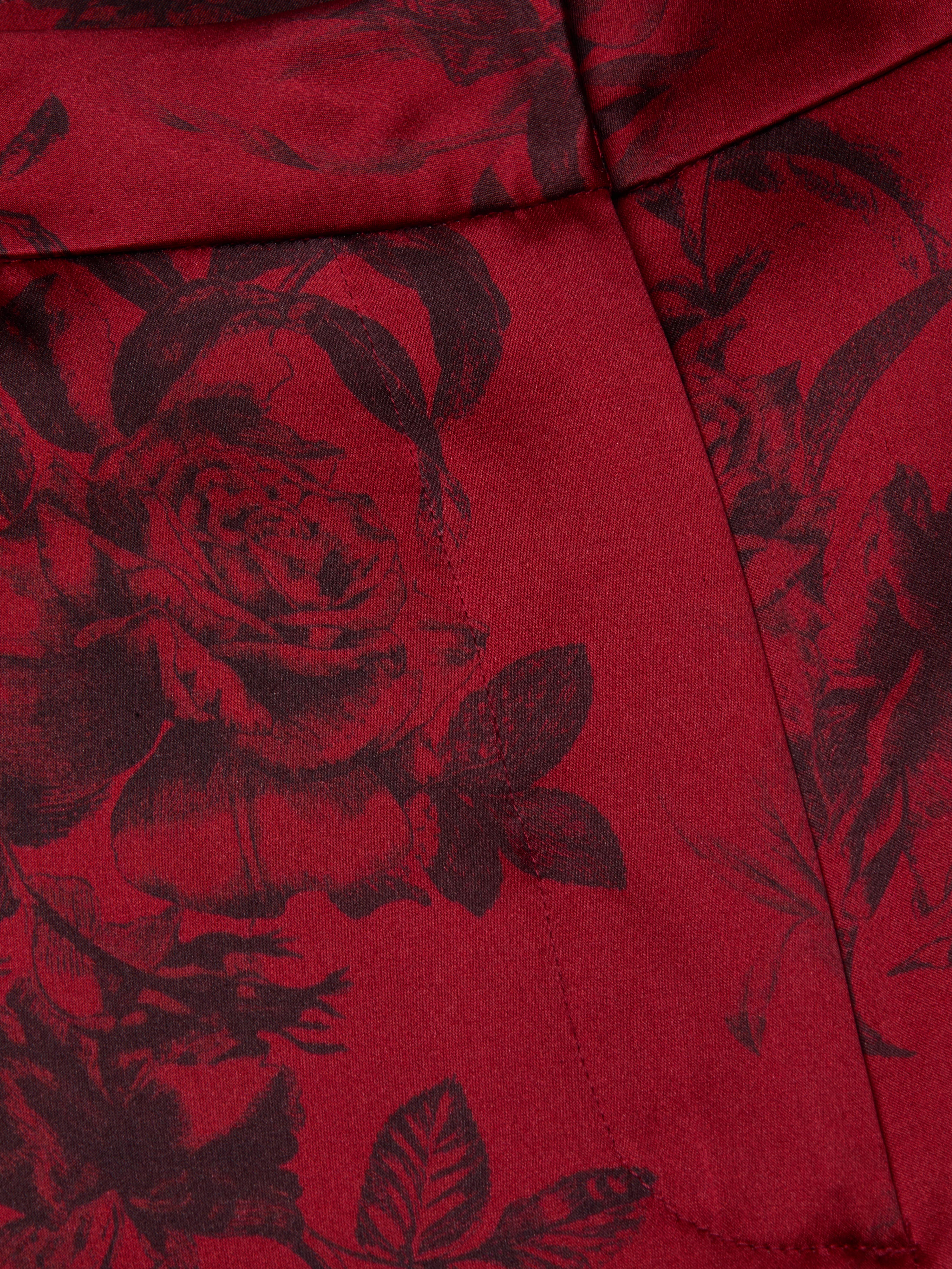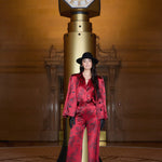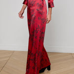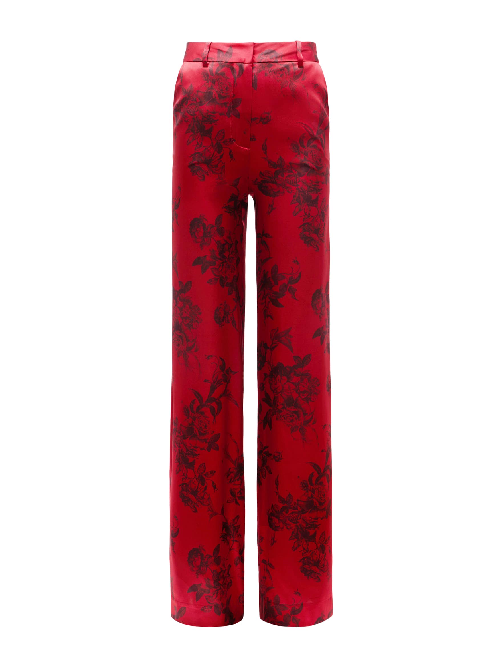 This style was featured in our Fall ‘25 NYFW presentation. Pilar is the perfectly proportioned wide-leg pant, renewed each season in fresh fabrications and colorways. Now back in burgundy silk with an artistic floral print.