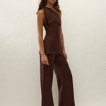 A softly tailored high-rise pant, designed from a signature 100% European Flax® linen in a deep shade of carob brown. Fitted through the waist with a smooth front, they fall into a refined, yet relaxed wide leg that flares at the hem and crops around the ankles. Style with the matching Agua Top for an elevated approach to linen set dressing.