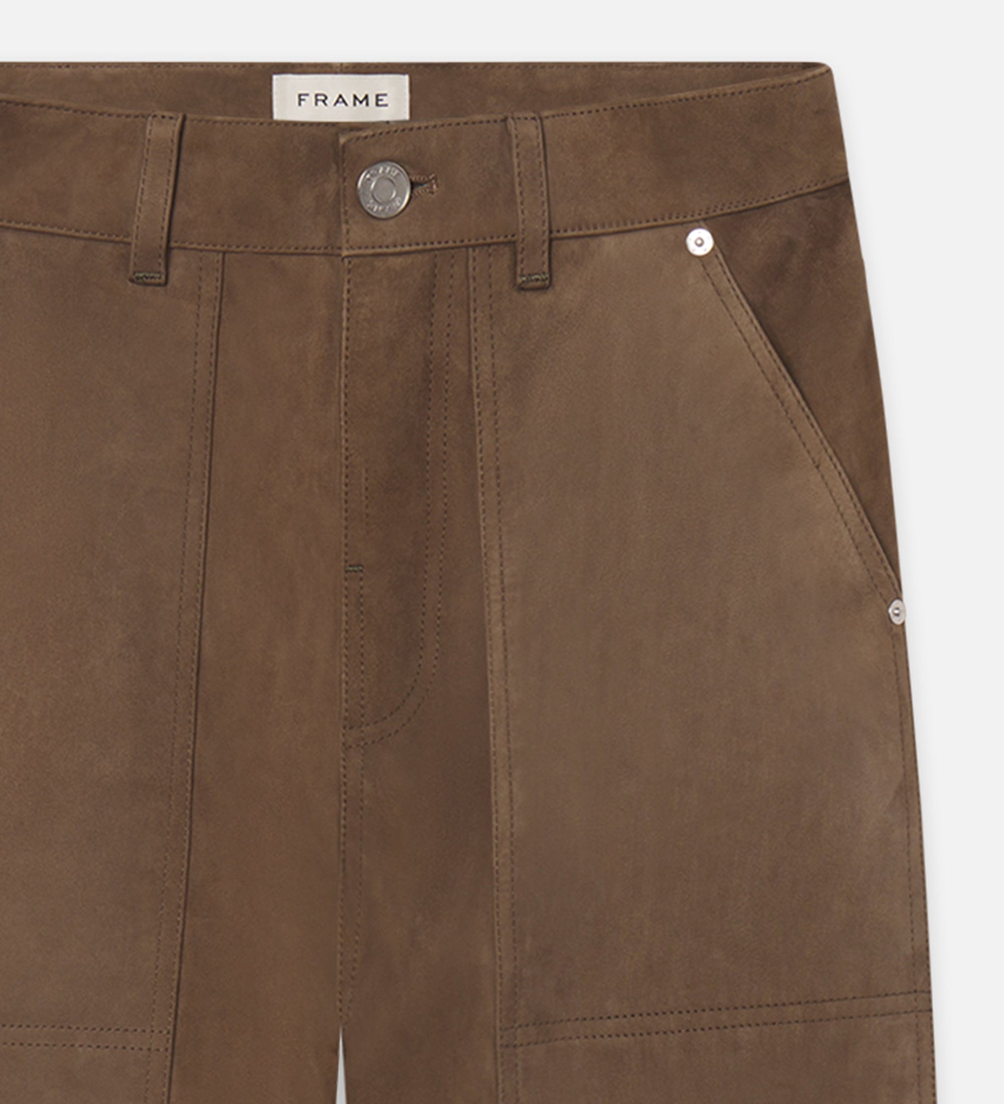 FRAME - The Society Archive Suede Workwear Pants -- Soft Mocha