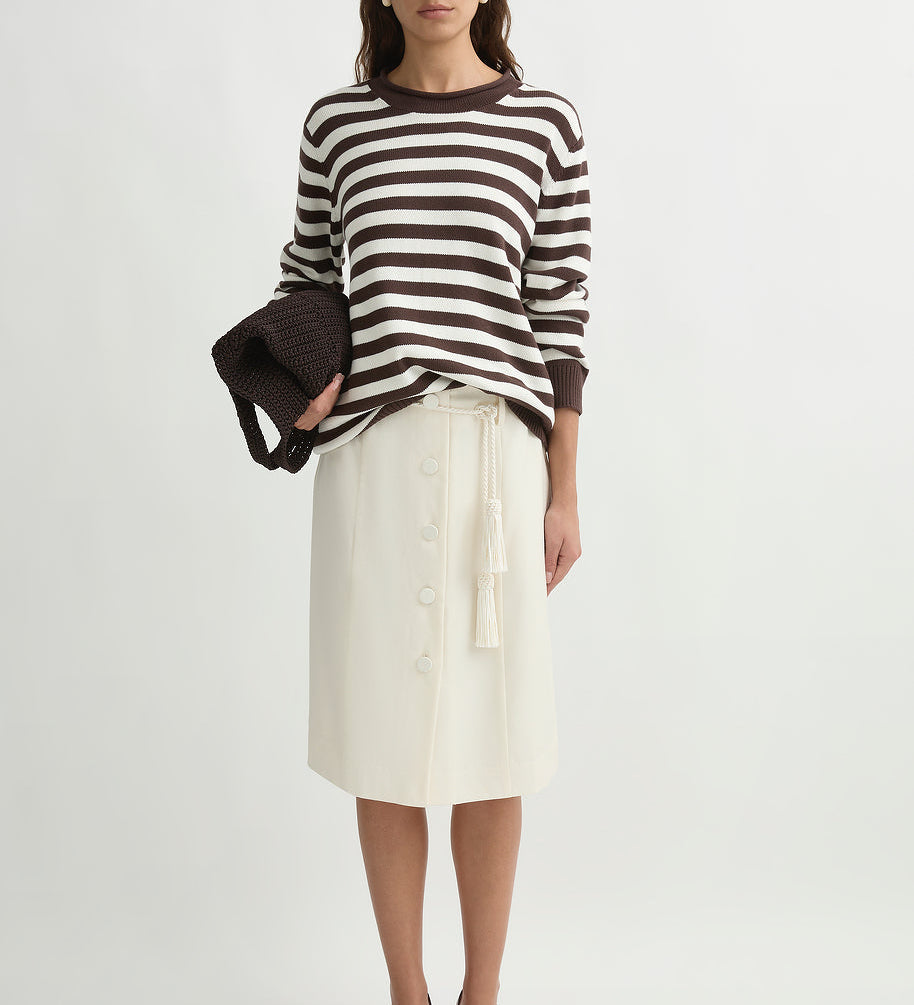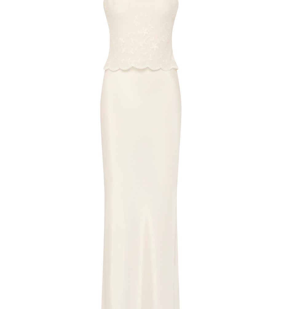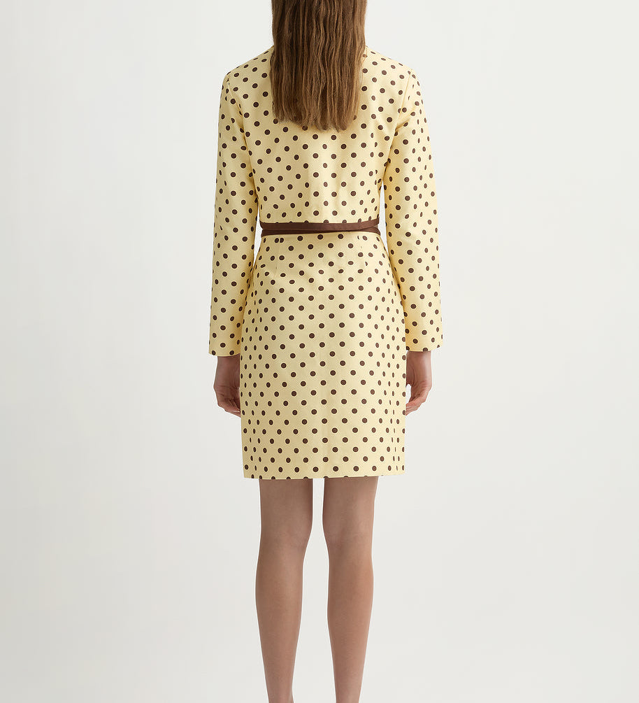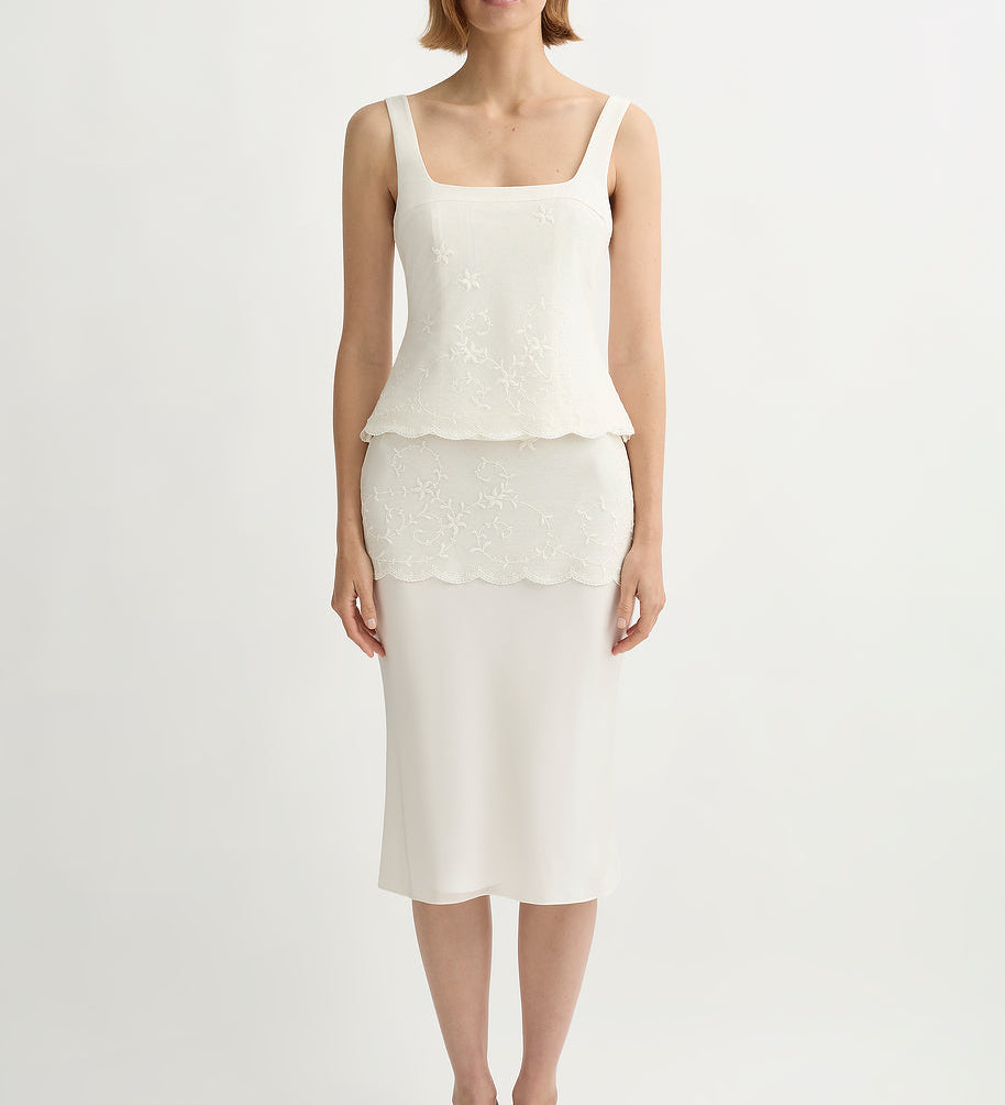 The sets do most of the work for you (that’s why they became the signature): a vest and skirt, a clean top and trouser, a dress that reads polished in daylight. It’s vintage-referenced in a quiet way, but the styling is modern: simple lines, clean proportions, nothing fussy.