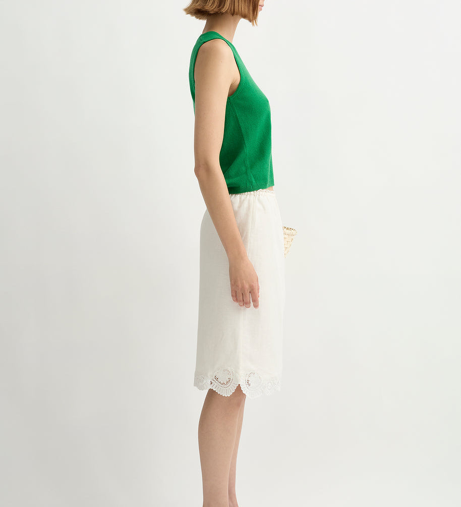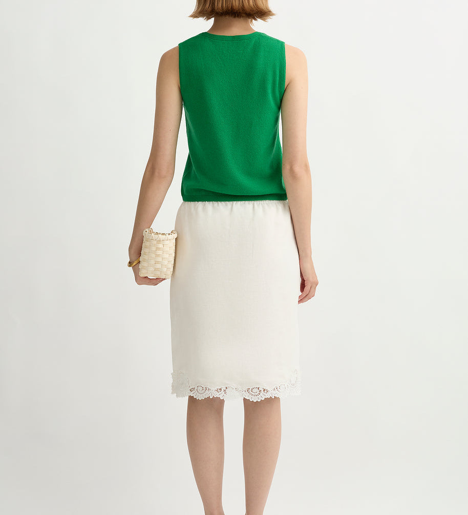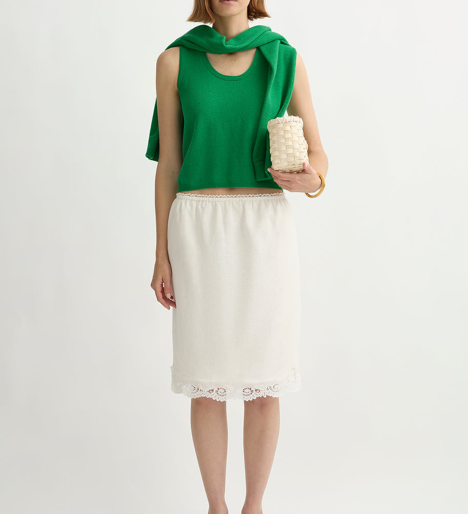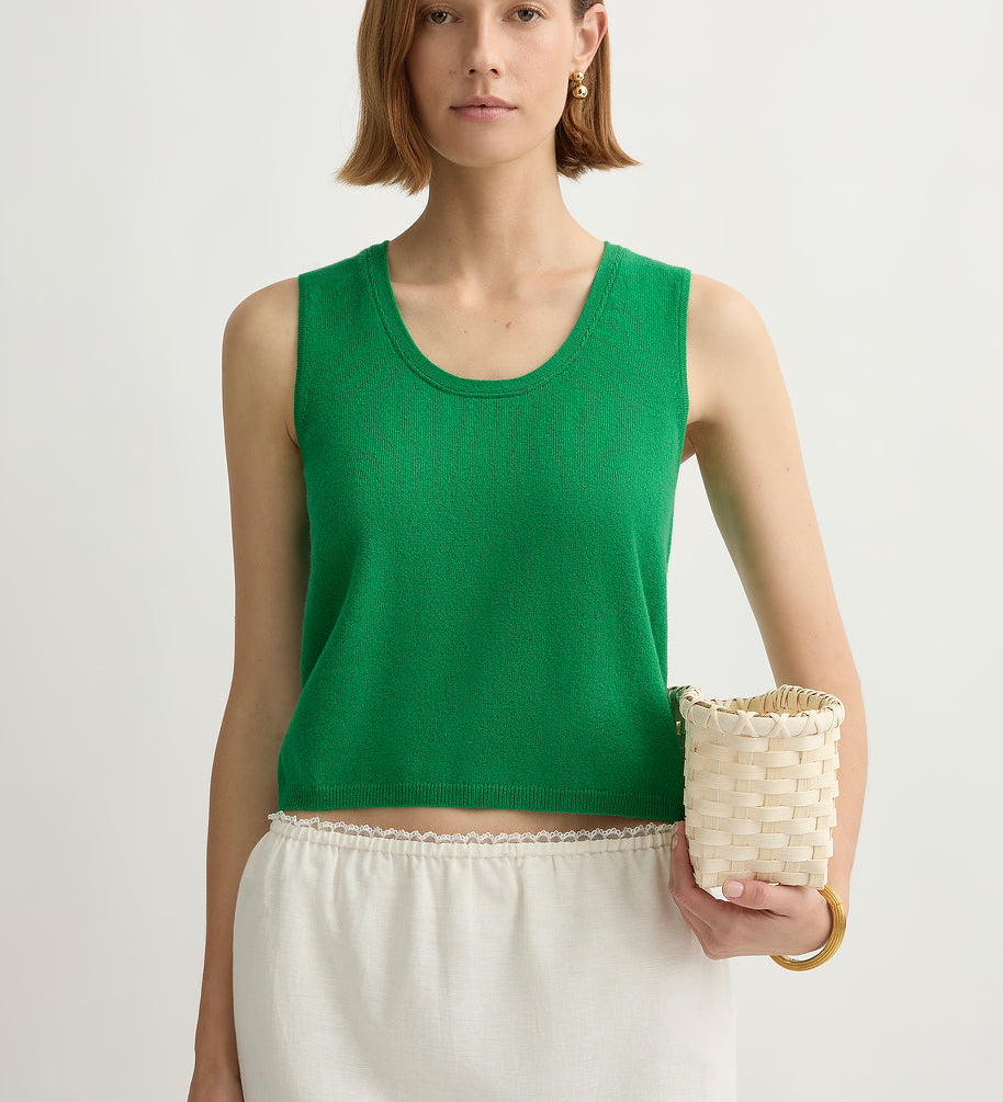 The sets do most of the work for you (that’s why they became the signature): a vest and skirt, a clean top and trouser, a dress that reads polished in daylight. It’s vintage-referenced in a quiet way, but the styling is modern: simple lines, clean proportions, nothing fussy.