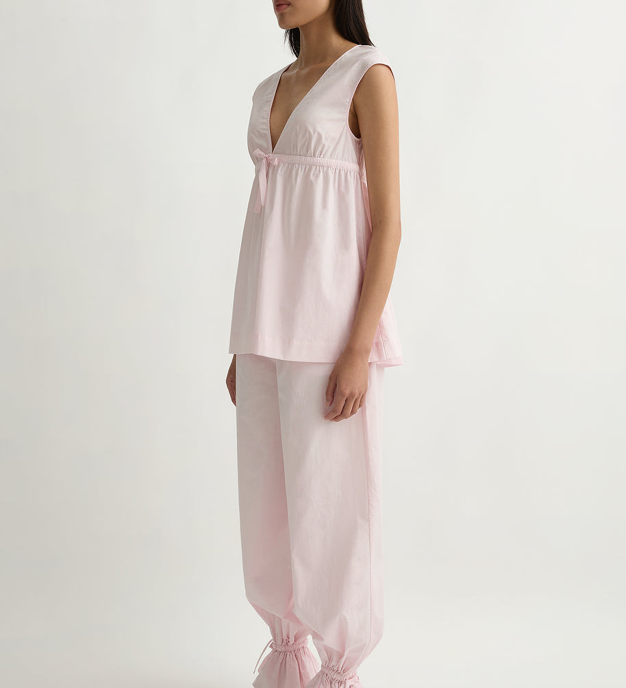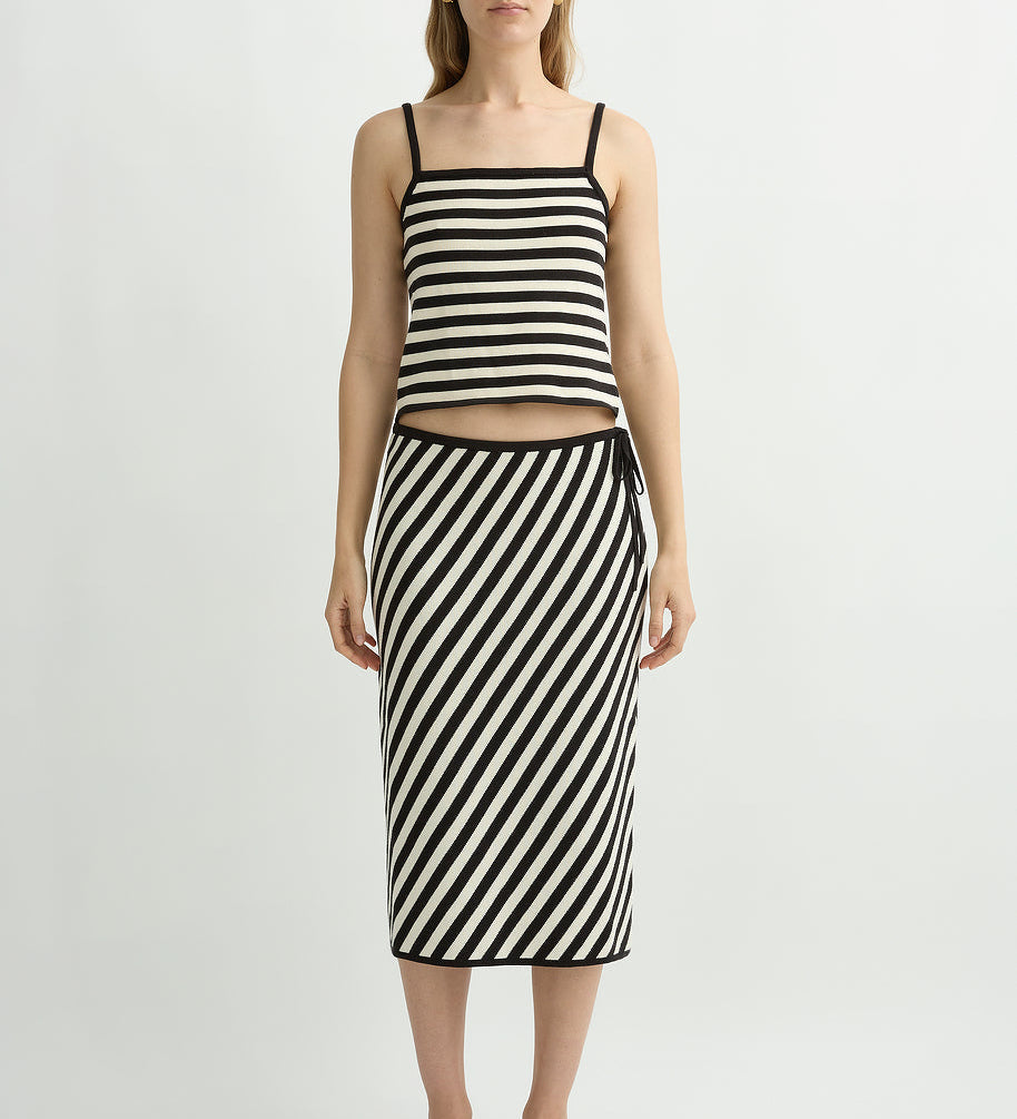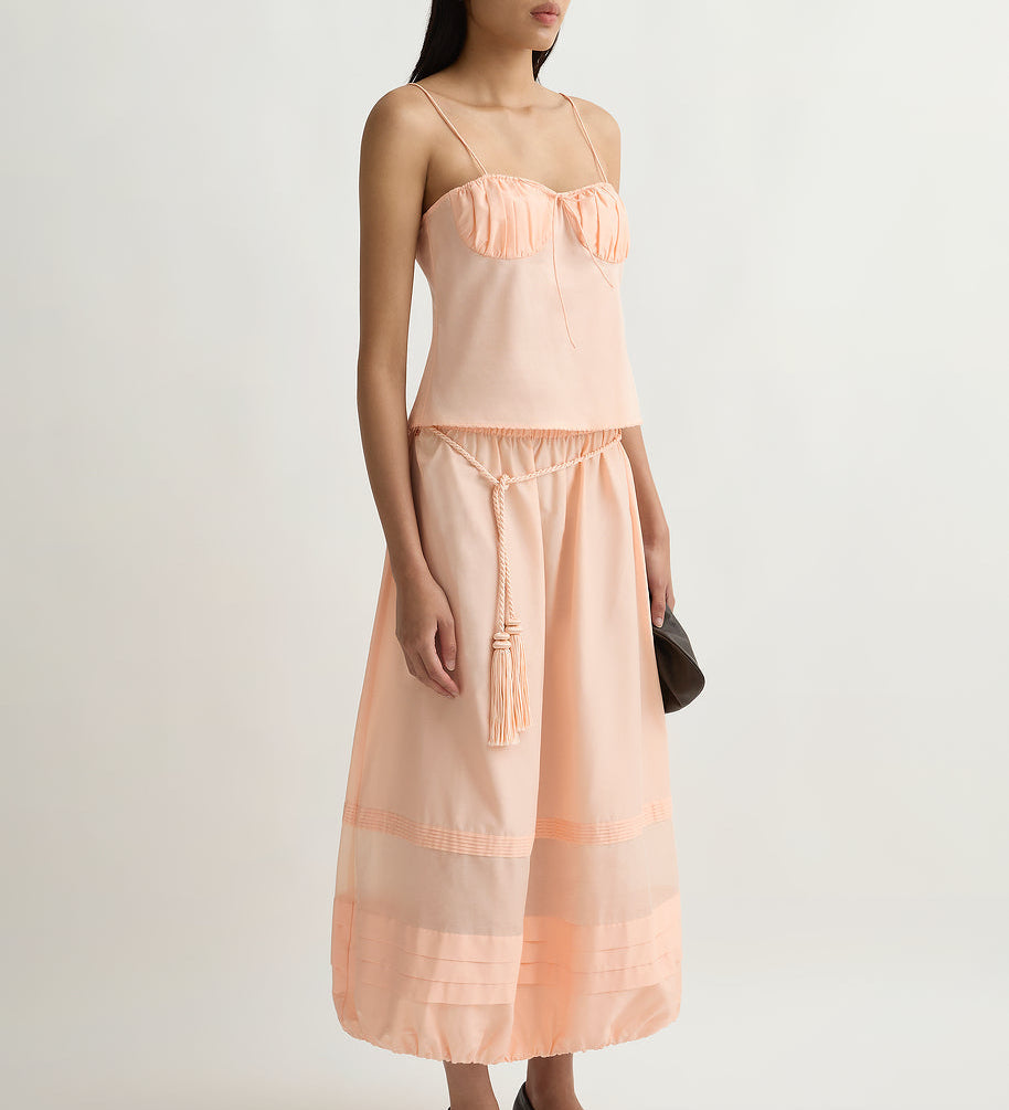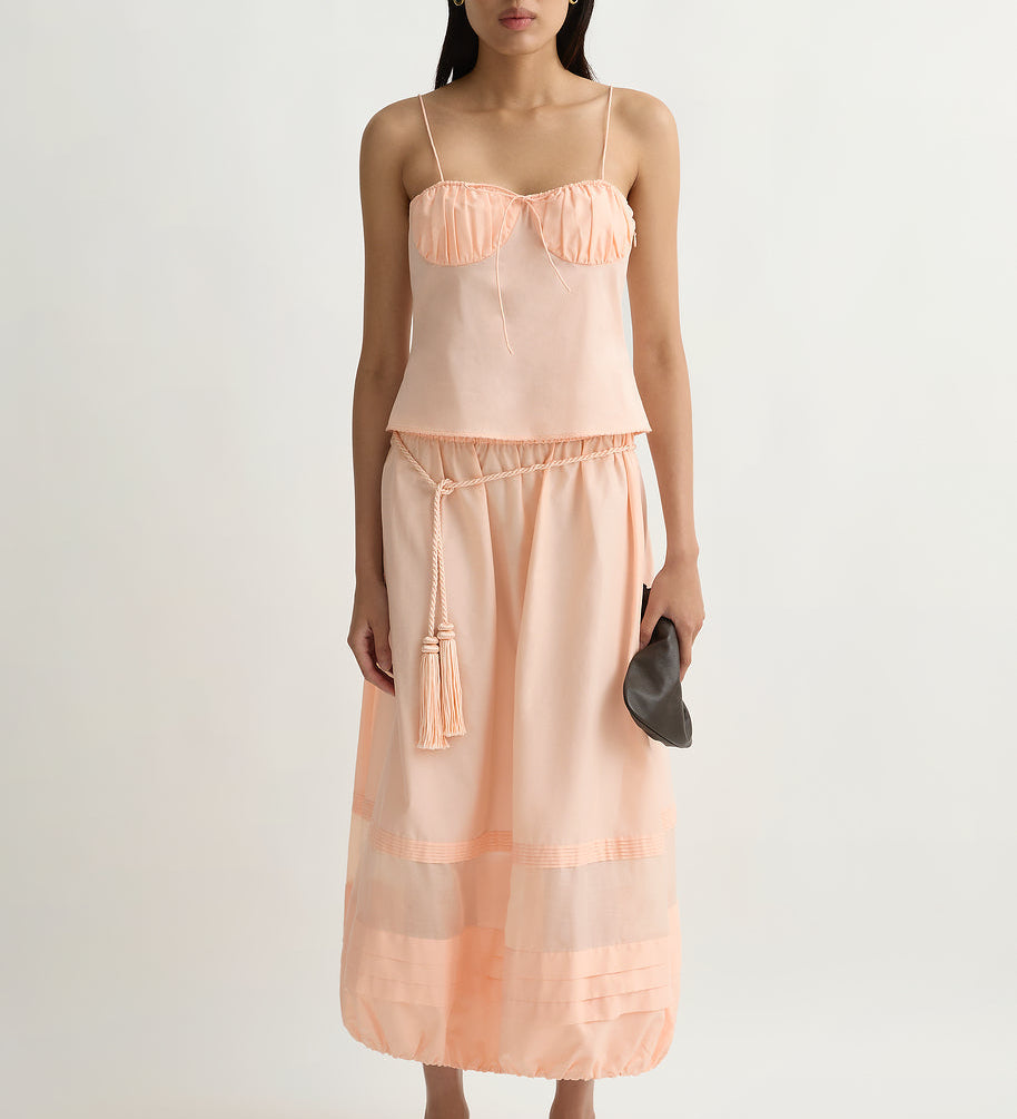 The sets do most of the work for you (that’s why they became the signature): a vest and skirt, a clean top and trouser, a dress that reads polished in daylight. It’s vintage-referenced in a quiet way, but the styling is modern: simple lines, clean proportions, nothing fussy.