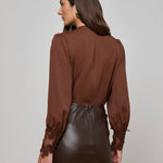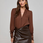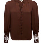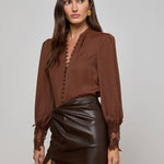 The Ava is a L’AGENCE classic year after year. This beautiful vintage-inspired blouse is crafted with extended cuffs in exquisite scalloped lace. Now in hot fudge brown.