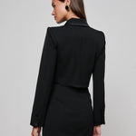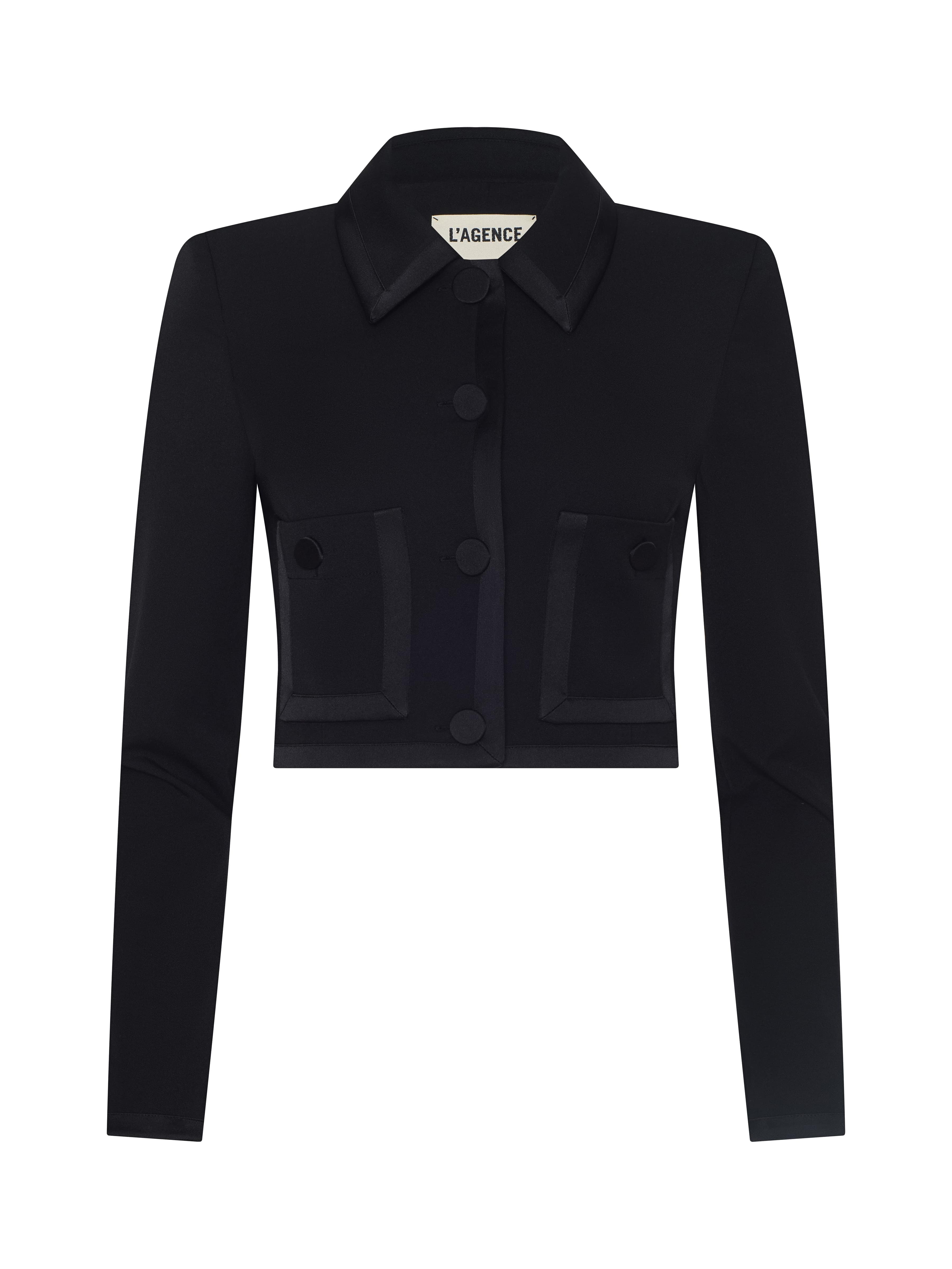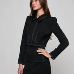 The Blythe channels modern sophistication through sharp tailoring and clean lines. Featuring sleek satin binding along its structured silhouette and bold patch pockets, it strikes the perfect balance between refinement and edge. Style it with its coordinating skirt for a streamlined, powerfully feminine look.