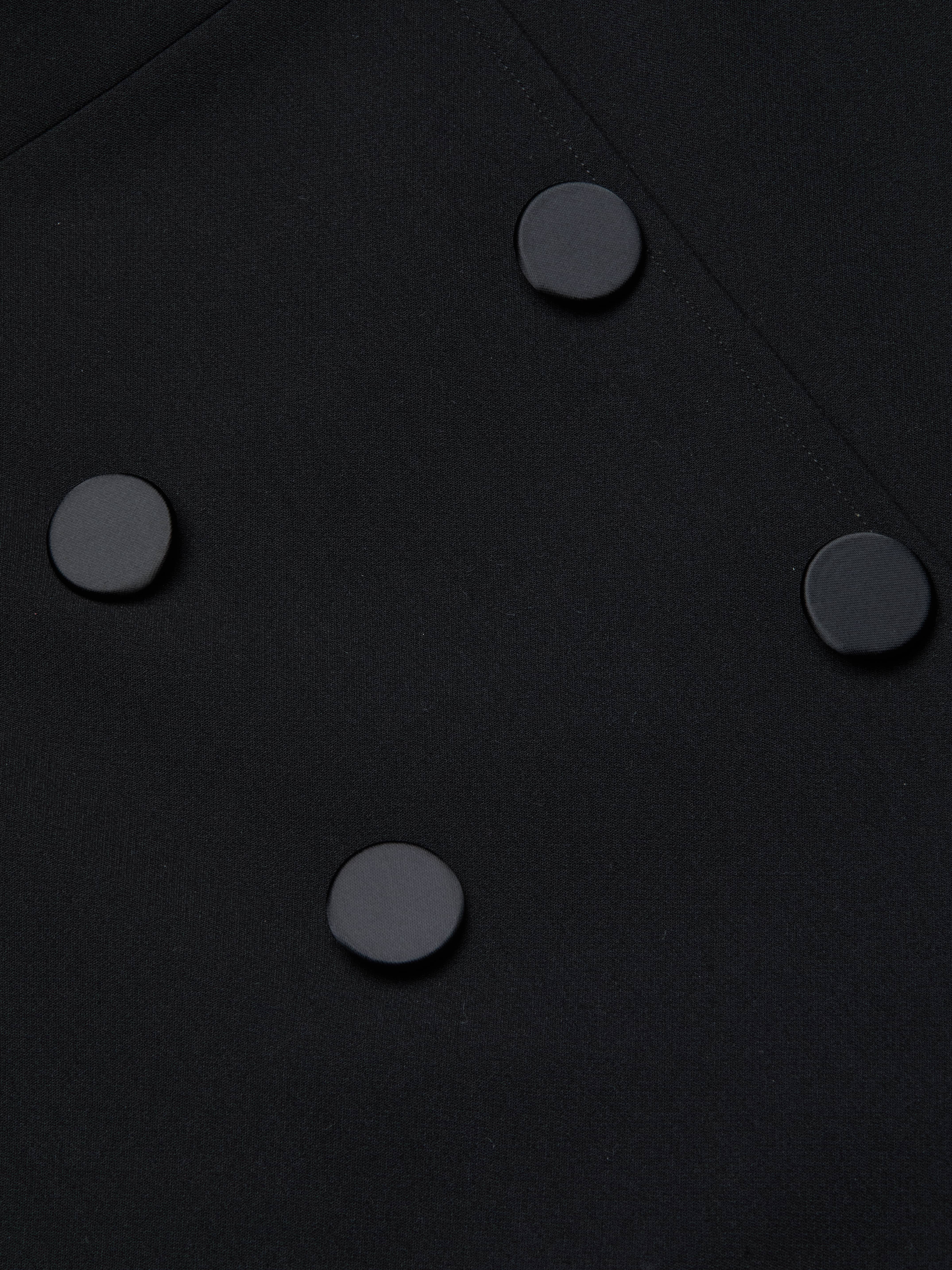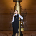 This style debuted at our Fall ‘25 NYFW presentation. Tailored with precision, the Catherine tuxedo midi dress reimagines classic suiting through a distinctly feminine lens. The sleeveless silhouette features a sharp satin lapel and double-breasted front, offering modern edge. Impeccably cut to skim the body and finish at mid-calf, it’s a refined statement piece that's perfect for elevated events. Powerful, poised, and polished.
