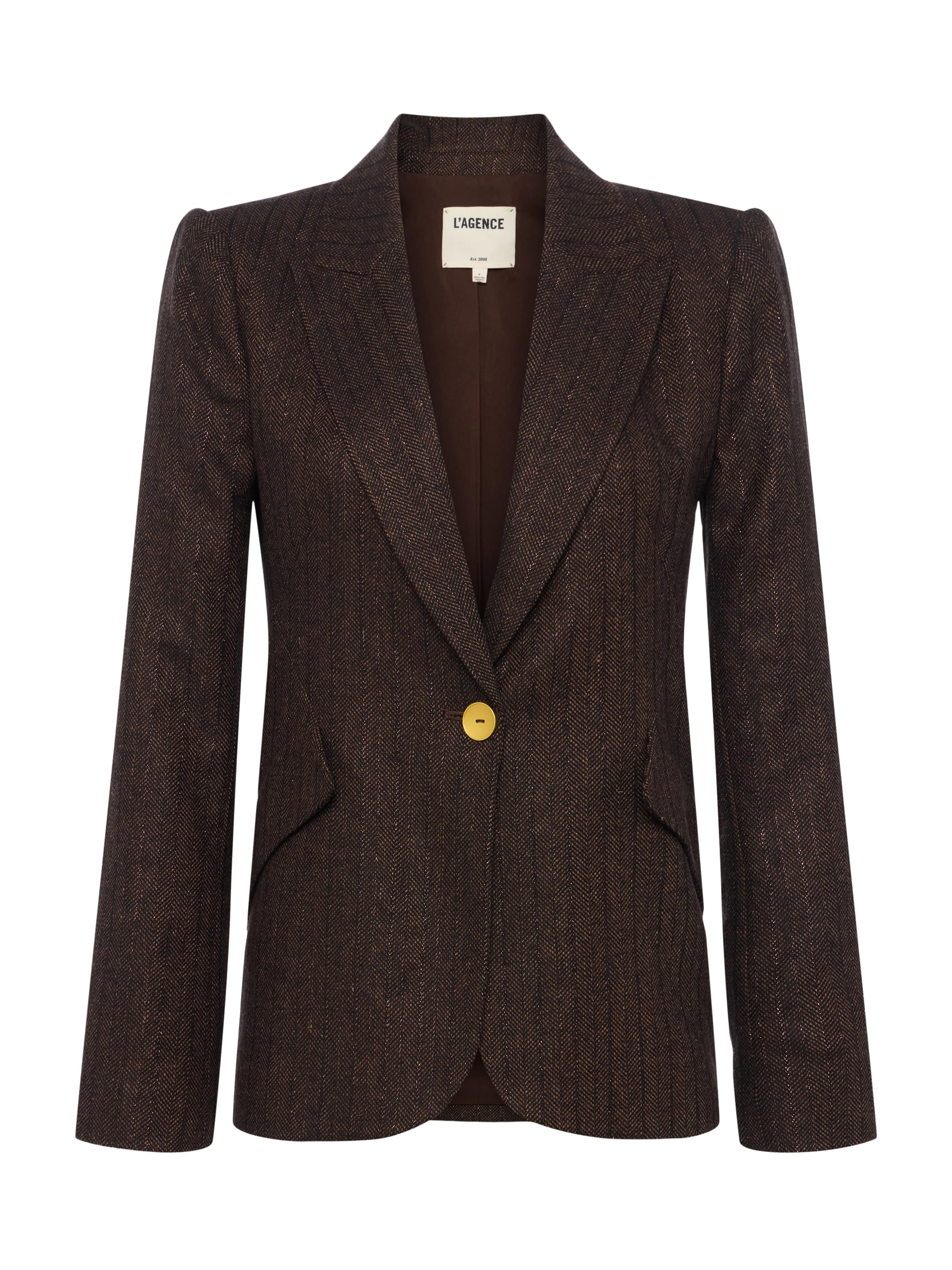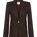The Chamberlain Blazer is back, this time in a luxurious Italian herringbone with a subtle lurex pinstripe. Expertly tailored in a recycled wool-blend with structured shoulders and a flattering, nipped-in waist, this essential is finished with a single gold-tone button. It pairs effortlessly with denim, trousers, or over a slip dress for a polished day-to-night look.