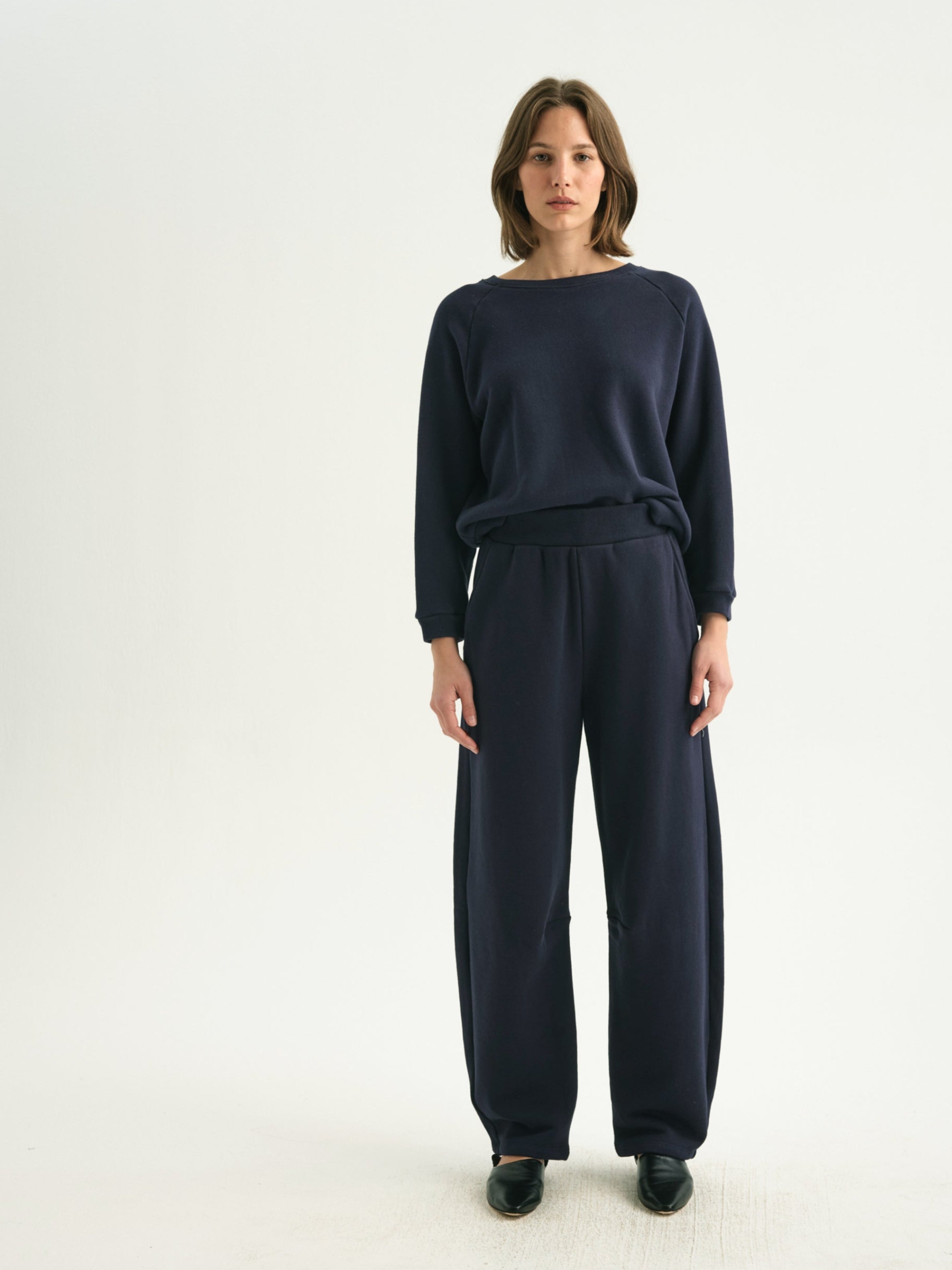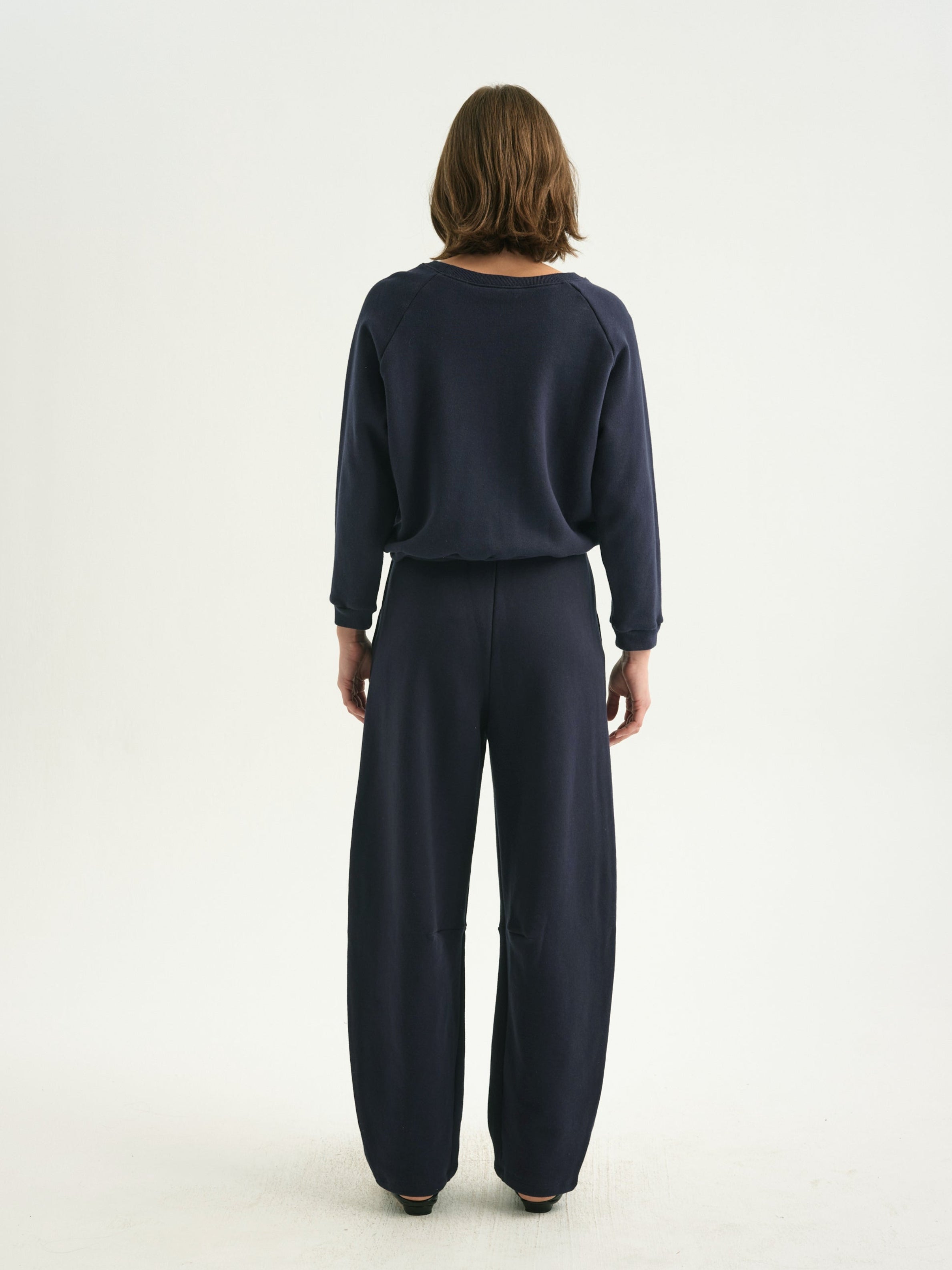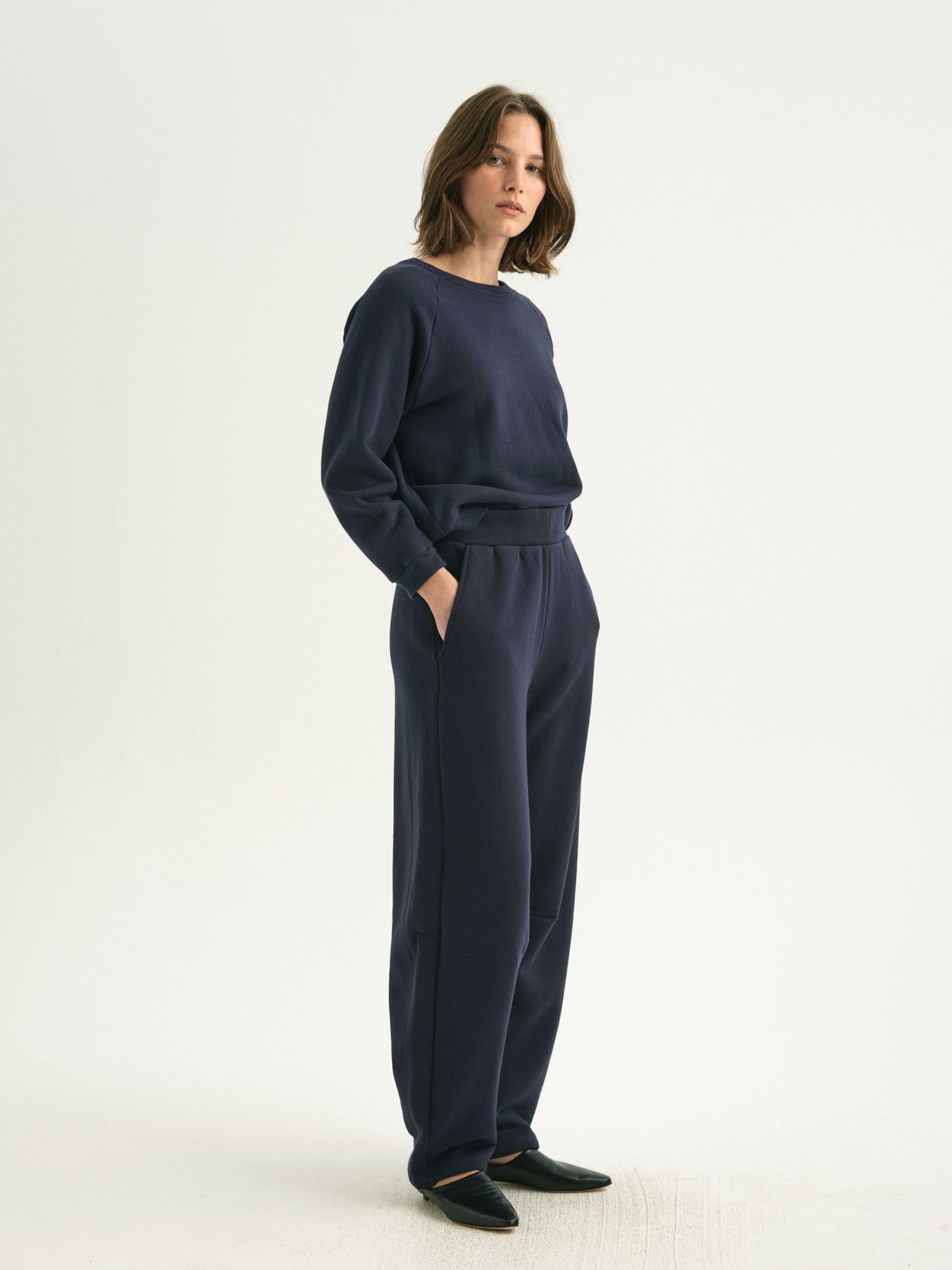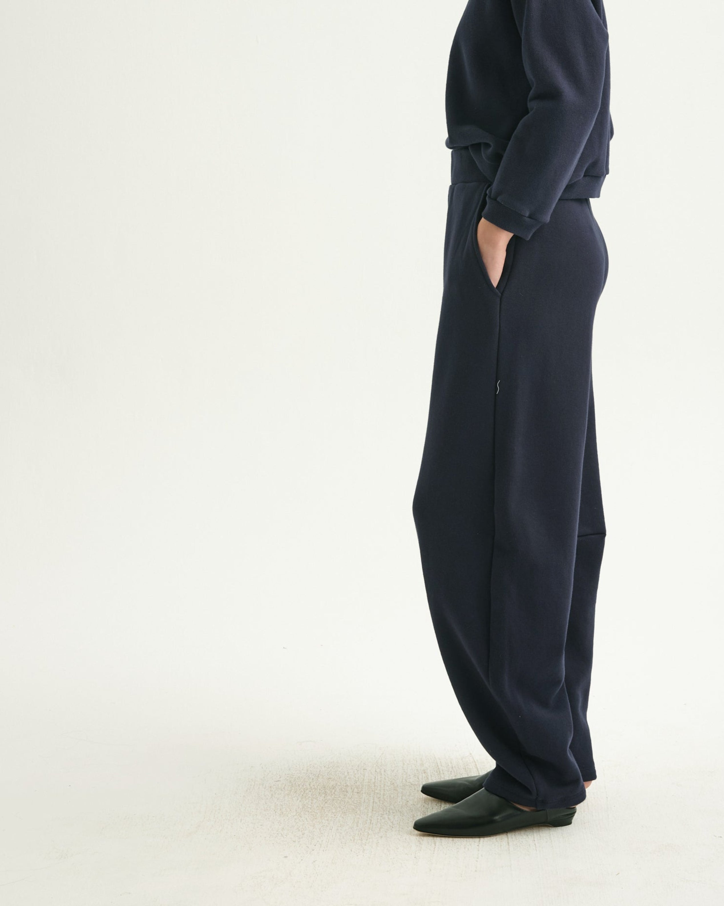 A structured sweat pant that feels like a trouser. Modern enough to wear for all occasions and comfortable enough to wear all weekend long. Tailored in our luxurious Japanese french terry. Piece dyed for a saturated hue that maintains it’s color.