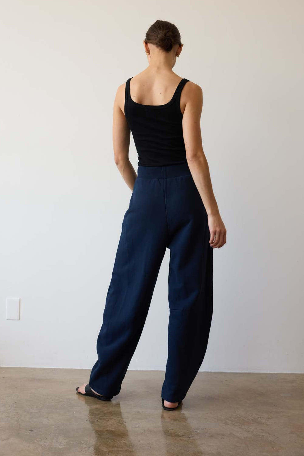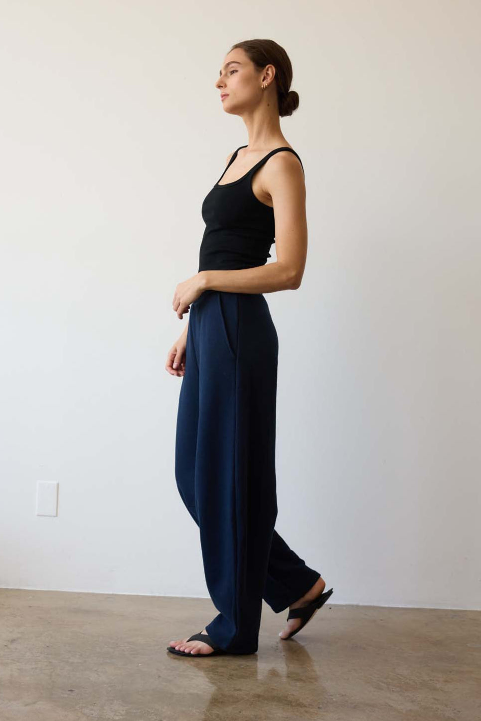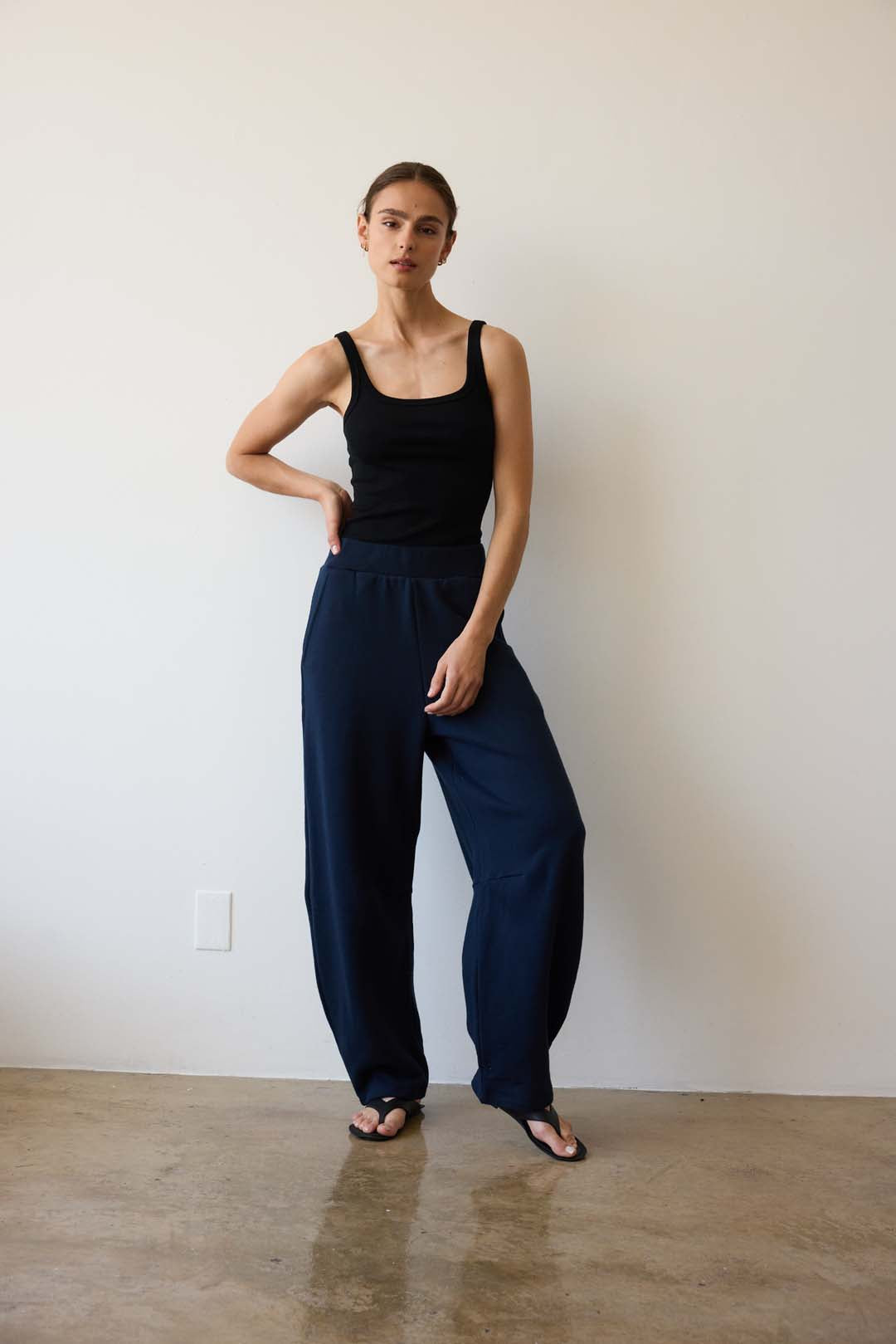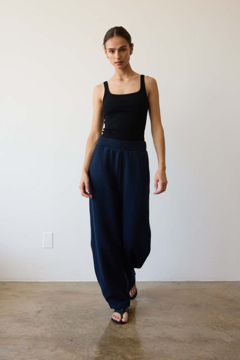 A structured sweat pant that feels like a trouser. Modern enough to wear for all occasions and comfortable enough to wear all weekend long. Tailored in our luxurious Japanese french terry. Piece dyed for a saturated hue that maintains it’s color.
