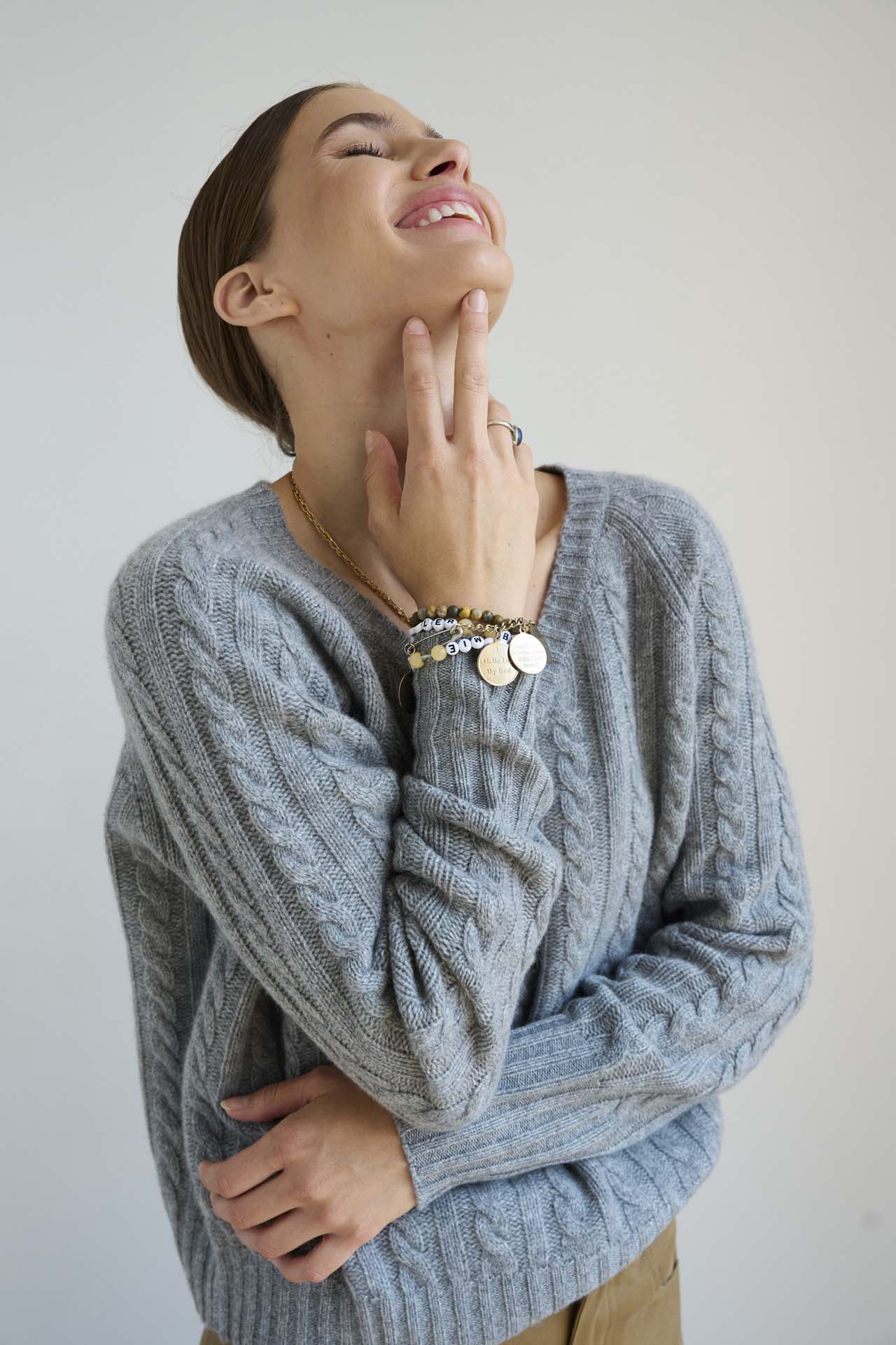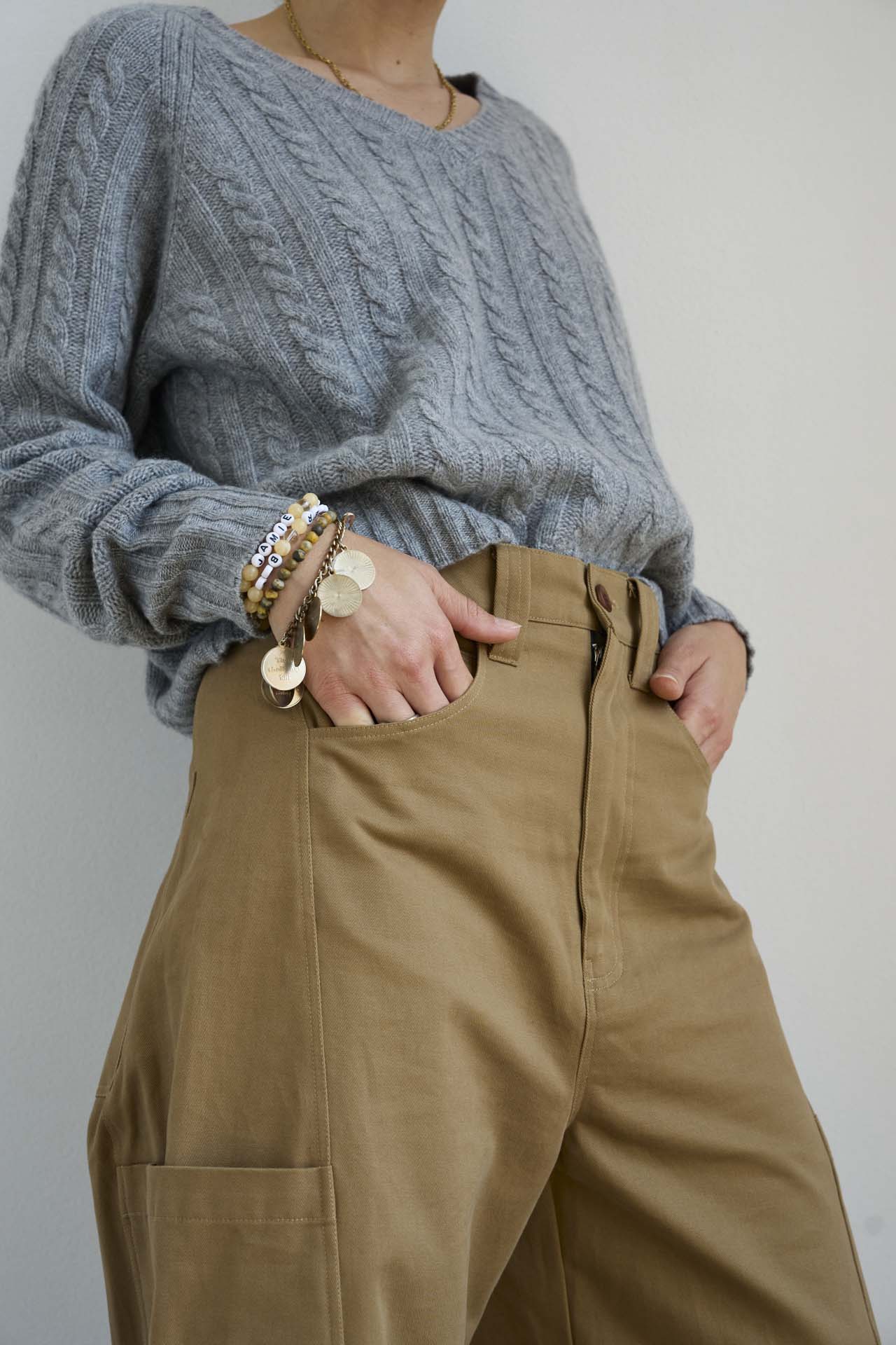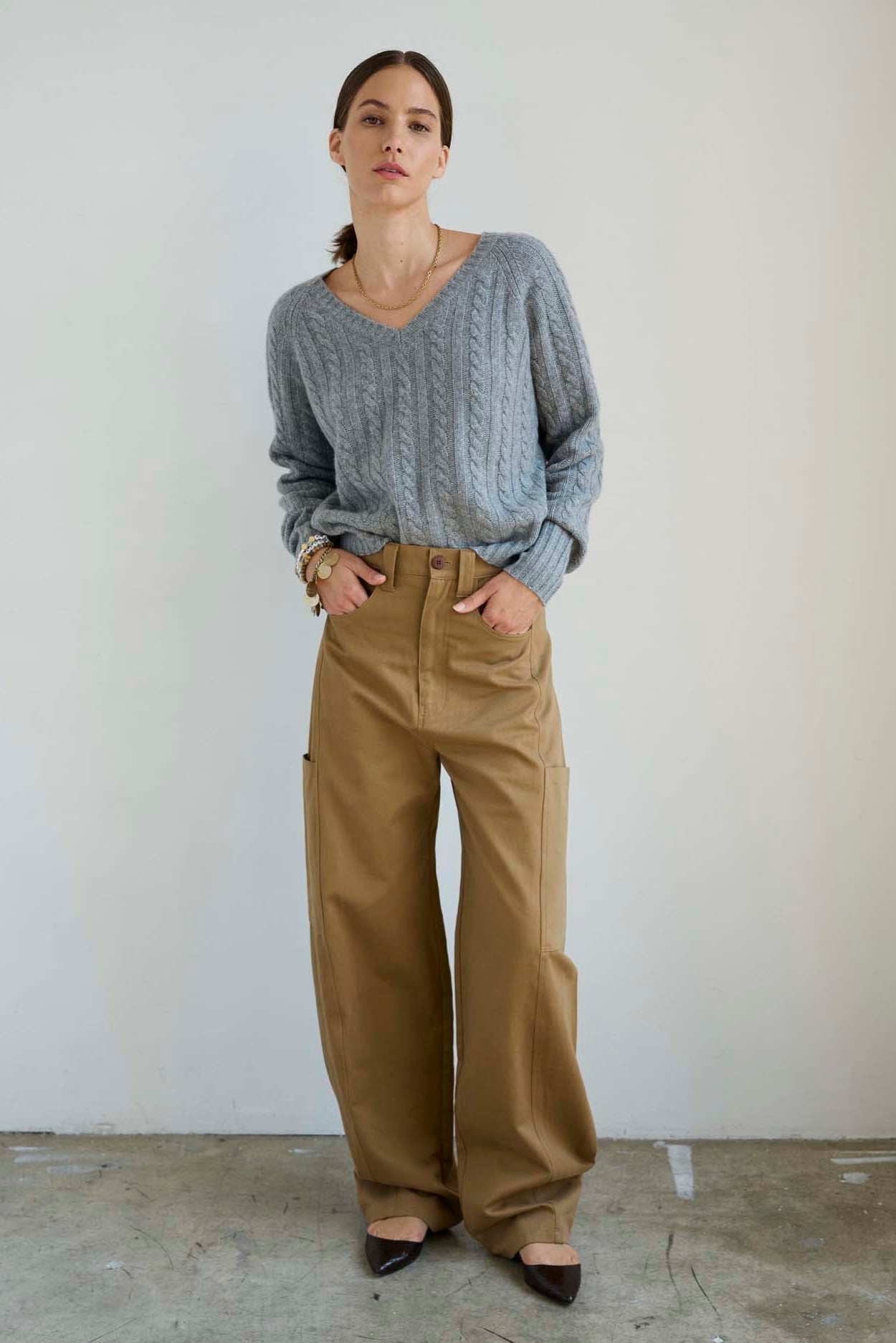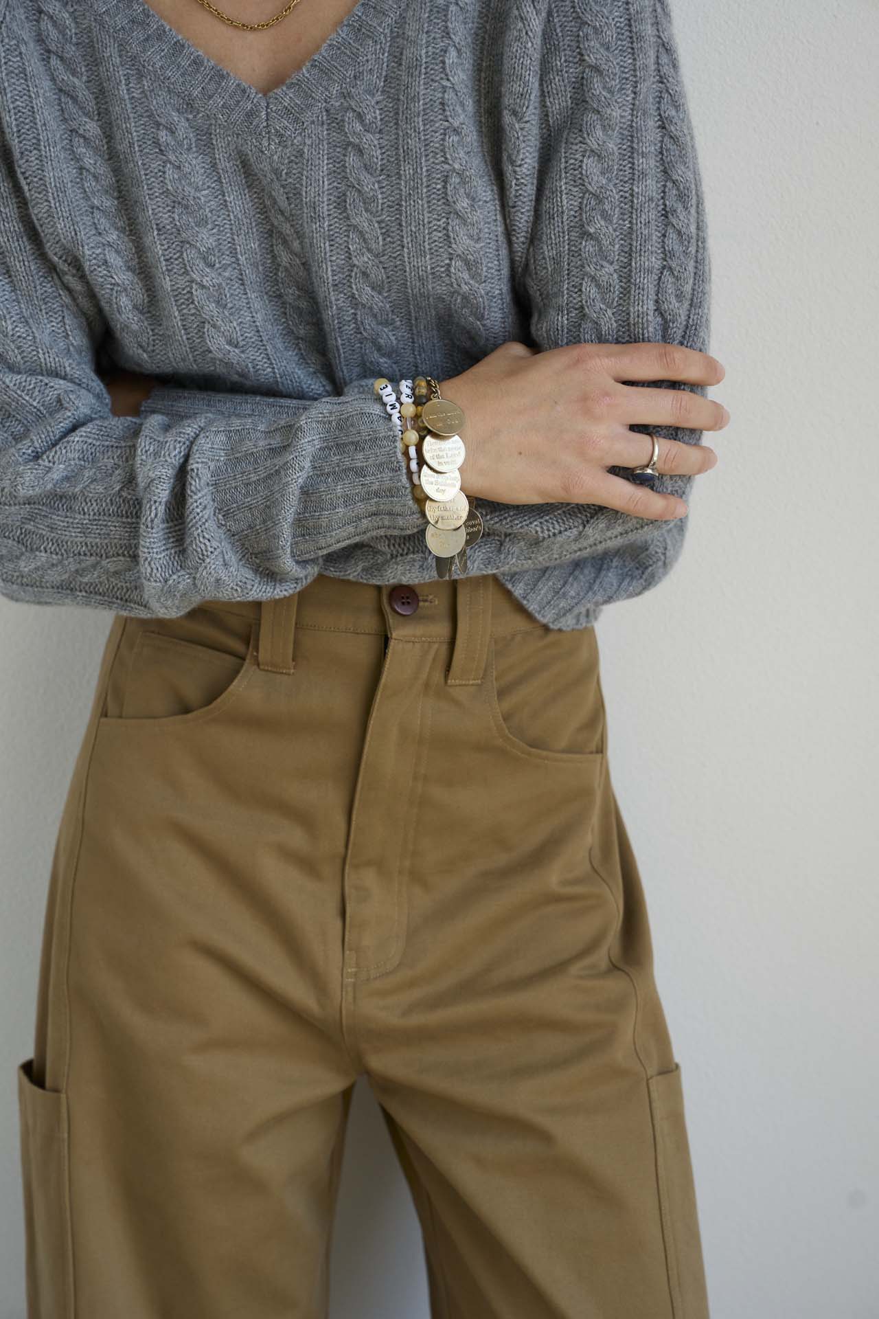 Three end Mongolian washed cashmere knit into a sartorial cable in my favorite V neck sweater. An iconic shape, inspired by my coveted 25 year old YSL mens V.