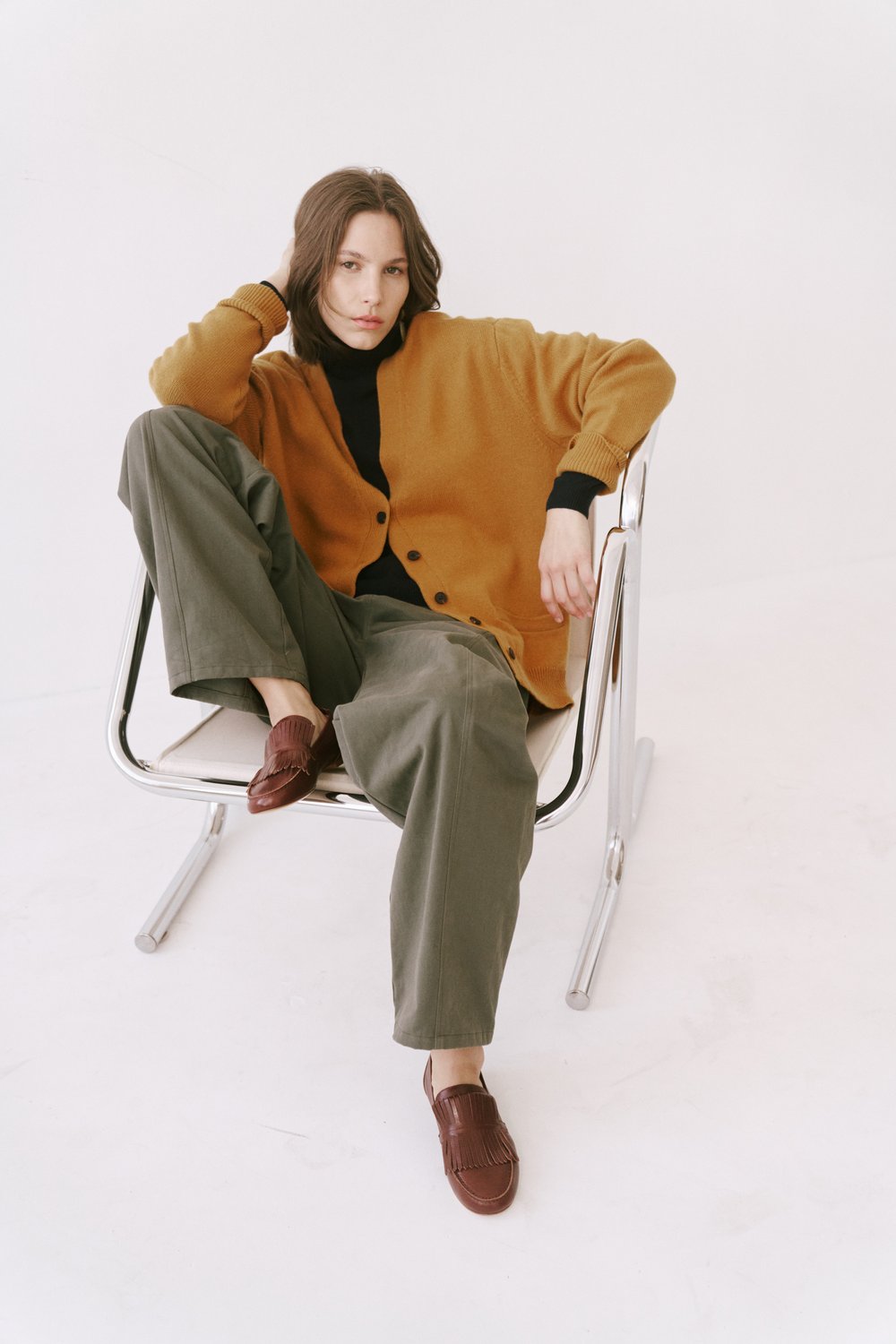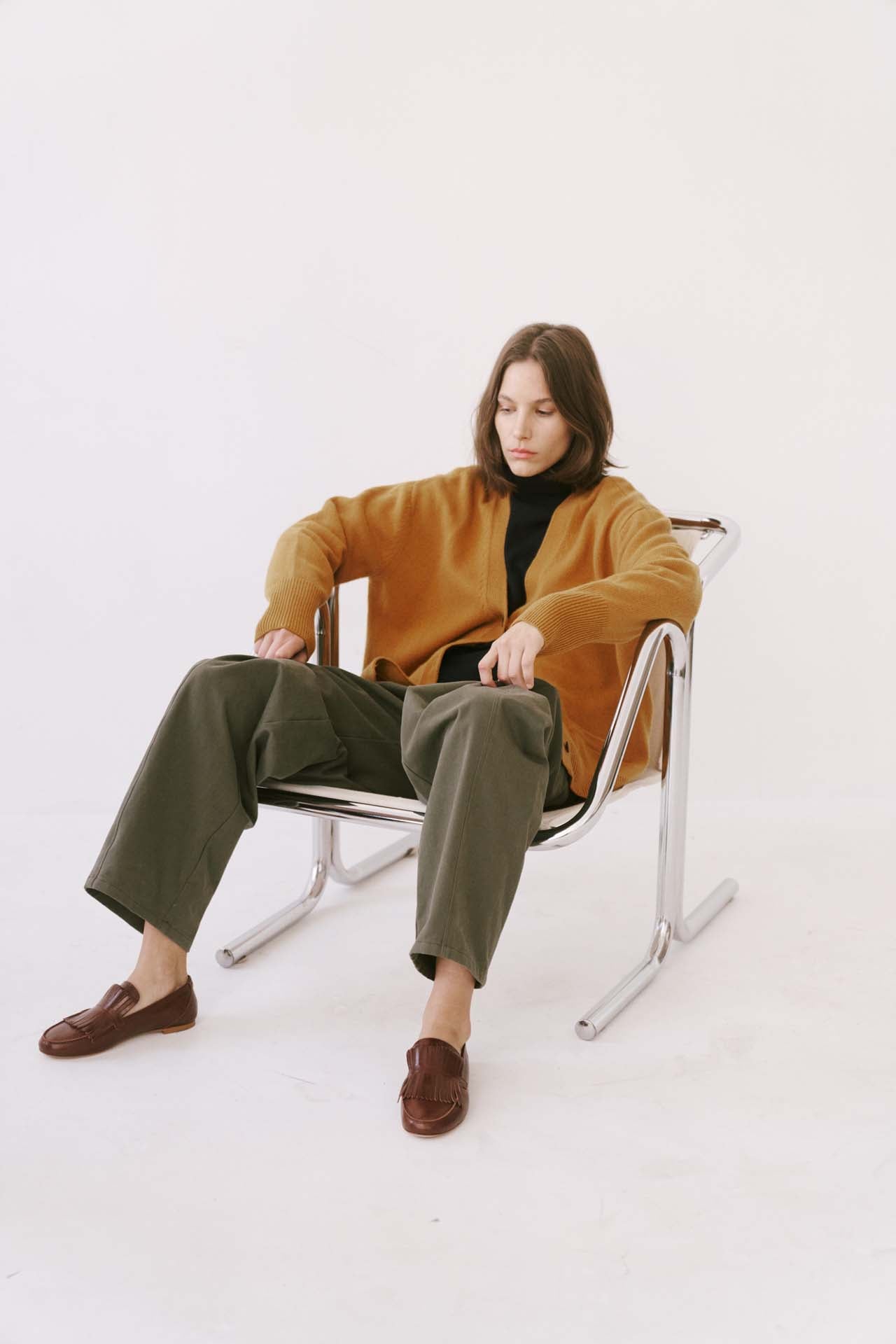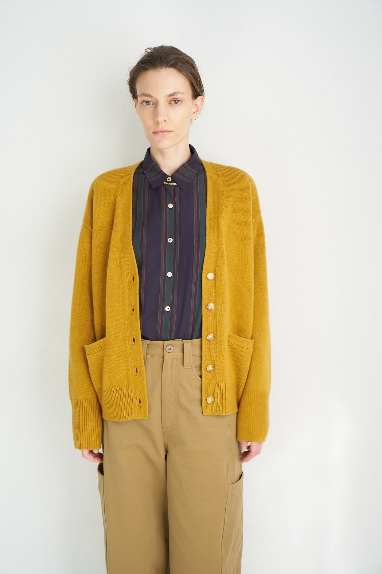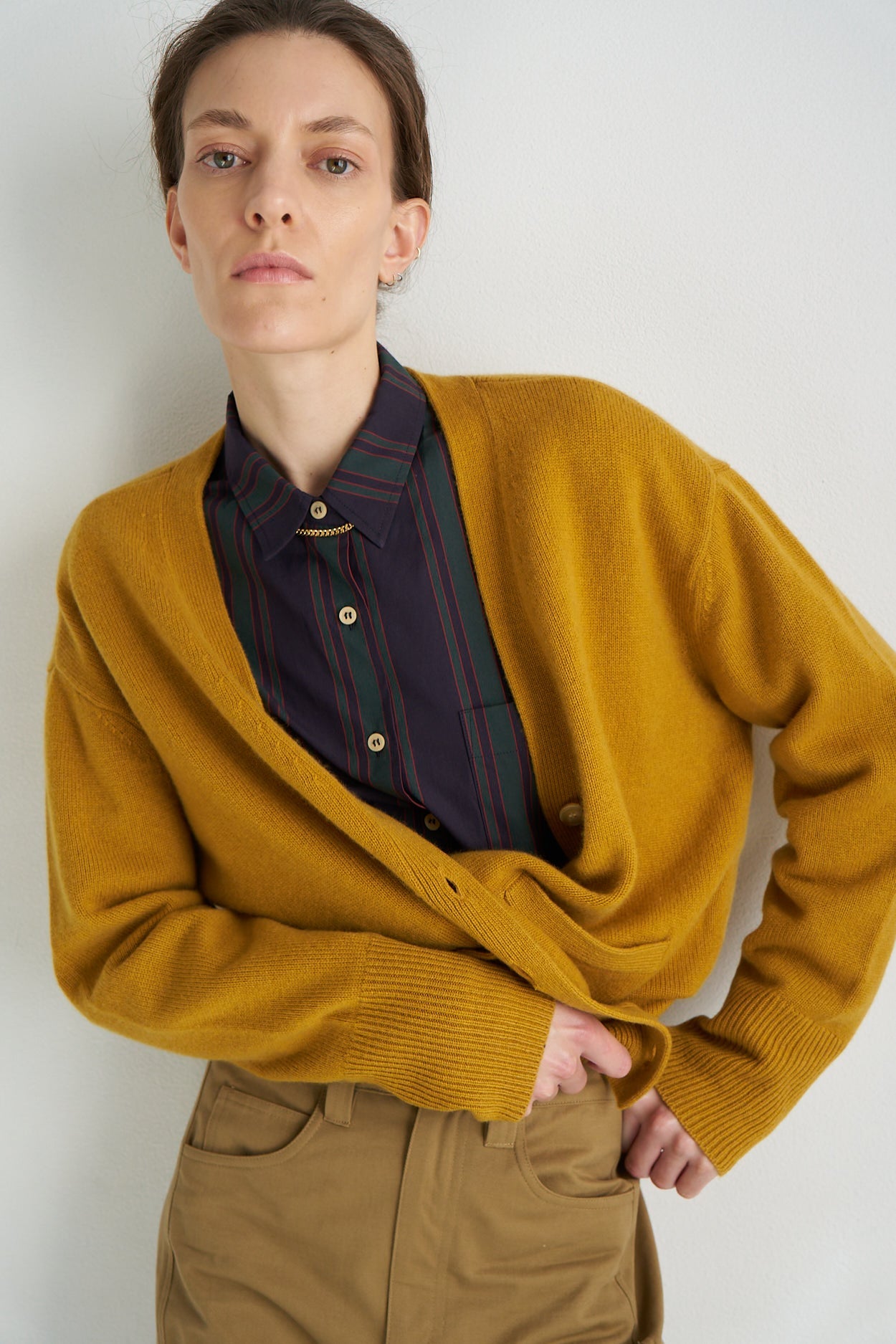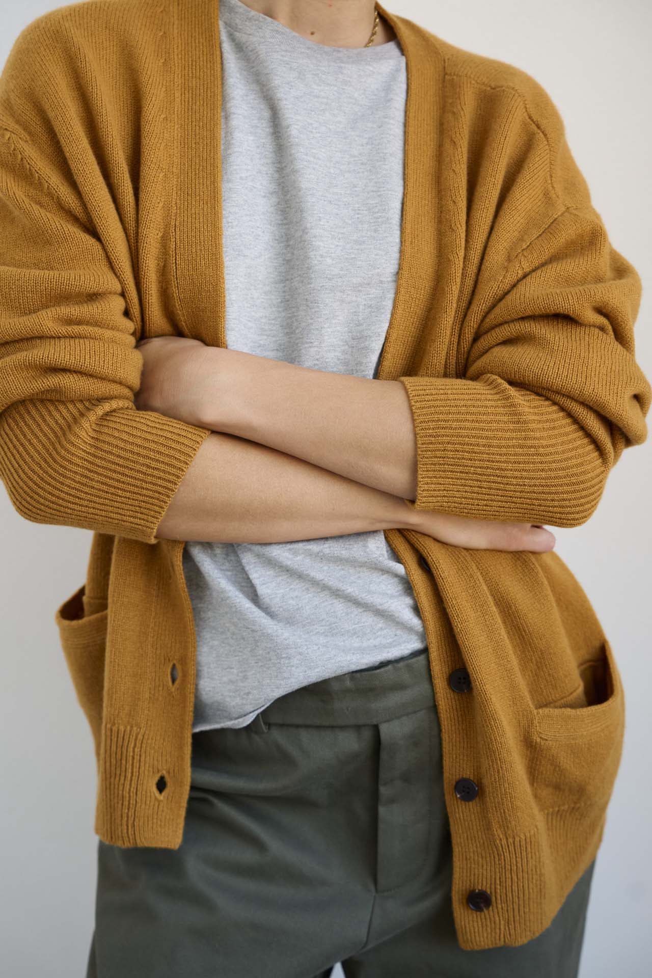 A slightly loose two ply cashmere cardigan, not too fitted and not too baggy. Semi Loose Perfection. The in-between of unstructured and structured. Fully fashioned 100% washed cashmere knit in 7gg yarn.