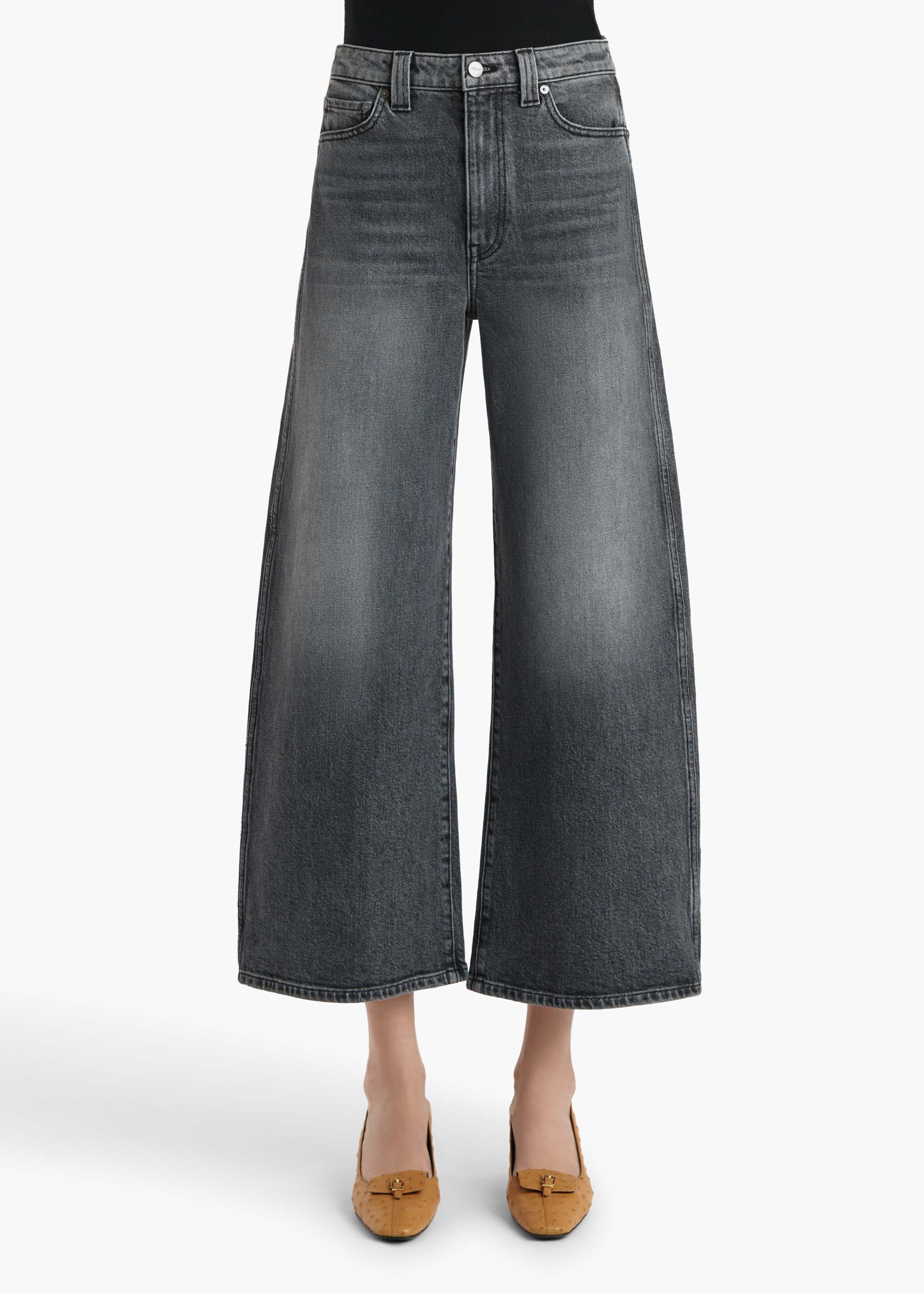 Combining the elegance and ease of wide-leg trousers with the dynamism of a cropped length, this high-waisted silhouette flares gently below the knee and is designed to hit at the ankle. Hand-finished with antiqued nickel button.