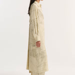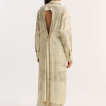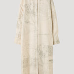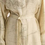 A fluid silk dress that reinterprets the classic shirt silhouette. It features a keyhole open back that closes with a wrap tie detail, allowing for a defined or relaxed fit. This season’s design is printed with an archival map of Amsterdam.