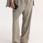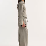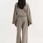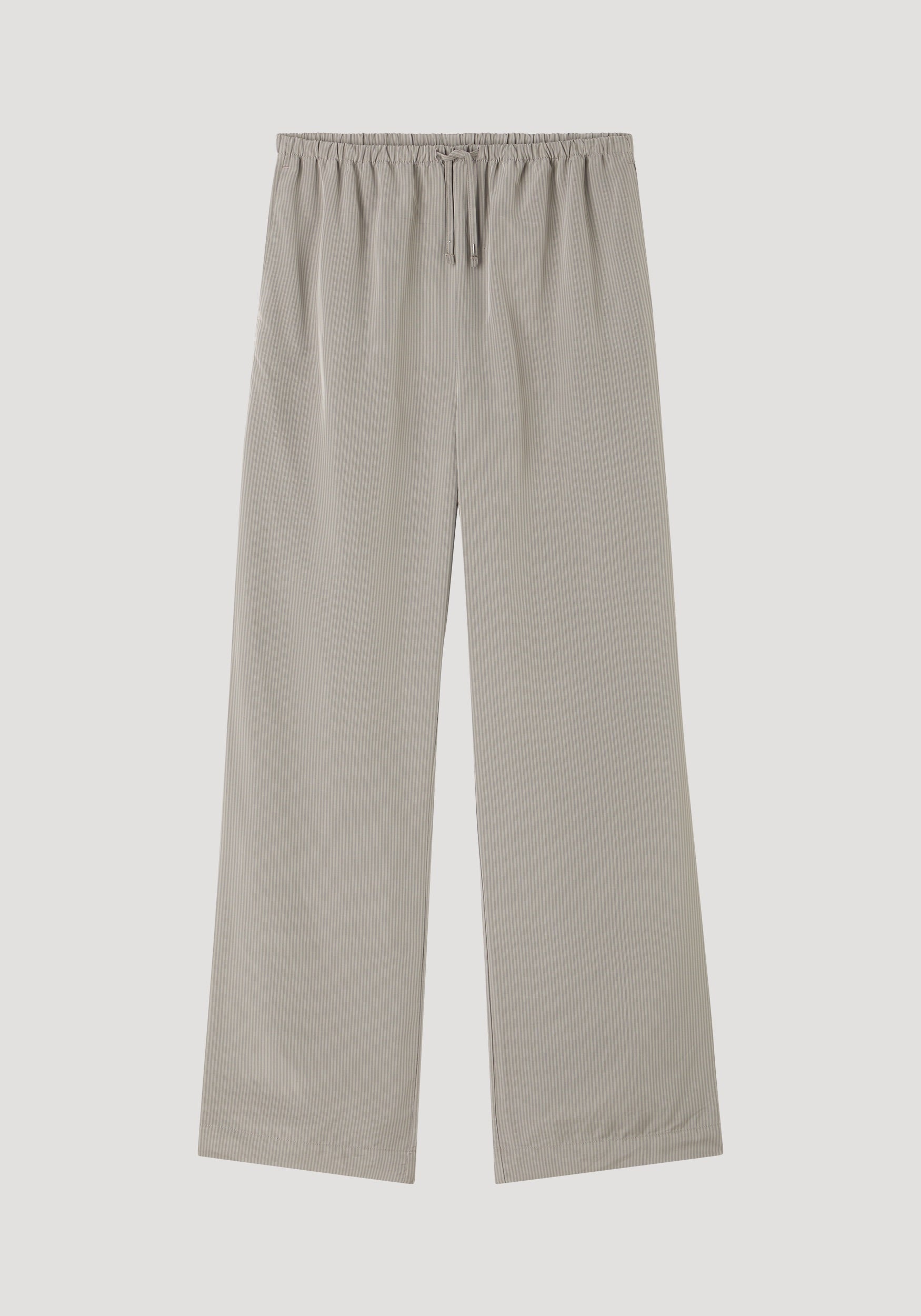 Relaxed drawstring trousers cut from soft viscose with a light grey stripe. . The elasticated waistband with drawstring offers a comfortable yet refined fit. A classic pyjama silhouette reimagined for everyday wear, designed to pair with the Relaxed Shaped Shirt in matching fabric.