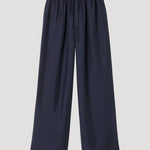 Wide-leg trousers in pure silk twill, designed with a relaxed drape and natural fluidity. The elasticated waistband with drawstring offers a comfortable yet refined fit. A modern wardrobe essential.
