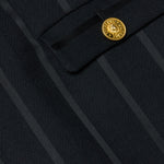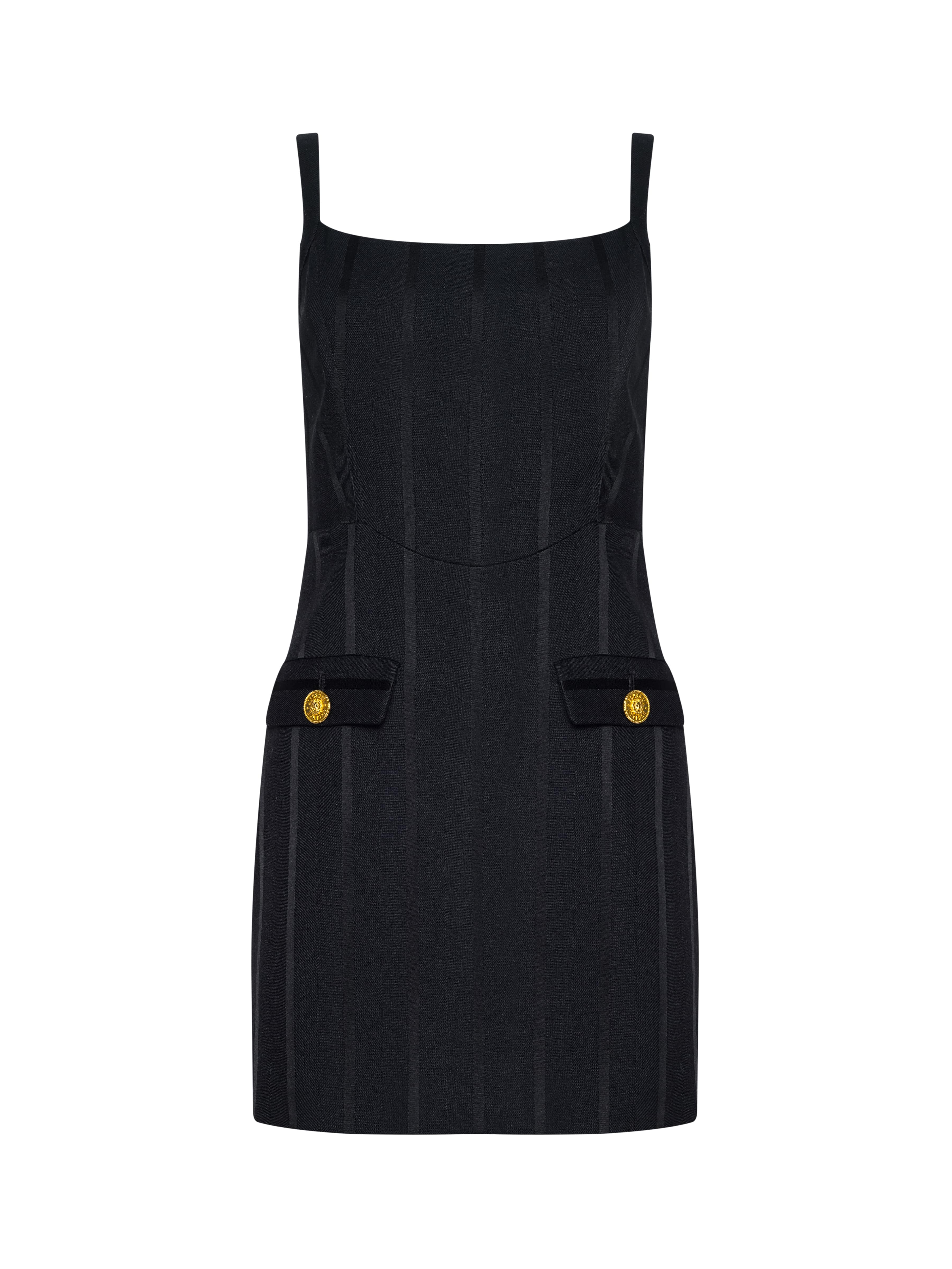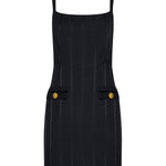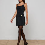 This style debuted at our Fall ‘25 NYFW presentation. The shape and structure of a corset mini dress meets the sophistication of a twill Italian suit fabric with a subtle satin stripe. A sleek and sexy take on the little back dress.