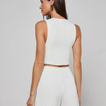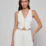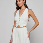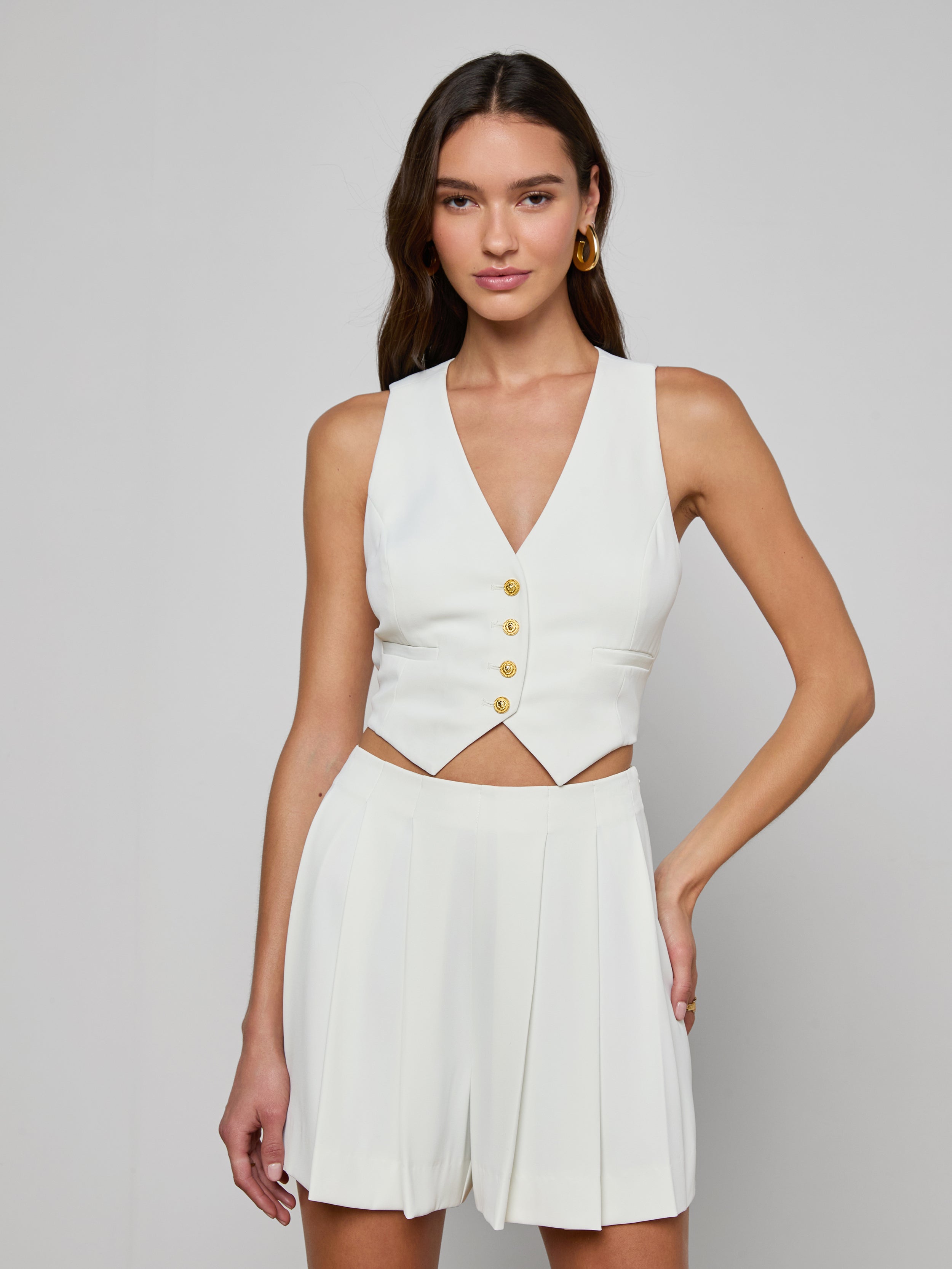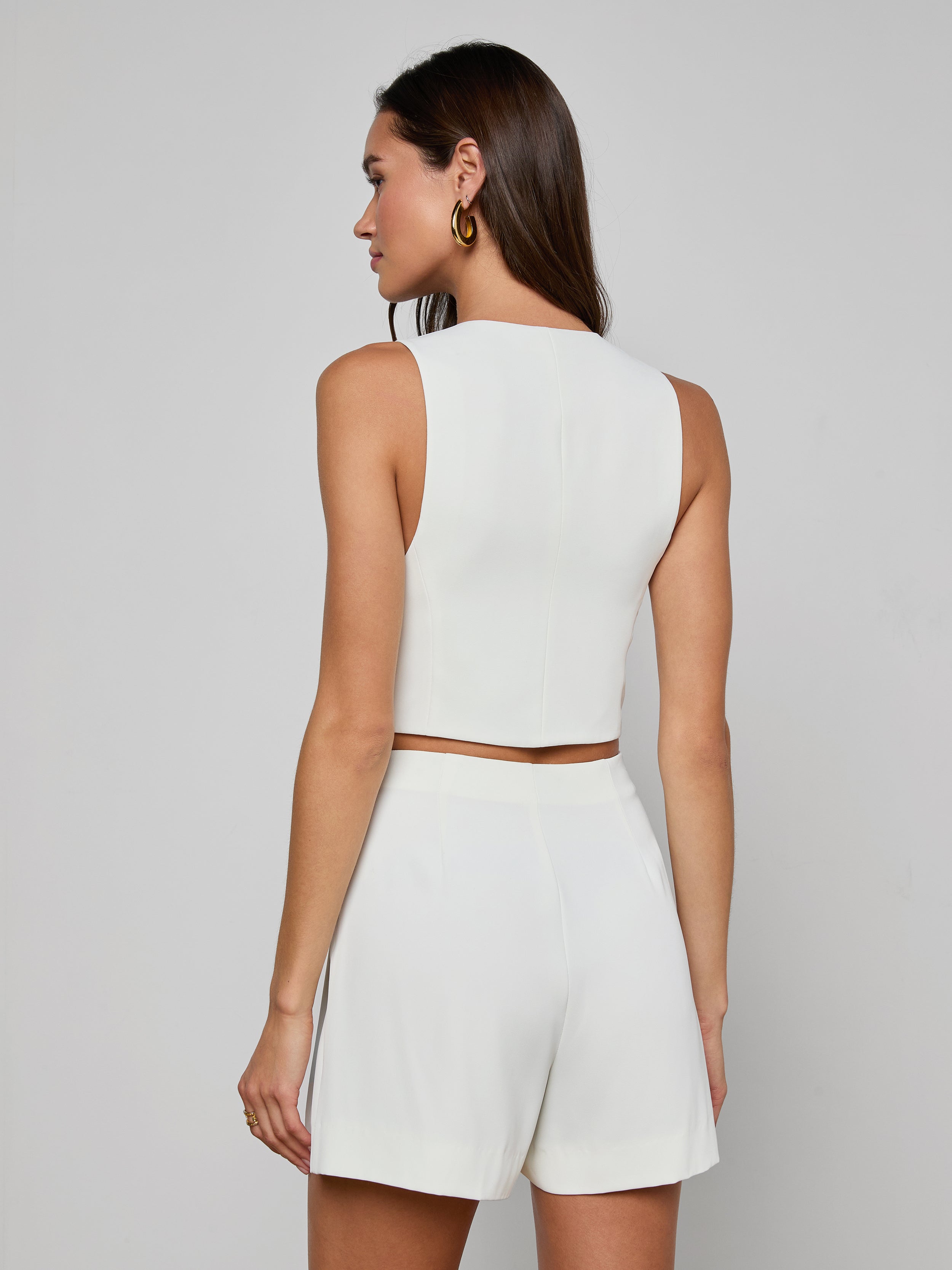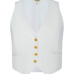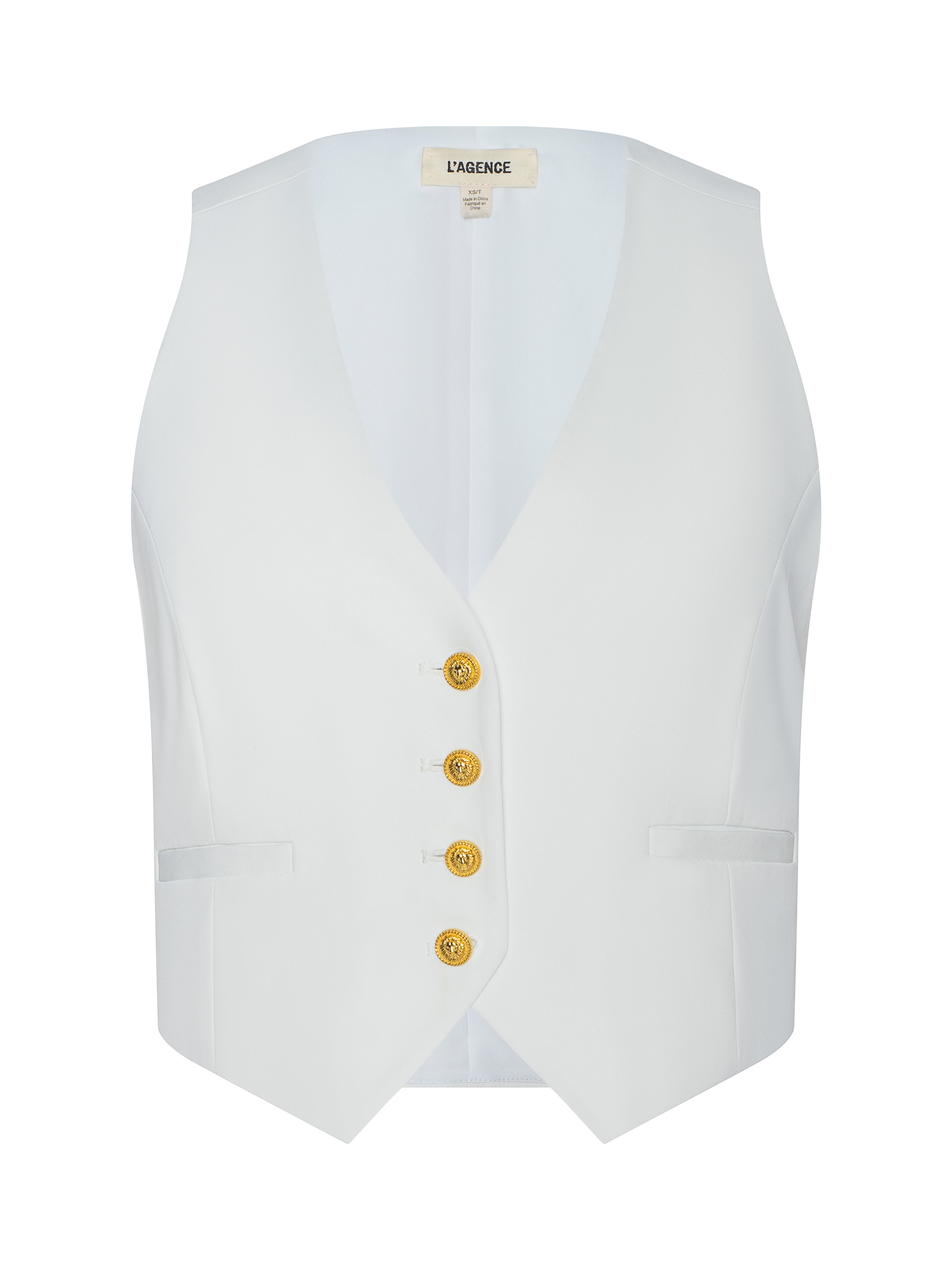 Made to flatter, the Jianna vest features a minimalist silhouette and a cropped length. Now back in a sophisticated ivory.