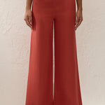 A softly tailored high-rise pant, designed from a signature 100% European Flax® linen in a dusty tomato re. Fitted through the waist with a smooth front, they fall into a refined, yet relaxed wide leg that flares at the hem and crops around the ankles. Style with the matching Syna Top for a seasonal approach to linen set dressing.