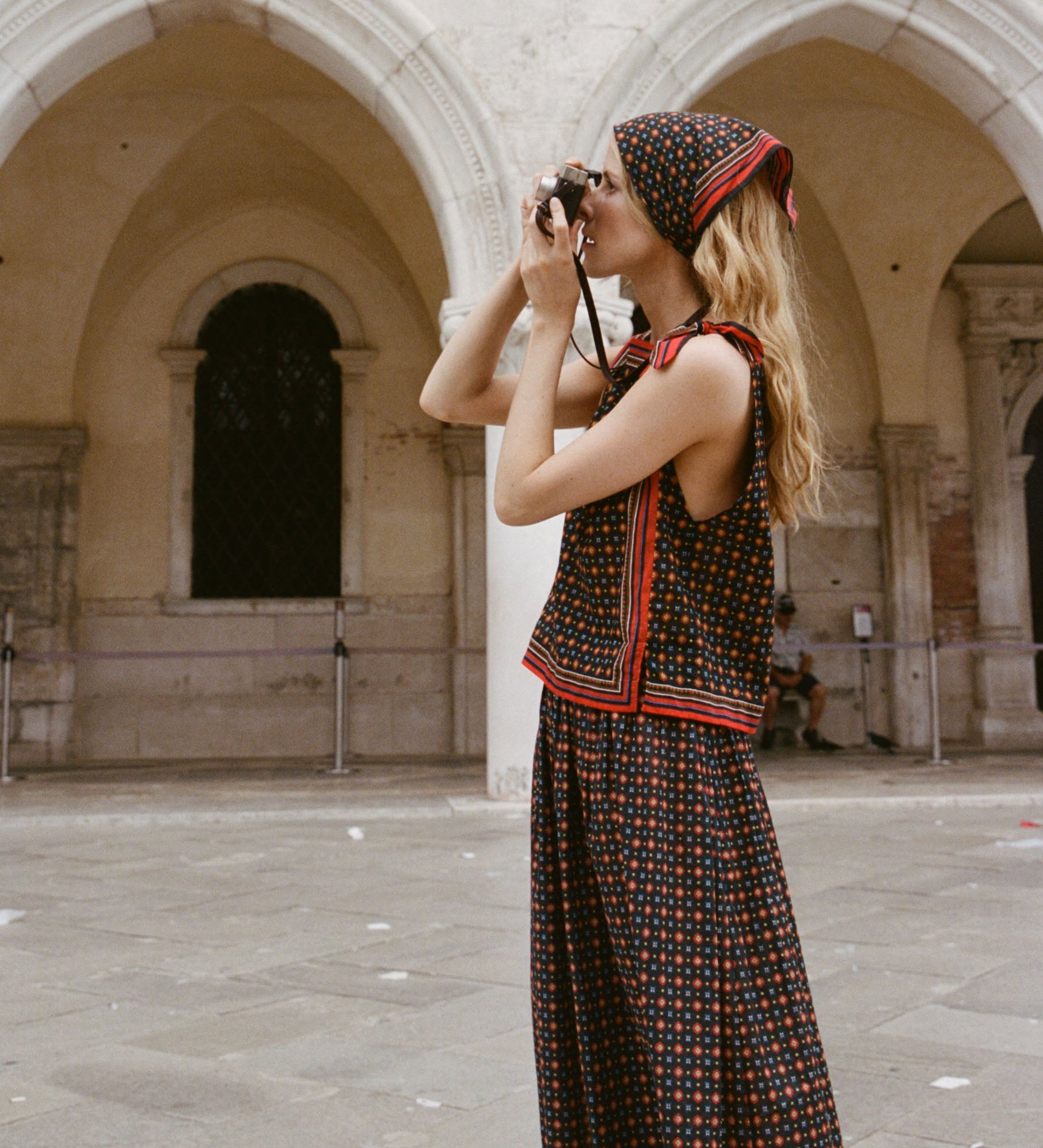 DÔEN - AMALIA TOP -- NOIR MONTMARTRE FOULARD