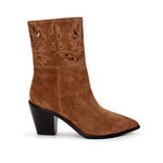 The Anne bootie brings cowboy charm to the city with a feminine twist. Crafted from lush suede, subtle cutouts add a Western detail while a pointed toe and angled heel serve instant confidence. From flowy dresses to your favorite jeans, these boots make every step feel like a moment. Now in buckskin suede.