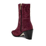 The Anne bootie brings cowboy charm to the city with a feminine twist. Crafted from lush suede, subtle cutouts add a Western detail while a pointed toe and angled heel serve instant confidence. From flowy dresses to your favorite jeans, these boots make every step feel like a moment. Now in burgundy suede.
