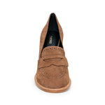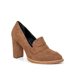 The Bea reimagines the classic loafer with height and attitude. Crafted in tan suede, detailed with broguing, and lifted on a substantial block heel, it delivers big on statement-making style.