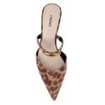 The Catania embodies walkable sophistication, designed with a sculptural kitten heel and crowned with a dimensional metal accent. The V-shaped upper and pointed toe create a feminine silhouette. Now in a bold leopard print, this style adds a statement finish to any look.