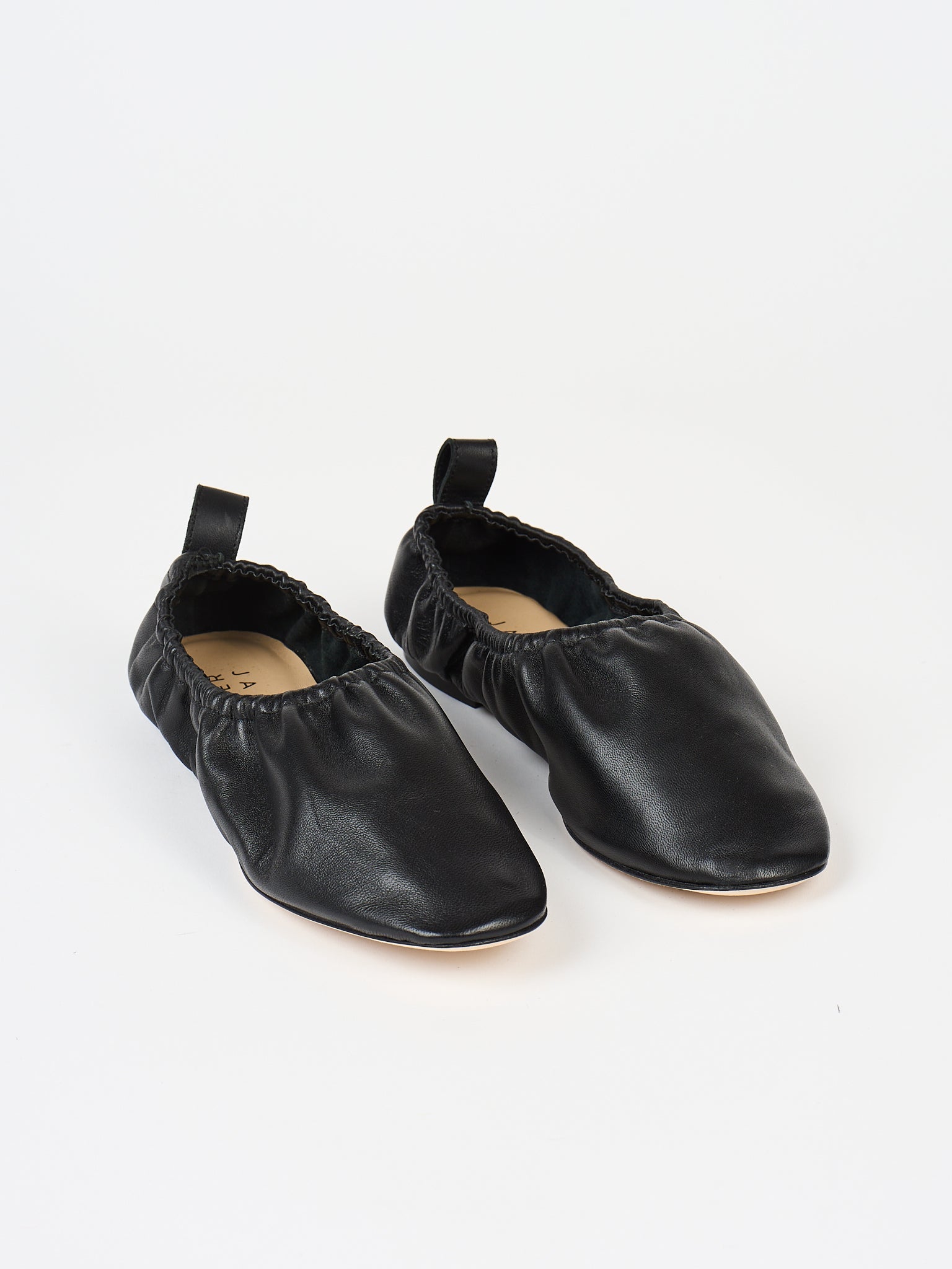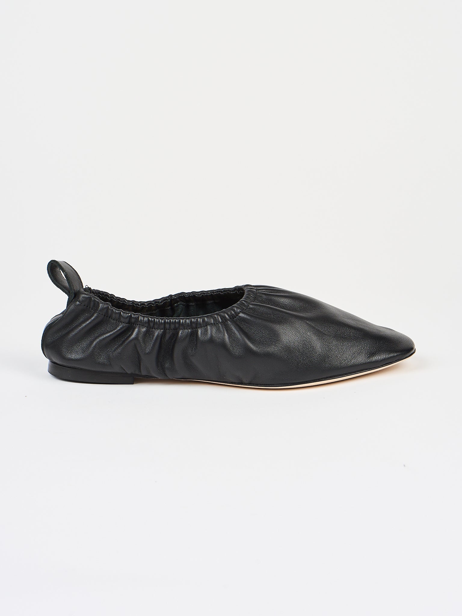Introducing the Elastic Slipper, handmade in soft unlined Italian lambskin. An almond shaped toe and high vamp frame the foot with elastic soft shirring at the opening. Leather sole and liner. Handmade in Tuscany.
