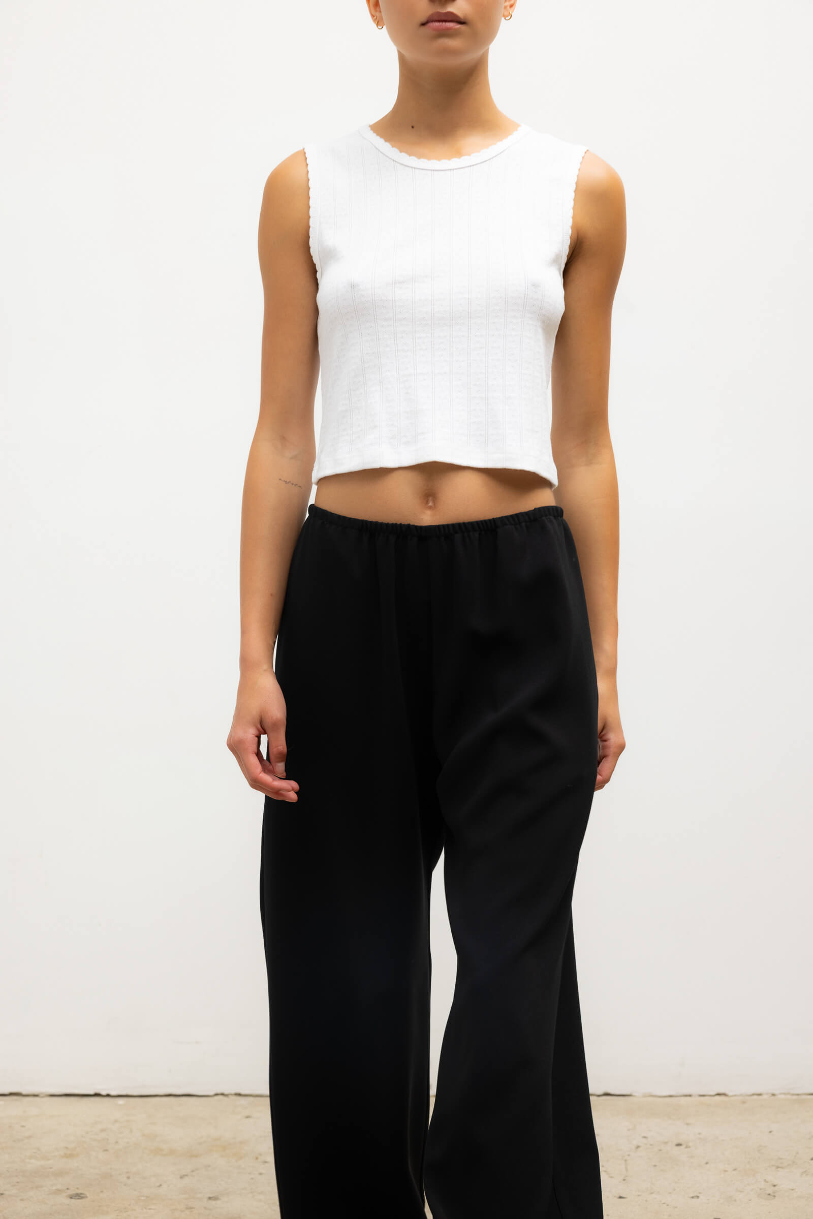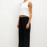 Cut in our Japanese-crafted Arielle Crepe, The Arielle Pocket Pant is a pull-on style trouser, featuring a relaxed leg silhouette and side slit pockets. We're wearing this with a fresh button up to the office with, then with a heeled boot and classic car coat to dinner afterwards.