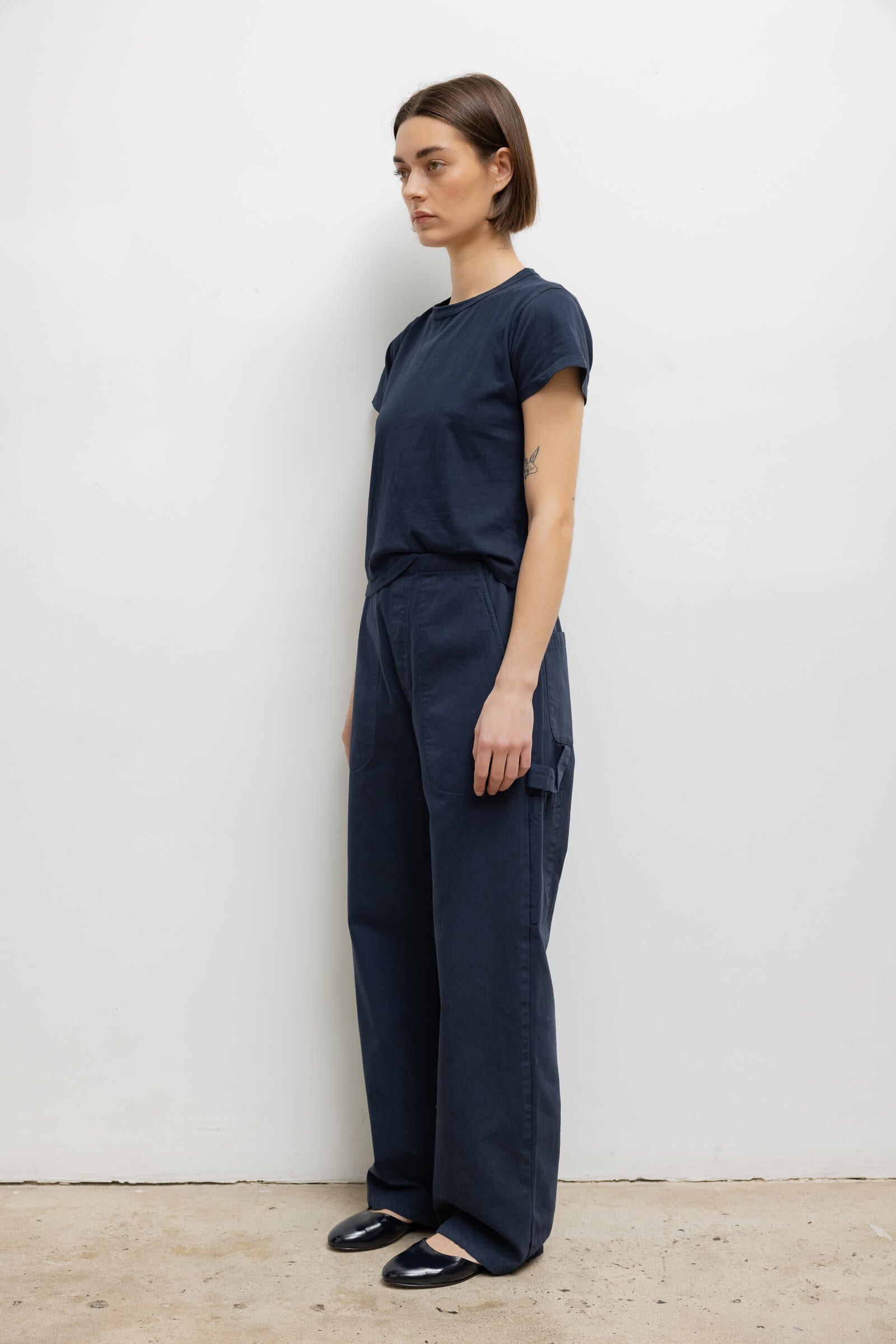 Cut in our new brushed Chloe Canvas, The Chloe Painter Pant is a utility-inspired pull-on trouser, featuring a faux zipper fly, ruched elastic back waistband, side patch pockets, and a hammer loop. Make it a matching set with The Chloe Zip Jacket.