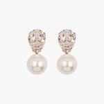 Stunning in their simplicity, the Cimone Earrings are a fresh take on a classic drop earring, fit for any occasion. Made by hand in New York, they feature a pear-cut Austrian crystals, with crystal pearl drops. Their petite size and layered materials allow these earrings to pair perfectly with a wide array of jewelry and hair accessories from our collection. Dimensions: 1 1/4in x 7/8in