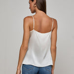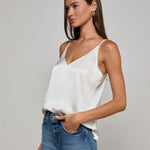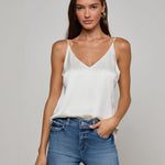 Our signature silk camisole, cut with a deeper V-neck and slimmer fit. Now in ivory.